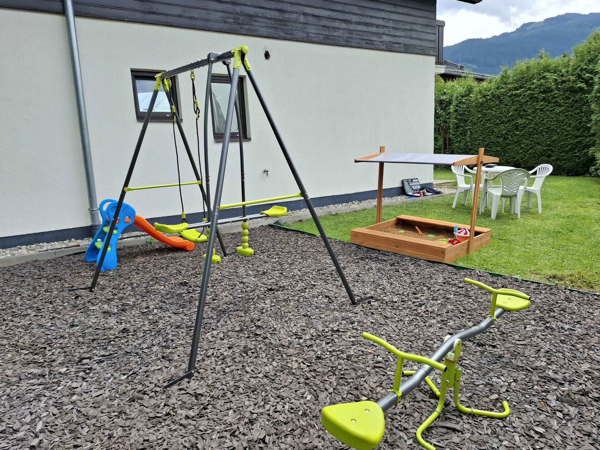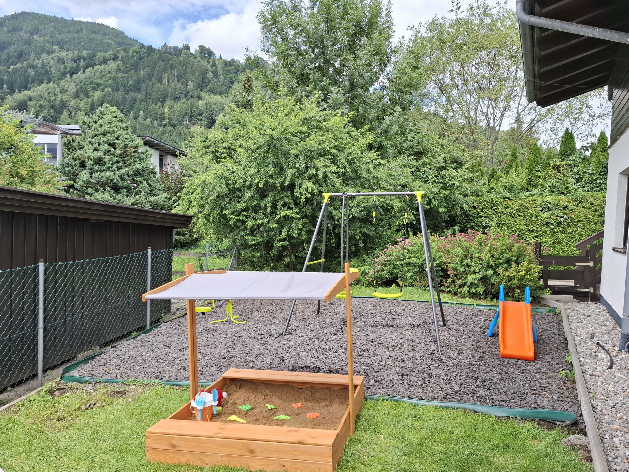 Petite résidence "Alpenchalets". 2 maisons dans la résidence. 5 appartements dans la résidence. Dans le quartier de Zellermoos, à 4 km du centre de Zell am See, à 5 km du centre de Kaprun, à 2.5 km du lac, à 900 m du domaine skiable. En commun: espace de jeux pour les enfants (balançoire, bac à sable). Infrastructures de la Maison: réduit pour bicyclettes, local pour les skis, chauffage central. Magasins 700 m, boulangerie 450 m, arrêt de bus "Bhf Zellermoos" 600 m, gare ferroviaire "Bhf Zellermoos" 600 m, centre thermal "Tauern Spa" 5 km. Terrain de golf (18 trous) 1.1 km, téléski, télécabine 900 m. Attractions à proximité: Burg Kaprun 11 km, Krimmler Wasserfälle 60 km. Les domaines skiables de renommée sont facilement accessibles: Areitbahn Zell am See 900 m, Maiskogel Kaprun 5 km.
