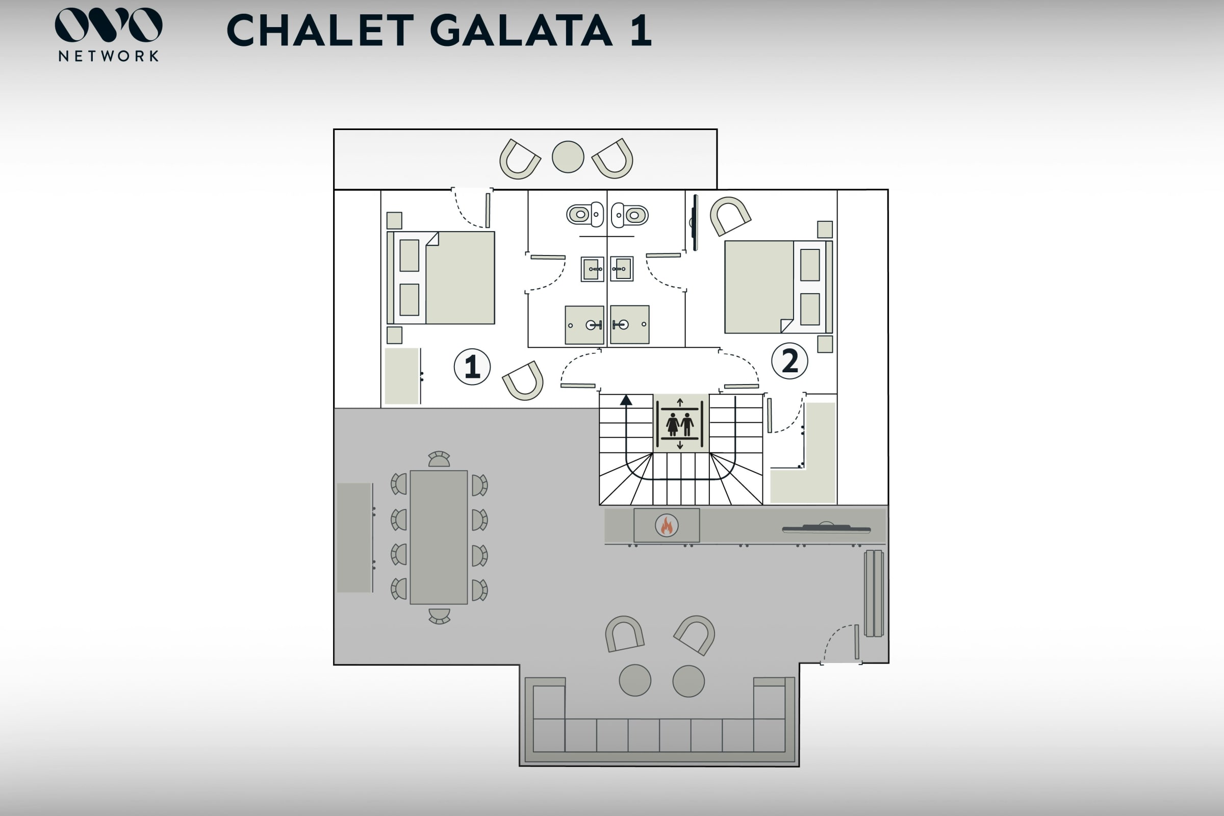 À noter : un ascenseur dessert les trois niveaux du Chalet Galata, et l’une des salles de bains du rez-de-chaussée est accessible aux personnes en fauteuil roulant.
