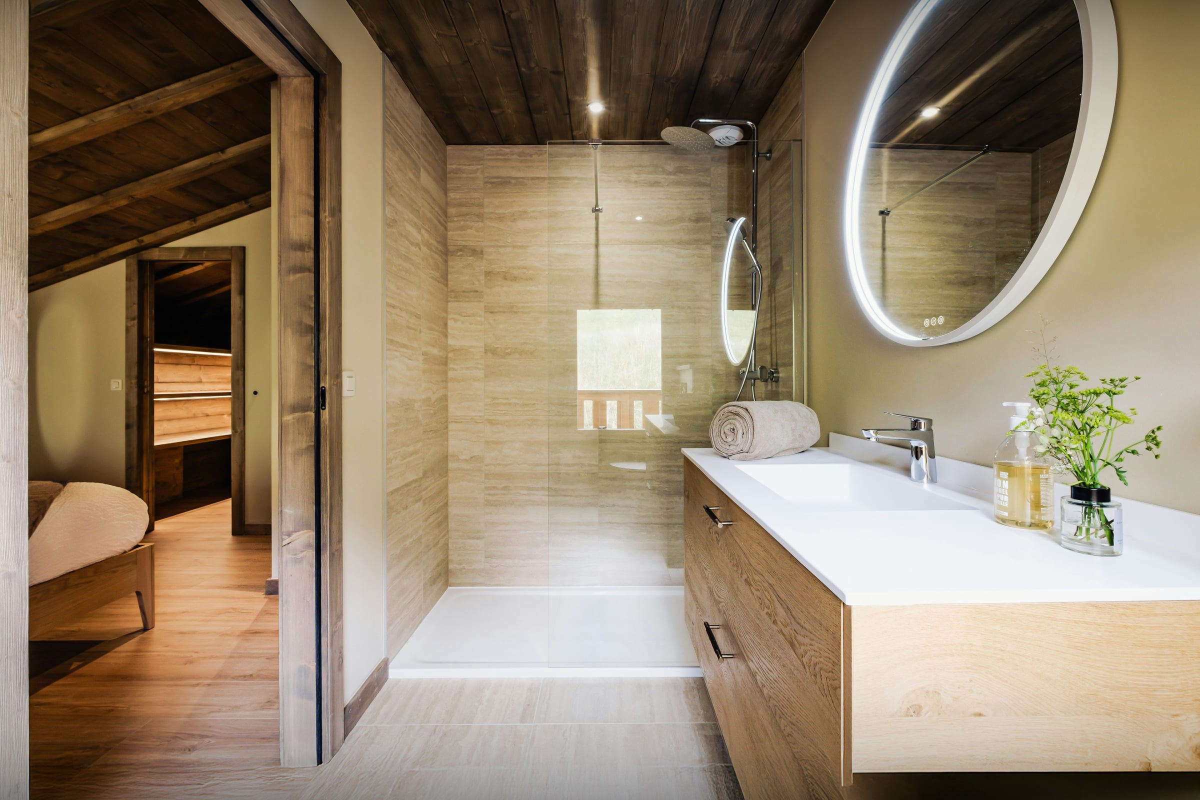 La propriété comprend également un sauna, un jacuzzi, une salle de cinéma, et une terrasse panoramique qui profite au mieux du paysage alpin. Cette dernière offre un espace extérieur très agréable, où vous pourrez y partager vos repas ou bien prendre l’apéritif. Trois des chambres bénéficient également d’un accès direct à un balcon. En été, vous pourrez profiter du jardin et de son terrain de pétanque.