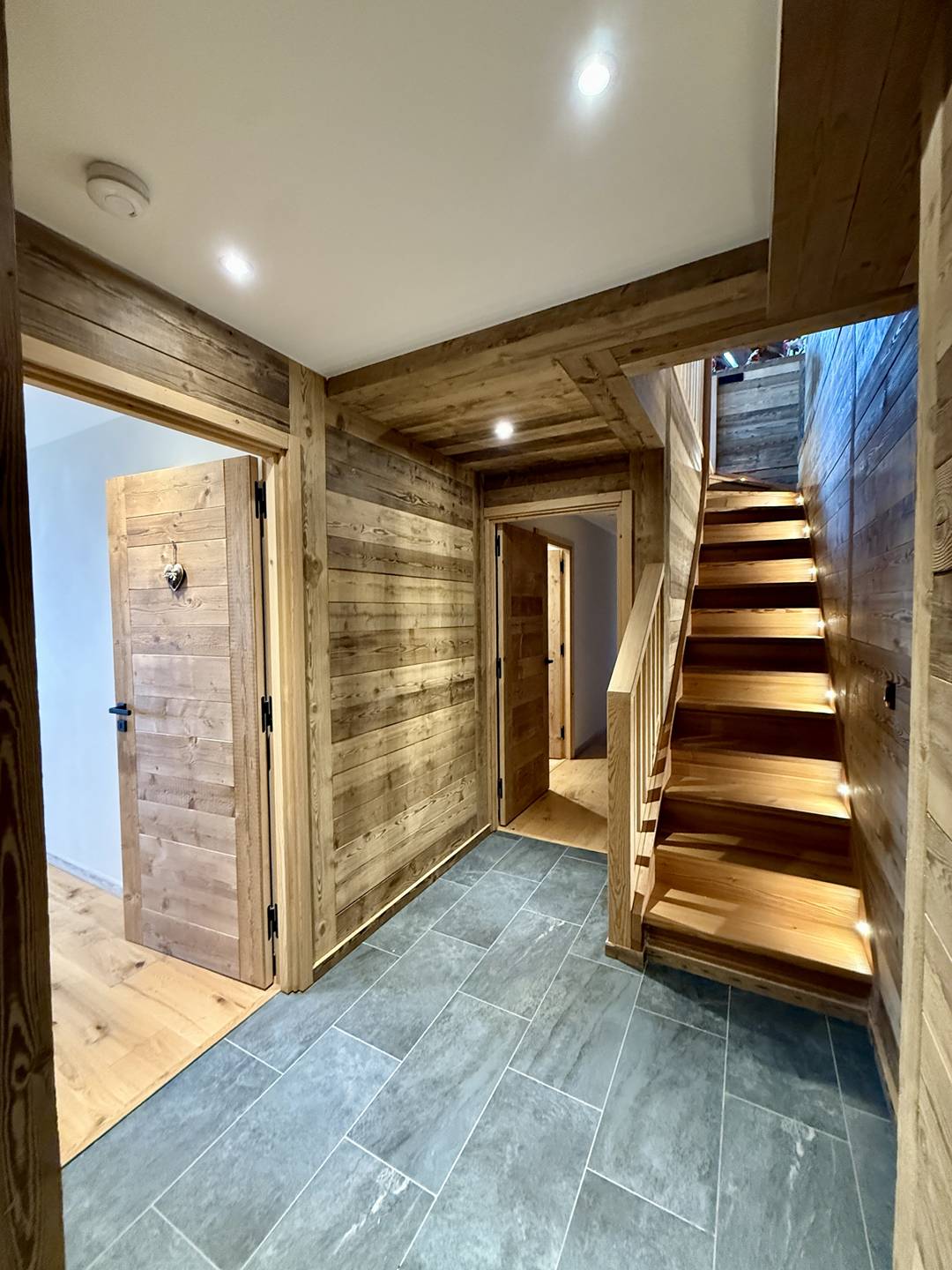 Dès l’arrivée, les hôtes disposent de quatre places de stationnement couvertes, assurant confort et praticité. Un ascenseur permet un accès direct aux espaces communs, dont la salle de sport et le ski-room collectif équipé de sèche-chaussures, avec sortie immédiate sur la piste.