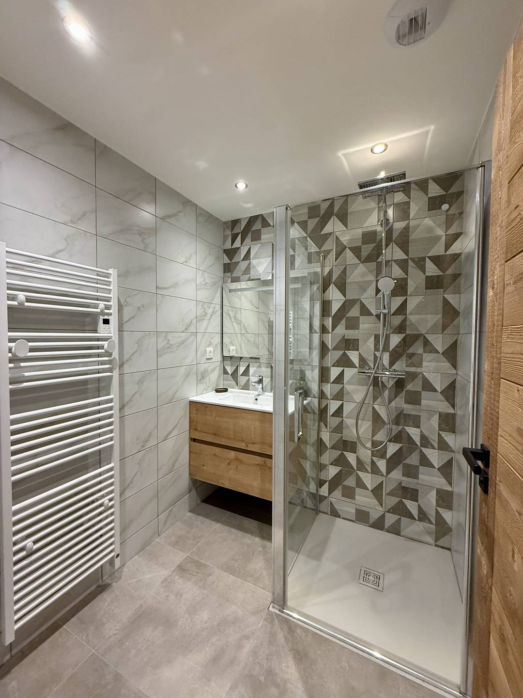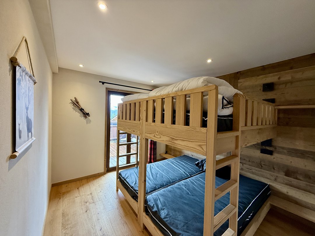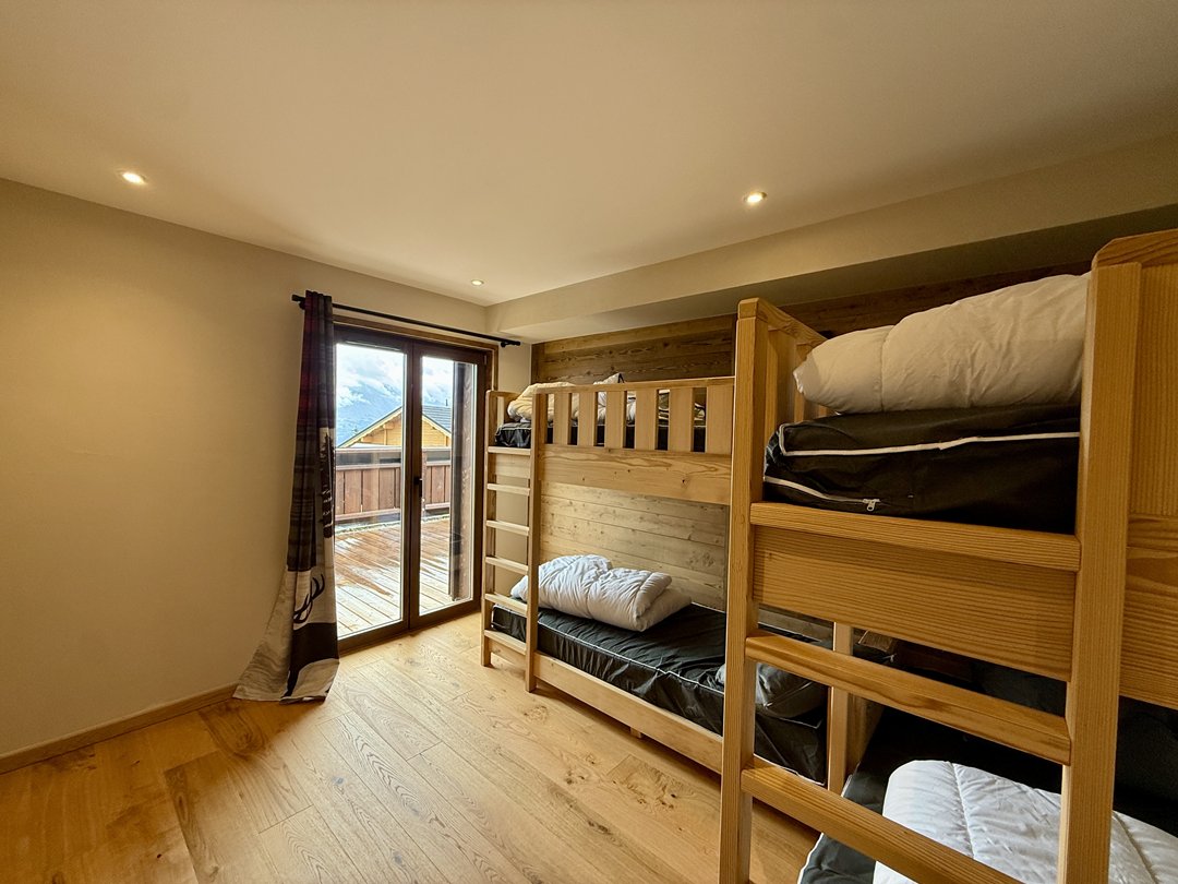 Le premier niveau du chalet est entièrement dédié à la partie nuit. On y trouve trois chambres doubles, chacune avec sa salle d’eau privative, ainsi que deux dortoirs de quatre couchages (lits superposés 90x200), qui partagent une salle d’eau moderne et fonctionnelle. Une buanderie avec lave-linge et sèche-linge, ainsi que 2 WC indépendants, complètent cet étage.