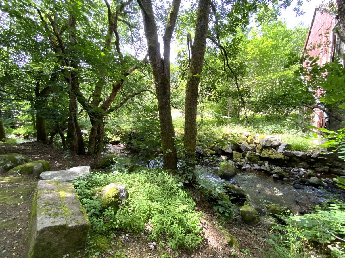 • Jardin avec grand espace vert en bord de rivière, idéal pour les activités en plein air.