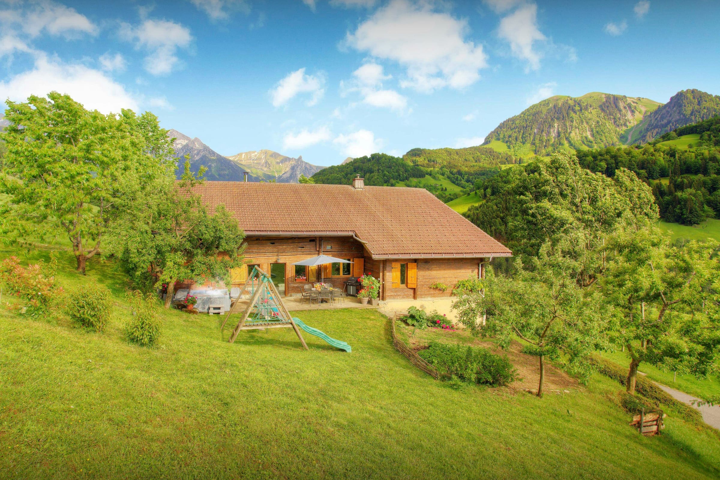 Les enfants profiteront des grands espaces pour se dépenser dans le plein-air pur des montagnes. Des jouets sont également fournis pour permettre aux enfants de s’amuser dehors, avec les montagnes en arrière-plan.