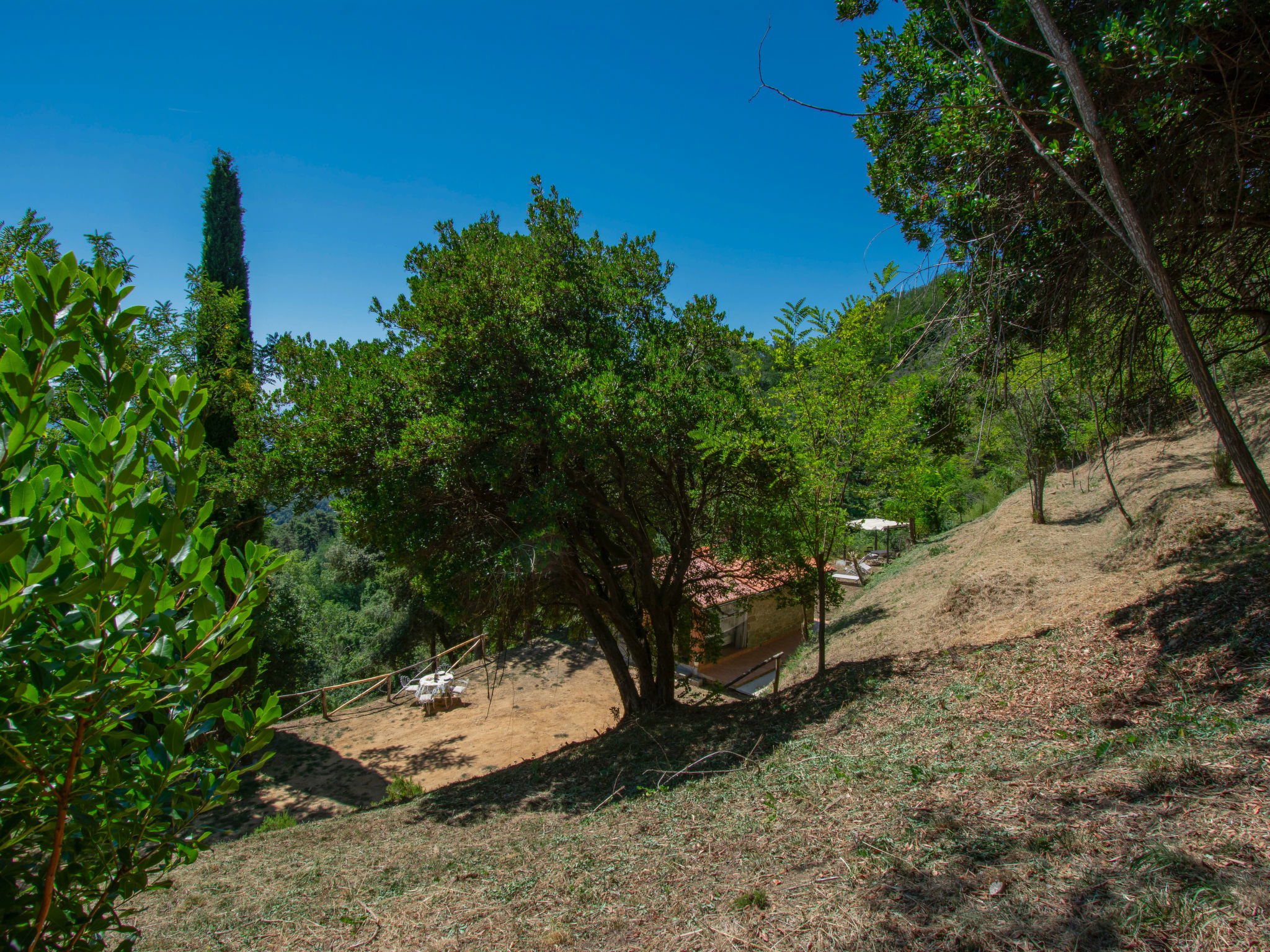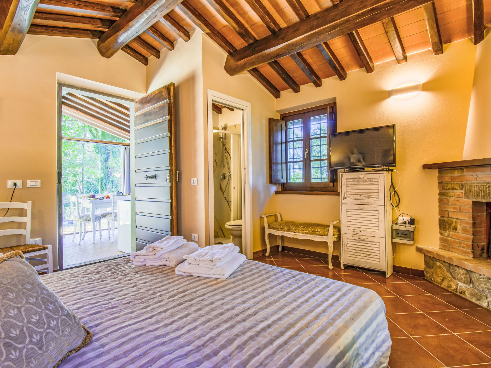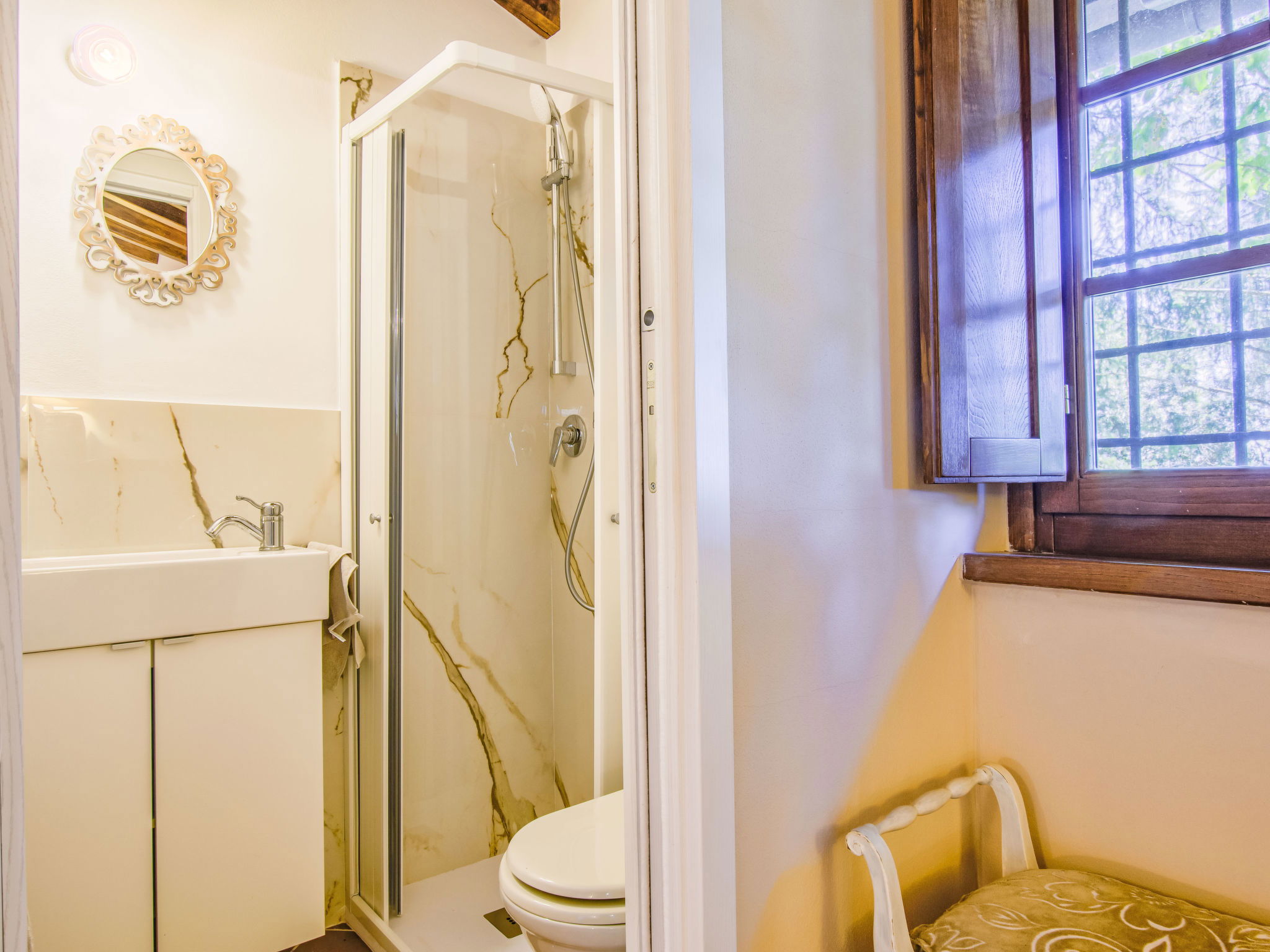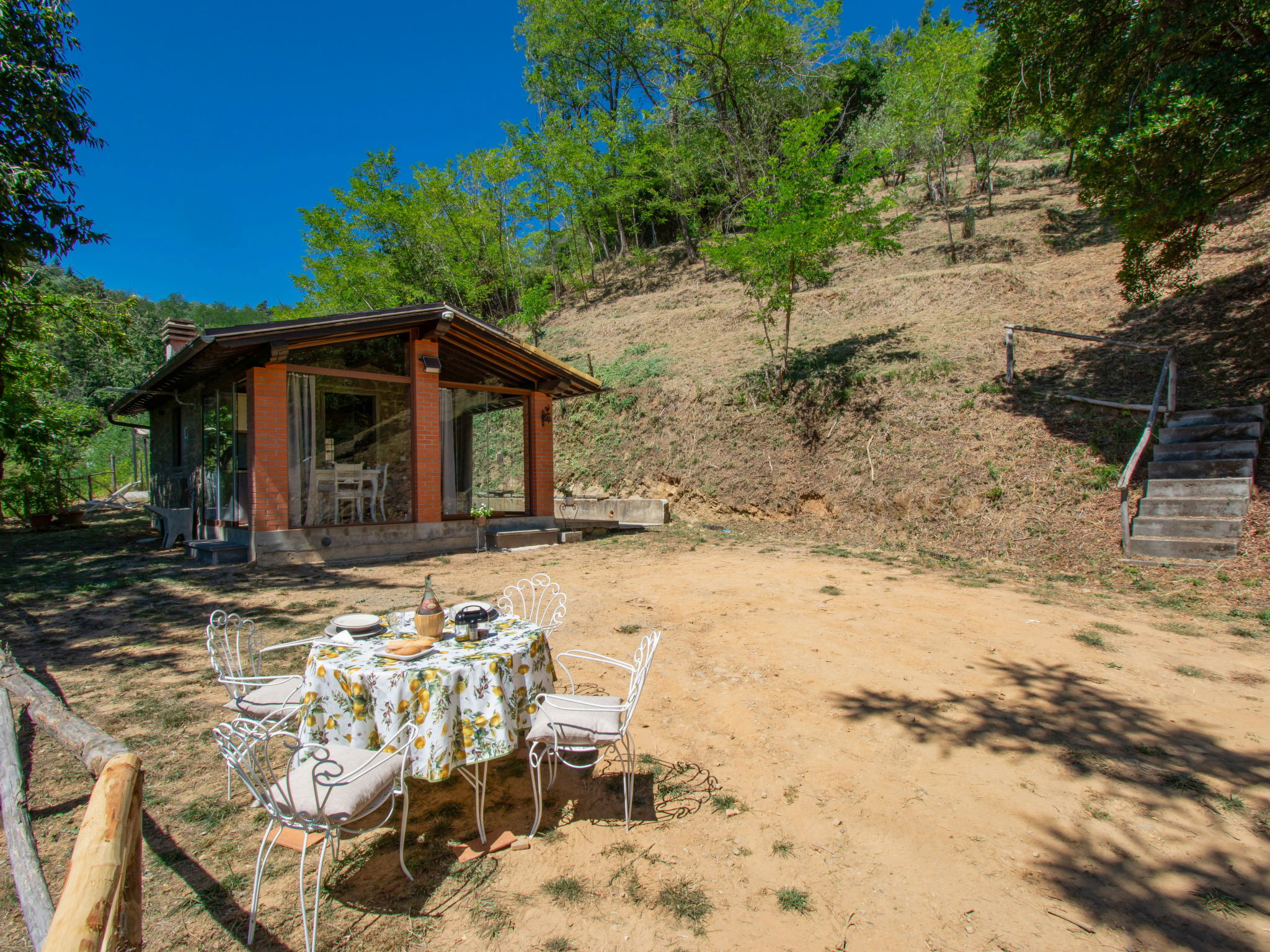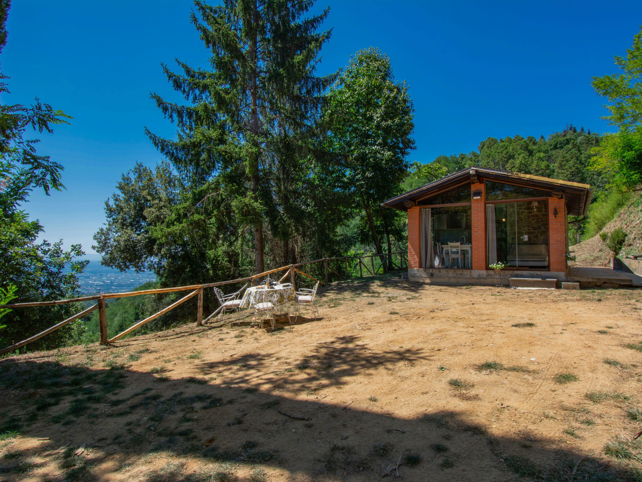 Chalet moderne, accueillant, individuel "Rifugio di Igor", 670 m au dessus du niveau de la mer, renové en 2025, environné par les arbres. Situation isolée, tranquille, dans la verdure, dans la forêt. A usage privé: parc 1'500 m2 (clôturé), jardin propice à la détente. Douche extérieure, bain à remous , meubles de jardin, barbecue. Infrastructures de la Maison: air-conditionné, lave-linge, possibilité de chauffage uniquement du 15.Nov. - 15.Avr.. Accès en voiture jusqu'à 250 m de la maison par un chemin raide, étroite (chemin non goudronné, route de montagne). Place de parking (pour 2 voitures) sur le terrain. Magasins 2 km, supermarché 2 km, centre commercial 2 km, arrêt de bus 2 km. Chemins de randonnées pédestres depuis la maison 50 m, téléphérique 5 km. Attractions à proximité: Montecatini Terme 6 km, Lucca 30 km, Firenze 55 km, Torre di Pisa 55 km. Veuillez noter: équipement pour bébés sur demande (inclus). Bien convenant à 2 adultes + 1 enfant. Résidence avec portail électrique.