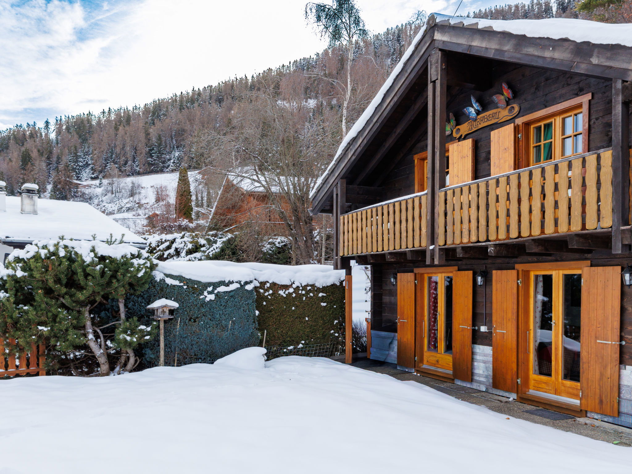 Beau chalet "Mirabeau", de 2 étages, année de construction 1990, renové en 2024. Dans le quartier de Pattier, situation tranquille, orientée est. A usage privé: jardin entretenu 400 m2 (clôturé). En hiver, merci de prévoir des chaînes, en hiver 4x4 recommandé. Sentier en escalier (15 marches) jusqu'à la maison. Place de parking, garage individuel. Supermarché 700 m, restaurant 1 km, boulangerie 650 m, centre à 10 minutes à pieds, arrêt de bus "postal, La Crettaz" 230 m, piscine 1.7 km. Terrain de golf (18 trous) 20 km, tennis 1.7 km, télécabine 1.7 km. Arrêt du ski-bus 240 m, patinoire 1.3 km, jeux pour enfants 1.5 km. Les domaines skiables de renommée sont facilement accessibles: Tracouet 4 Vallées 1.7 km. Région de randonnées: Bisse du Milieu 800 m. Veuillez noter: ski-bus gratuit.