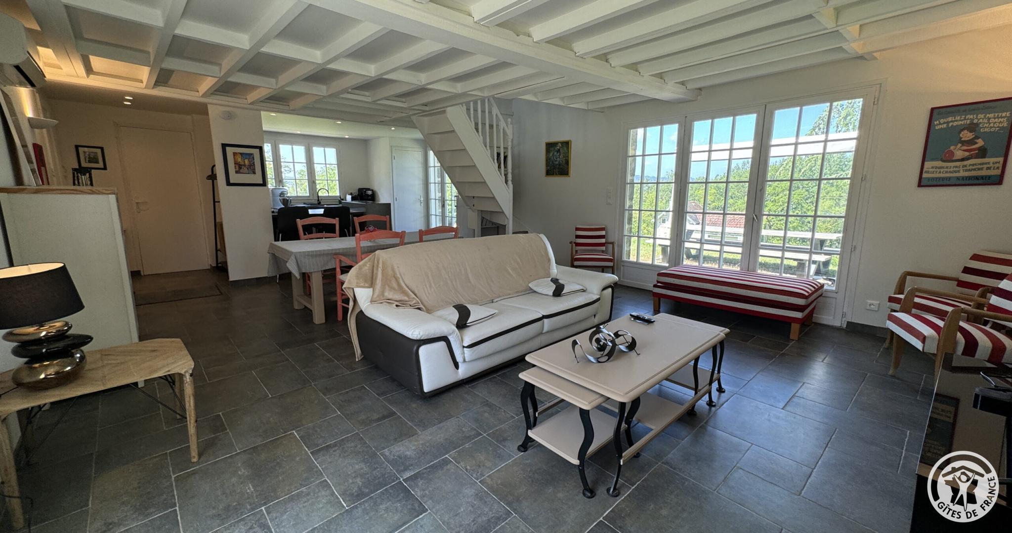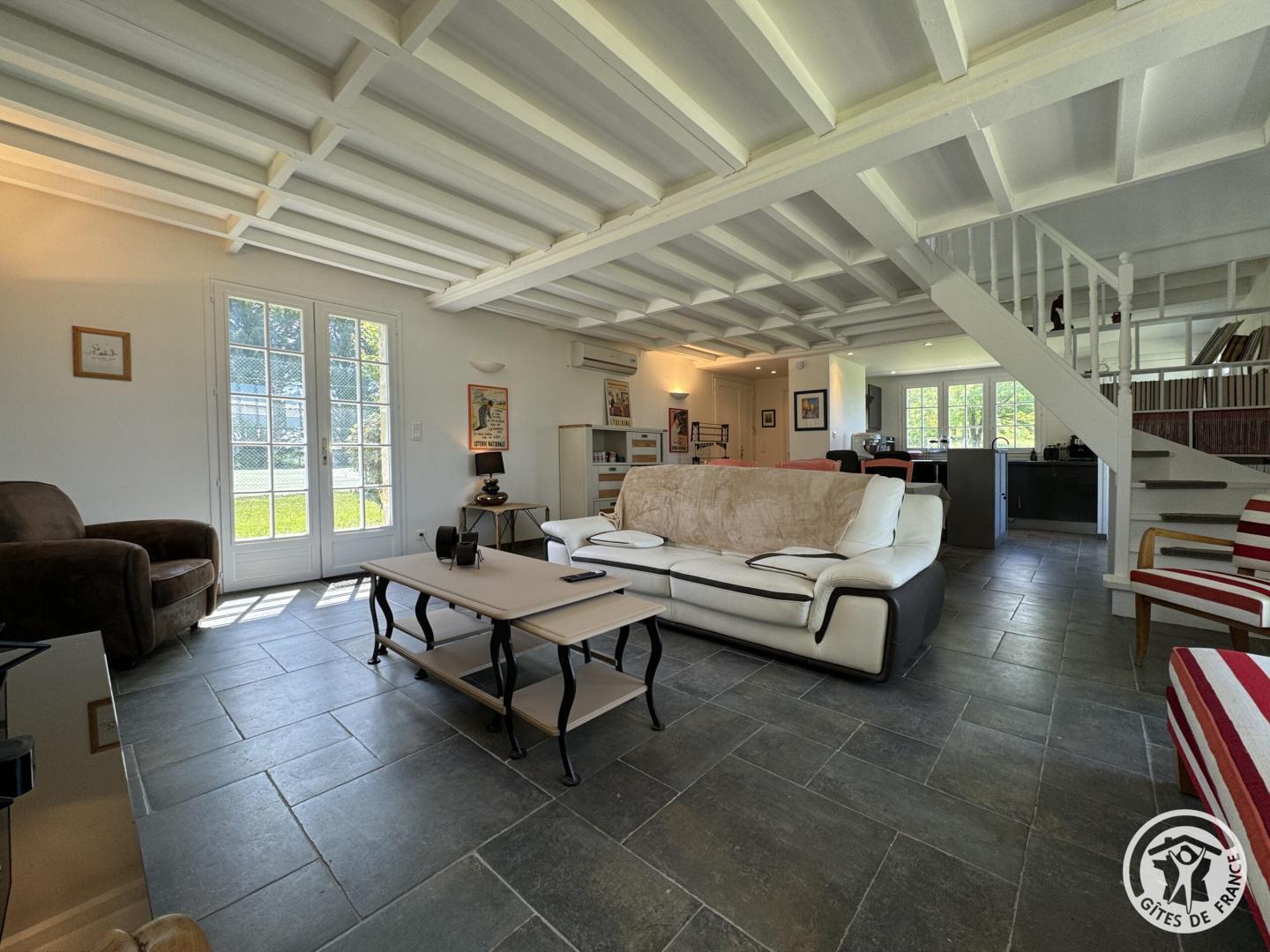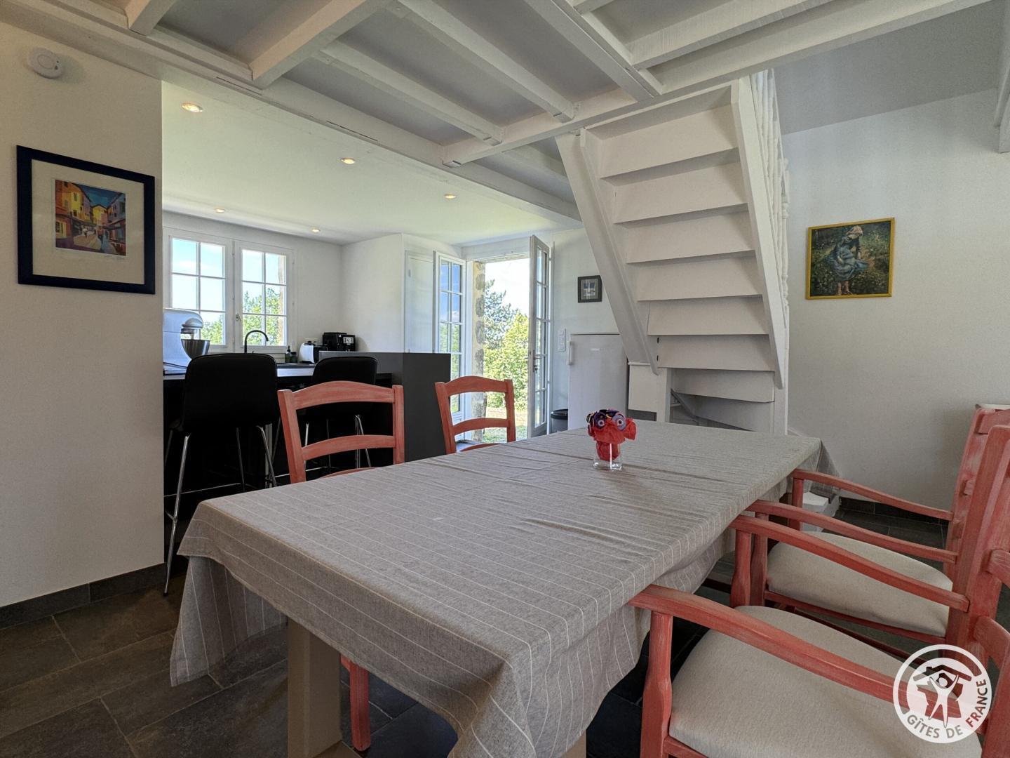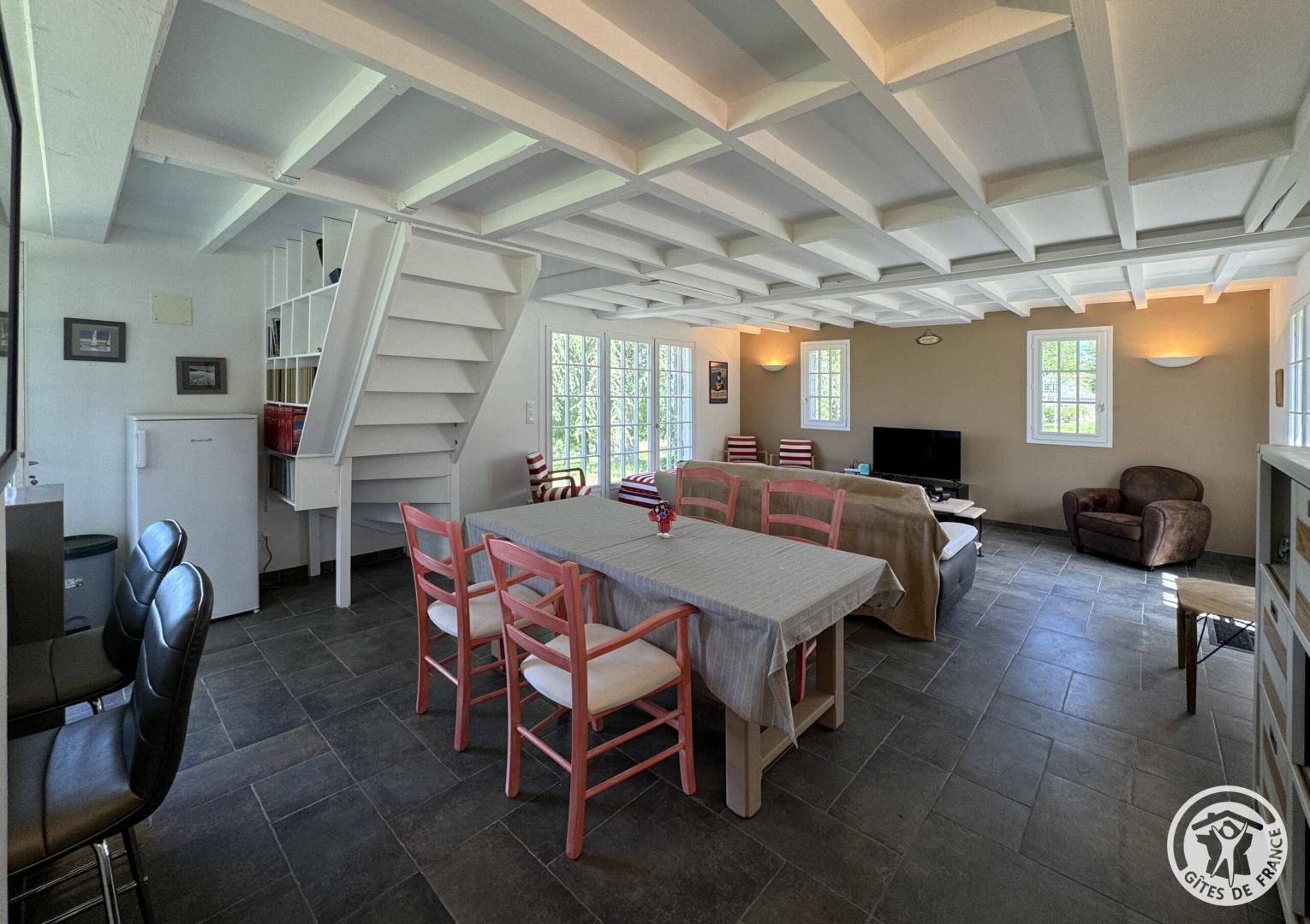 Au rez-de-chaussée, une grande pièce à vivre lumineuse vous accueille, offrant une vue imprenable sur le jardin. Cet espace convivial inclut un canapé confortable, une télévision, un accès au WIFI, ainsi qu'un coin repas. La cuisine intégrée, à la fois fonctionnelle et pratique, est entièrement équipée pour vous permettre de préparer de délicieux plats. De plus, un WC indépendant est à votre disposition.