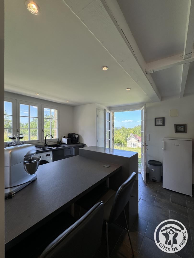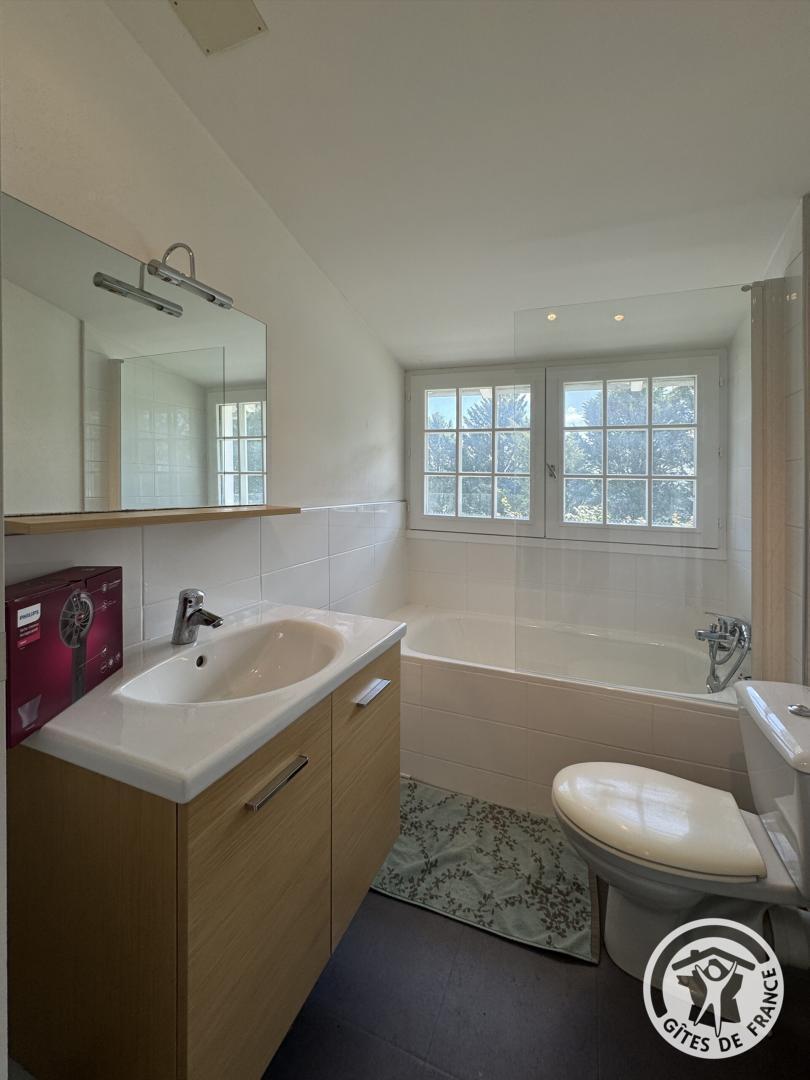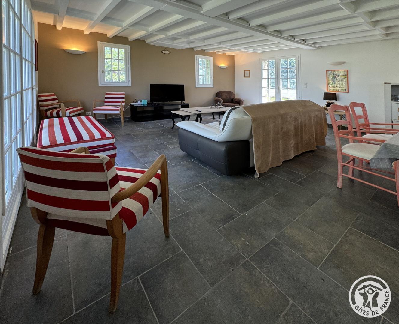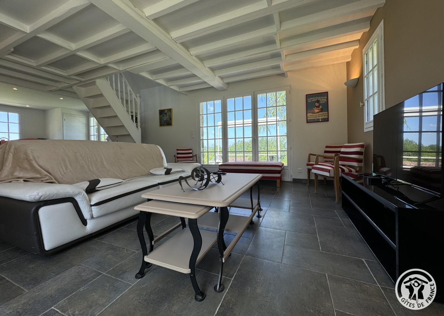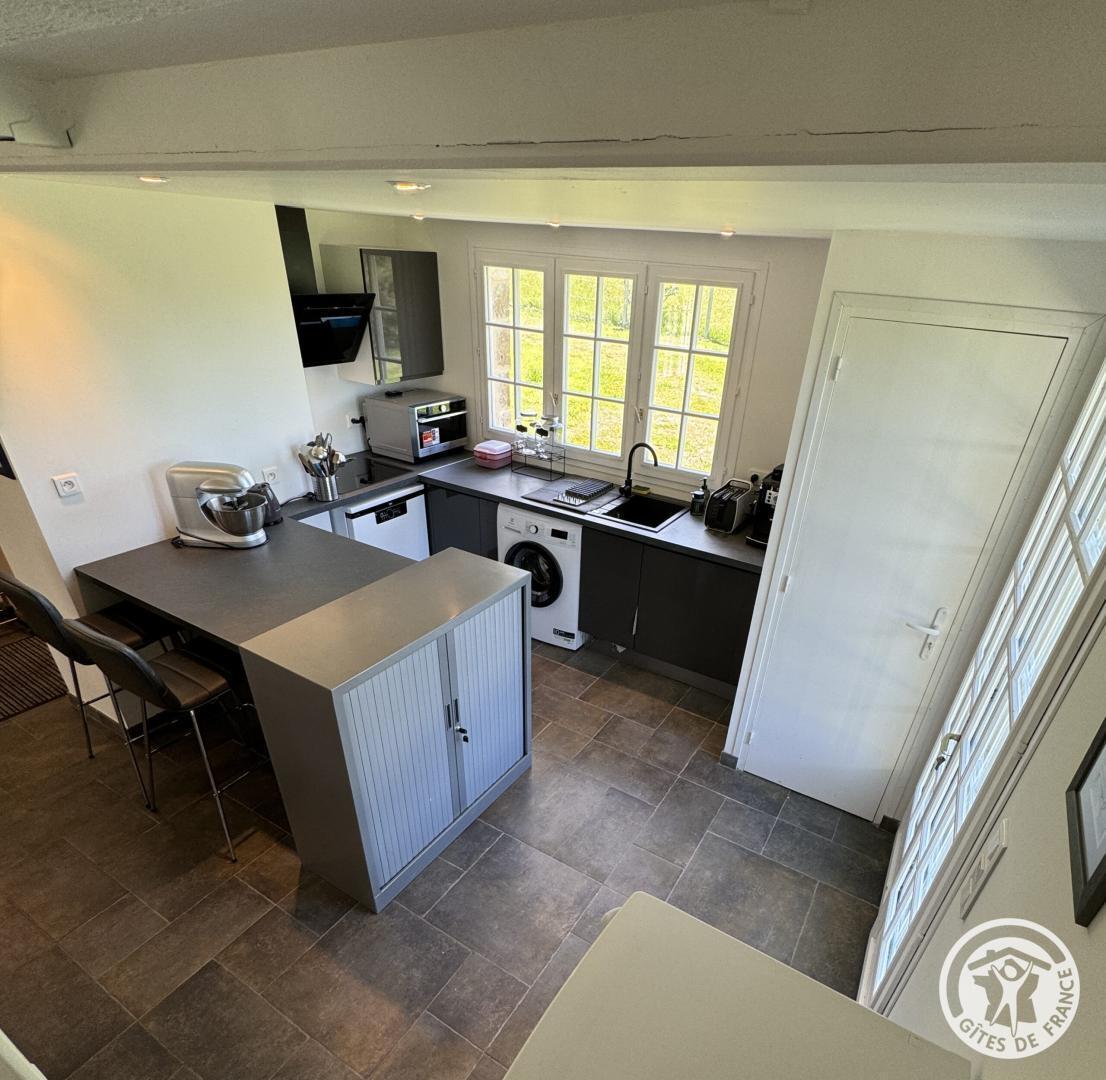 Au rez-de-chaussée, une grande pièce à vivre lumineuse vous accueille, offrant une vue imprenable sur le jardin. Cet espace convivial inclut un canapé confortable, une télévision, un accès au WIFI, ainsi qu'un coin repas. La cuisine intégrée, à la fois fonctionnelle et pratique, est entièrement équipée pour vous permettre de préparer de délicieux plats. De plus, un WC indépendant est à votre disposition.