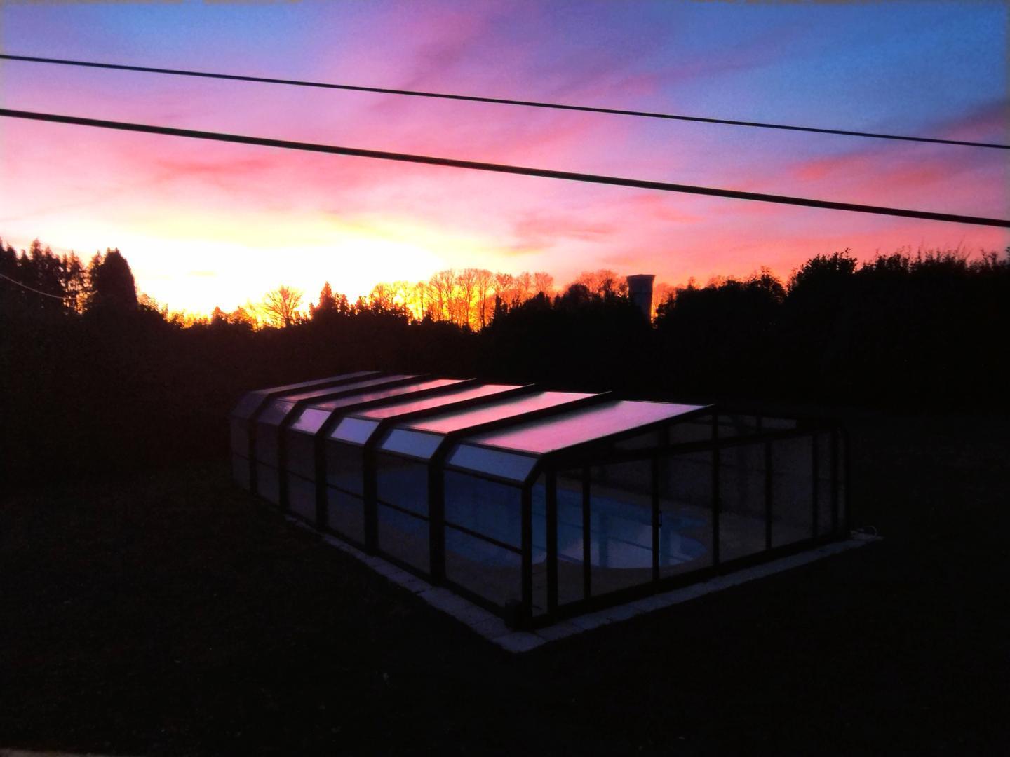 Piscine couverte de 10x5 avec profondeur progressive non chauffée et partagée avec les propriétaires, entretenue par nos soins