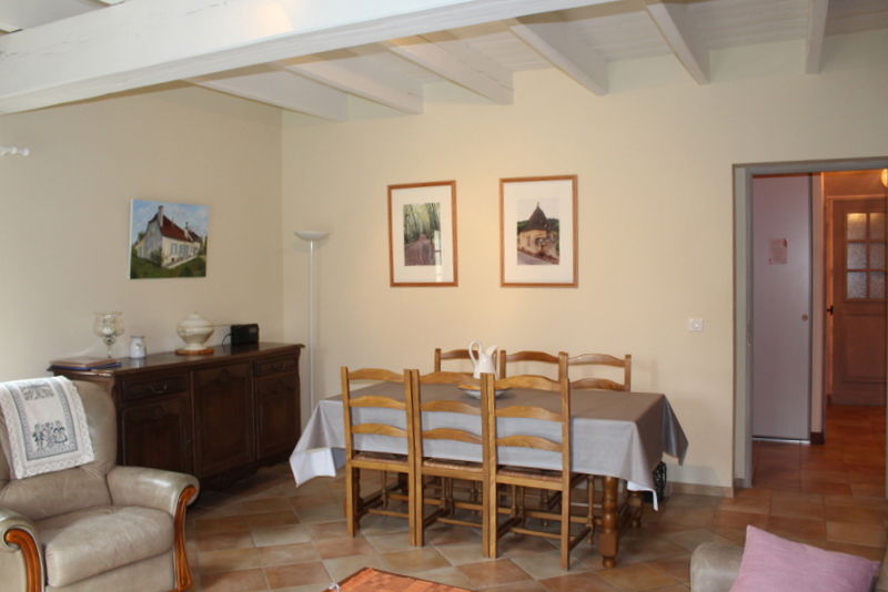 A 1 km de Lamonzie-Saint-Martin (Commerces) et 9 km de Bergerac, maison de 87 m2 mitoyenne à celle des propriétaires. Rez-de-chaussée : Cuisine salon séjour avec poêle à bois dans cheminée, télévision, wifi. Une chambre avec un marche 1lit en 140. Salle d'eau avec douche à l'italienne. WC indépendant. A l'étage : sur le palier fermé un WC indépendant et un lit en 140x190 puis une chambre avec 1 lit en 160. . Chauffage au sol dans les pièces carrelées et par radiateurs dans les chambres. Terrain non clos de 315 m2 avec terrasse, salon de jardin, bains de soleil et plancha. Supplément animal 7€ par jour.Matériel bébé : 1 lit bébé, 1 chaise haute, 1 adaptateur WC.