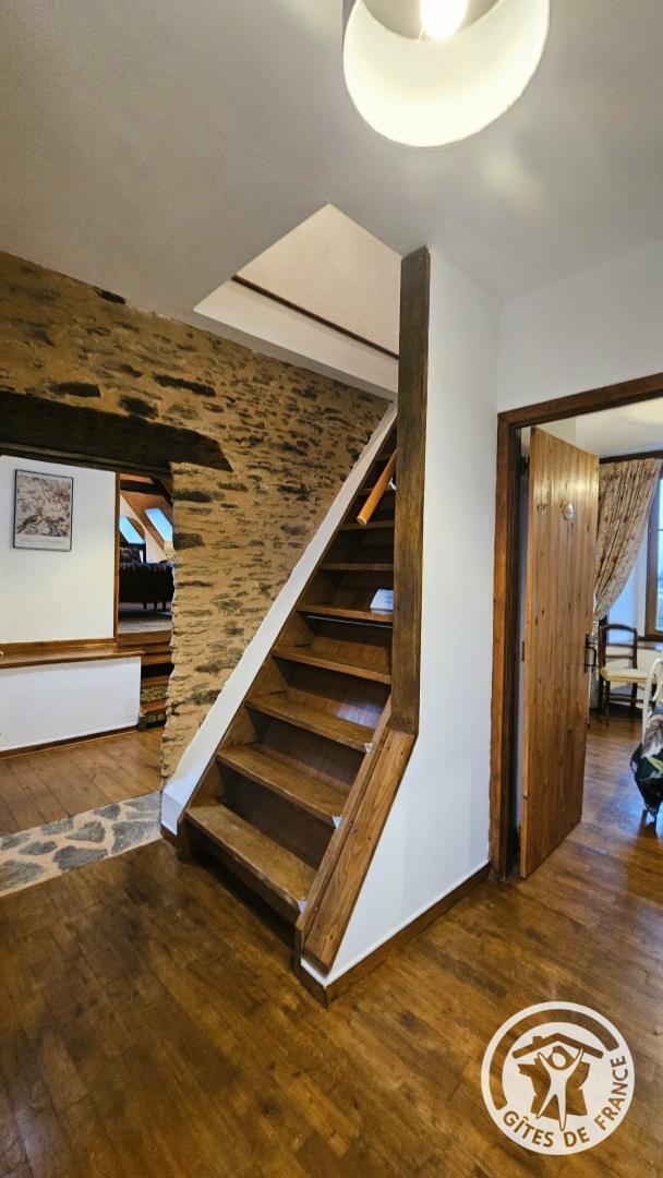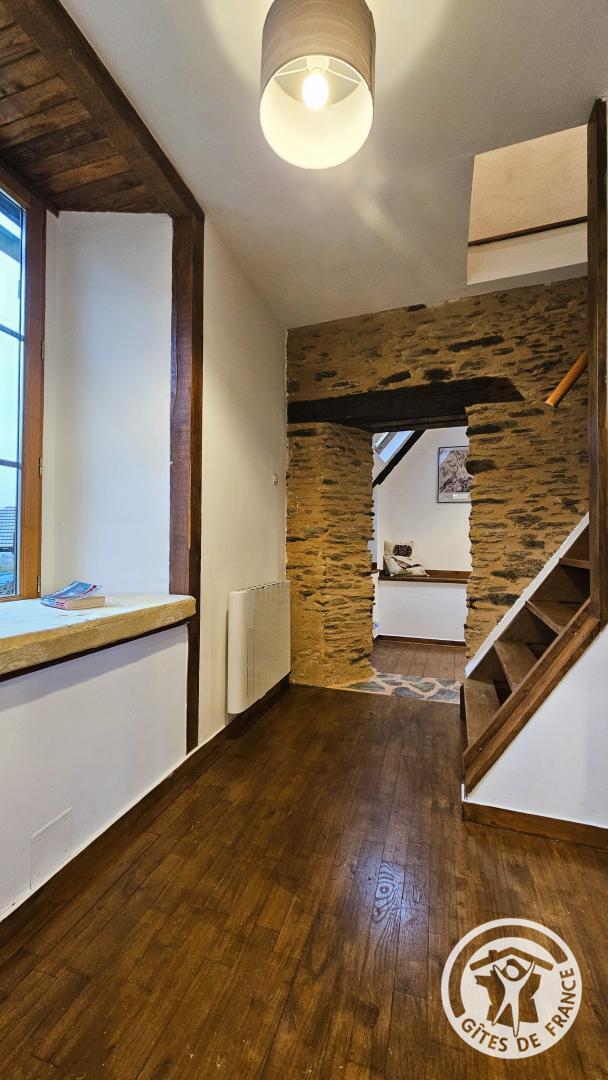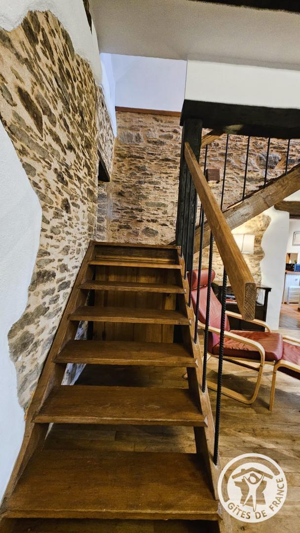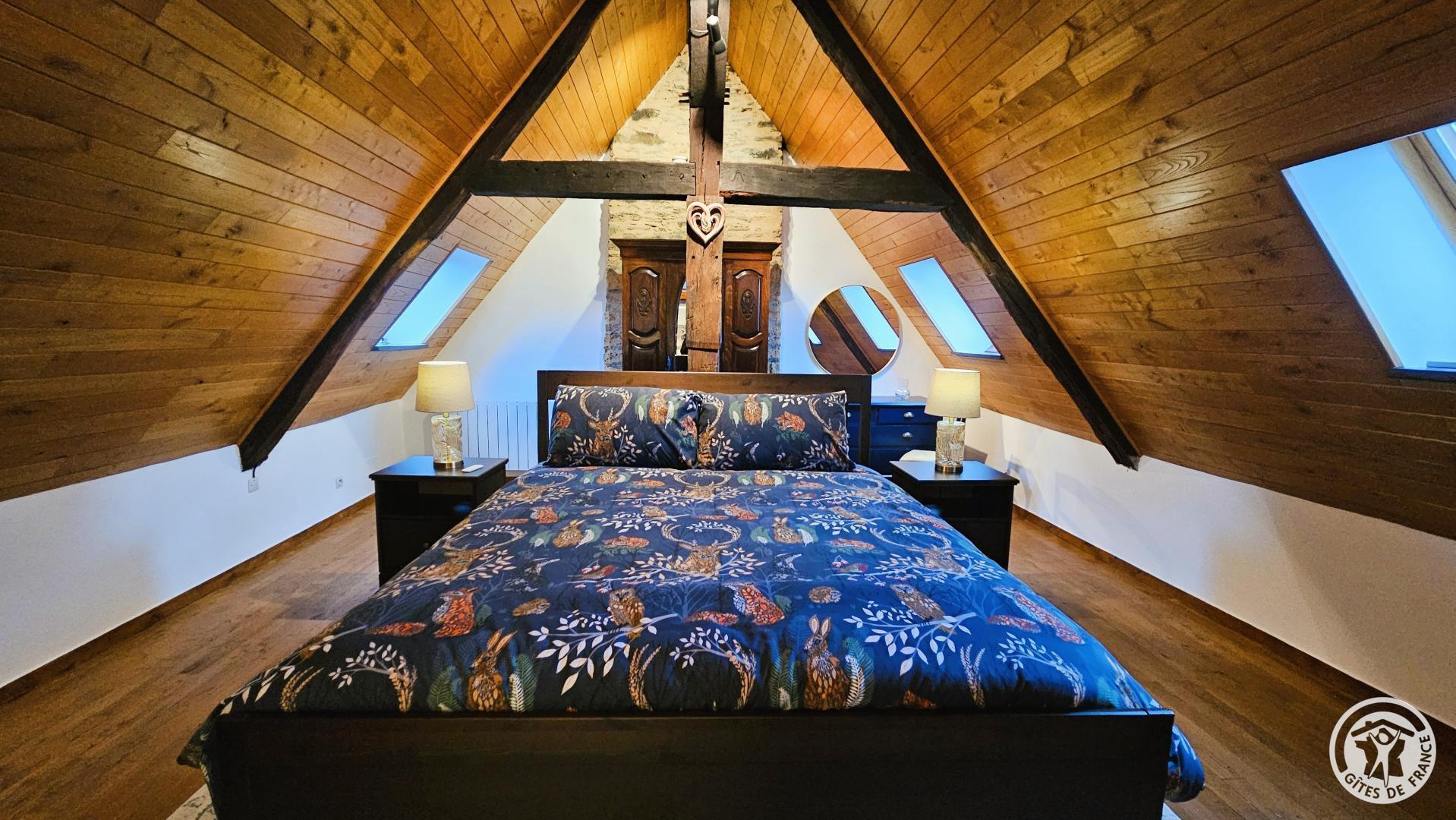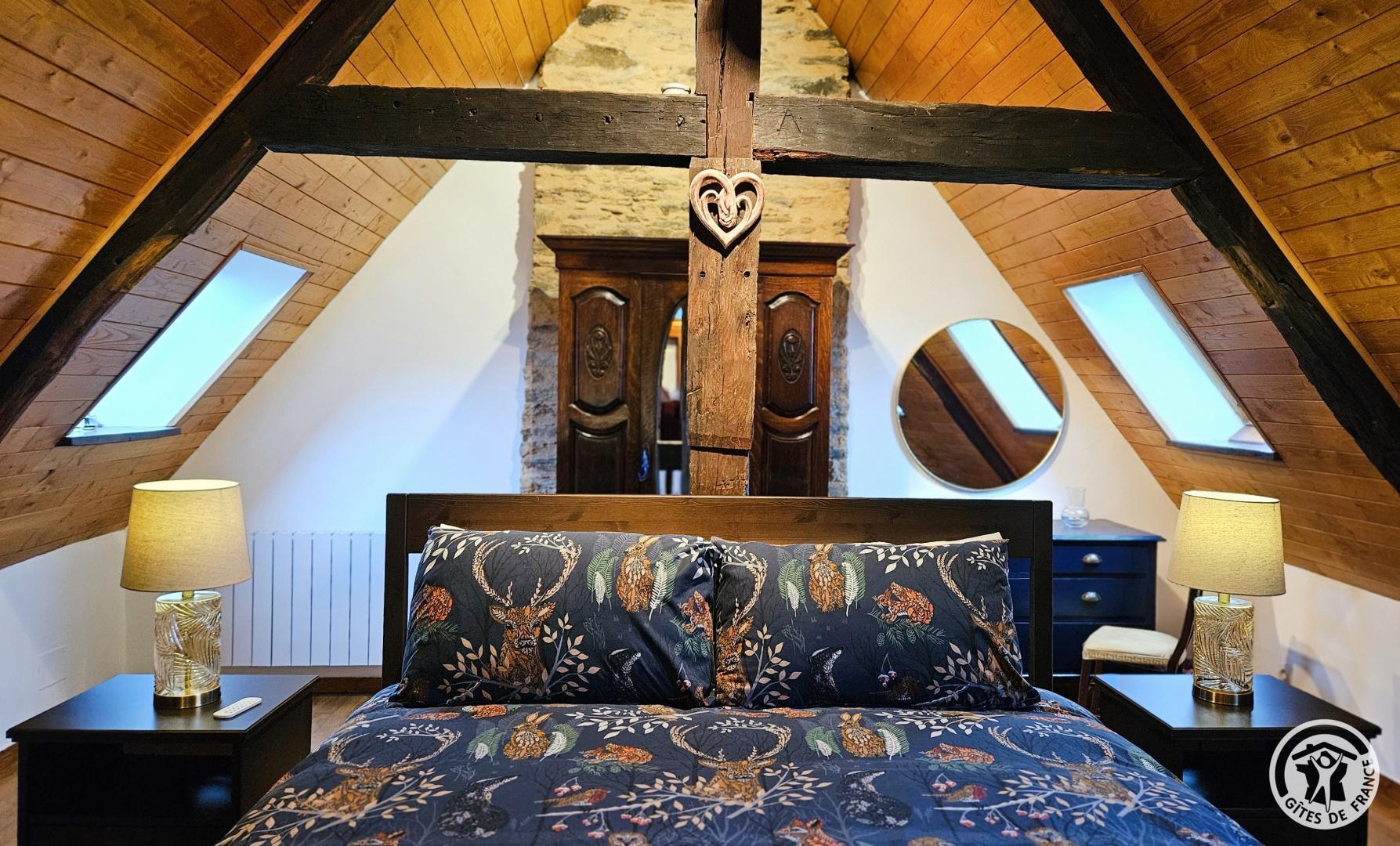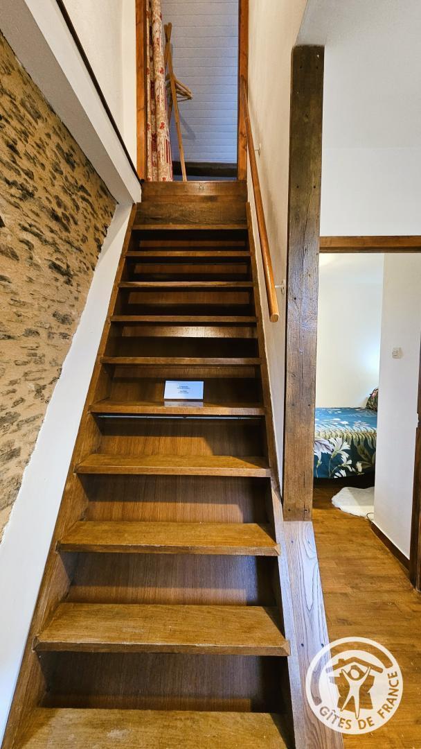 Aux combles, accessible par un escalier à forte pente, typique des anciennes maisons, se trouve un espace cosy, idéal pour un adolescent ou un adulte :