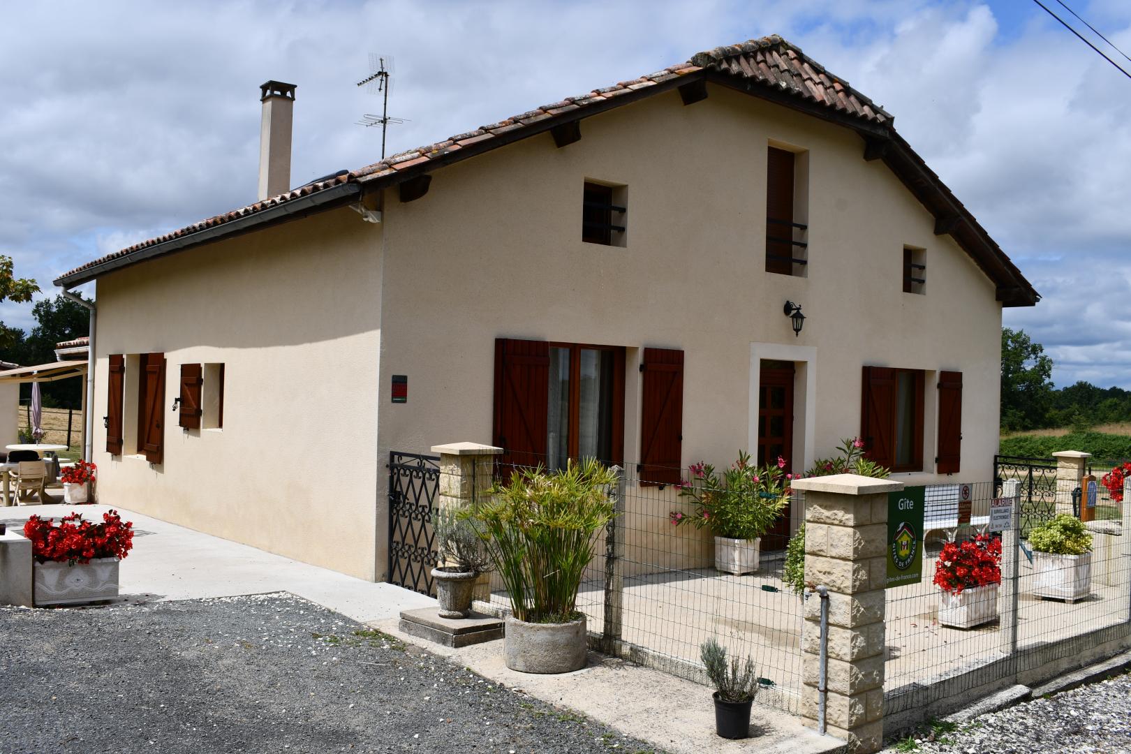 A 5 km de St Barthélémy de Bellegarde (Boulangerie, bar-restaurant, boucherie de la ferme, épicerie) et 12 km de Mussidan (Tous commerces et services), maison indépendante de 185 m2 à proximité d'une habitation. Rez-de-chaussée : Entrée, cuisine puis 1 marche vers le séjour coin-salon avec cheminée décorative, Wifi et TV. 1 chambre : 1 lit en 140. Salle de bains, baignoire et cabine douche. WC indépendant. Étage : Coin-détente et bibliothèque avec TV, 2 chambres mansardées : une avec un lit 140 et une autre avec un lit en 140 + 1 lit en 90 pour 1 personne ne souhaitant pas partager un lit en 140 mais la capacité du gîte reste de 6 personnes maximum. Chauffage pompe à chaleur. Terrain non clos de 5 ha. Terrasse avec salons de jardin, bains de soleil, parasol, barbecue. Électricité et linge de maison inclus. Linge de toilette 10€/personne/change. Draps 20€/lit/change. Ménage fin de séjour 70€. Chauffage 10€/jour. A disposition : Table de ping-pong. Matériel bébé : lit bébé, chaise haute Grande propriété située à 4 km du circuit du "vélo-route", entre la Vallée de l'Isle (Idéal pour le pêche) et le Grand Etang de La Jemaye à 15 km (Plage de sable surveillée en été, jeux pour enfants, parcours sportif, snacks et restaurants), dans la Forêt de la Double, à proximité du Chemin de St Jacques de Compostelle. Le gîte a vue sur la forêt et un enclos à chevaux appartenant à la propriétaire. A 7 km de l'Abbaye Notre Dame de Bonne Espérance à Echourgnac (Les moines et moniales fabriquent et vendent des pâtes de fruits et des confitures et affinent un fromage à la liqueur de noix). A 35 km de Périgueux et de Bergerac. Laissez-vous charmer par ce gîte dont l’atout majeur est son emplacement, niché dans un écrin de verdure, entre prés et forêt.