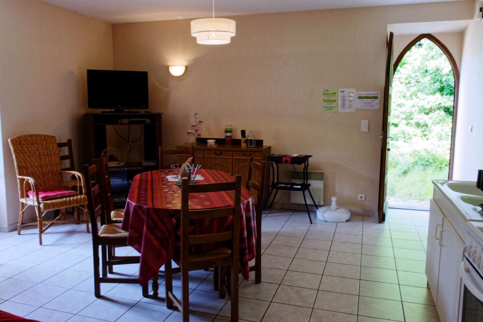 Taxe de séjour fixée par la communauté de communes. Partie inférieur du bâtiment louée à l'année (entrée indépendante). Terrain de 400 m² avec jeux pour enfants. 2 chambres (2 lits 1 place, 1 lit 2 places), salle de séjour avec coin cuisine, petit congélateur, ventilateur, Senseo, chauffage central électrique. Piscine surveillée à proximité en juillet et août. Terrain de tennis et pétanque. Bar-restaurant dans le village d'avril à novembre. Altitude 260 m.