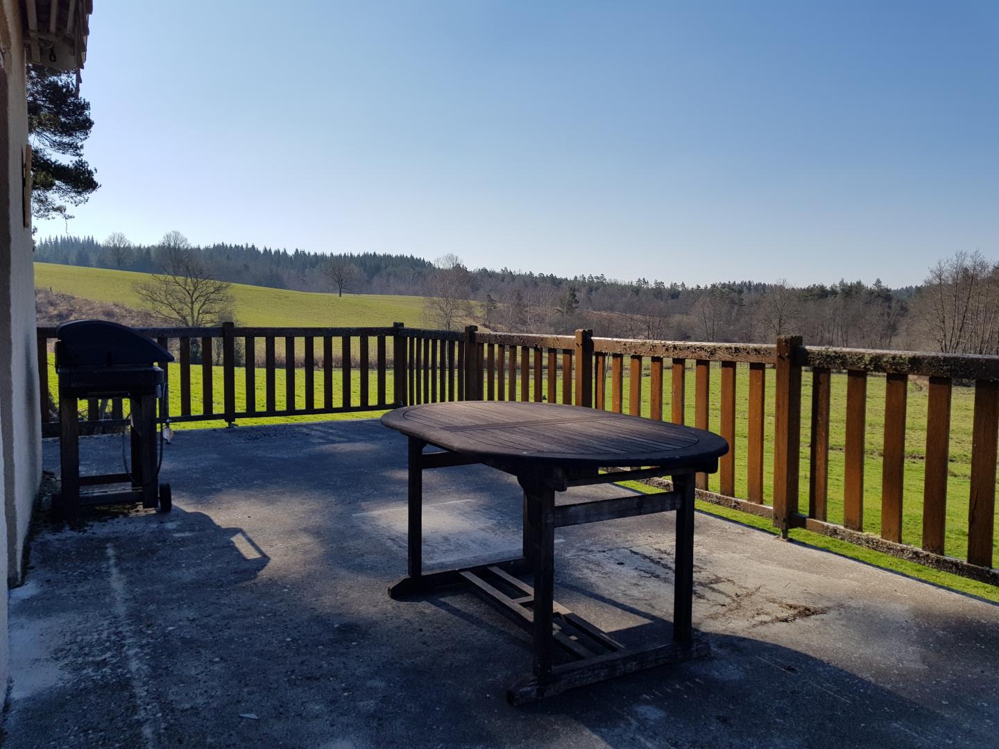 La maison se compose au rez de chaussée du séjour/salon/salle à manger avec cuisine équipée et poêle, à l'étage une chambre double et la salle d'eau avec douche et wc. A l'extérieur, une belle terrasse avec vue panoramique sur la nature environnante.