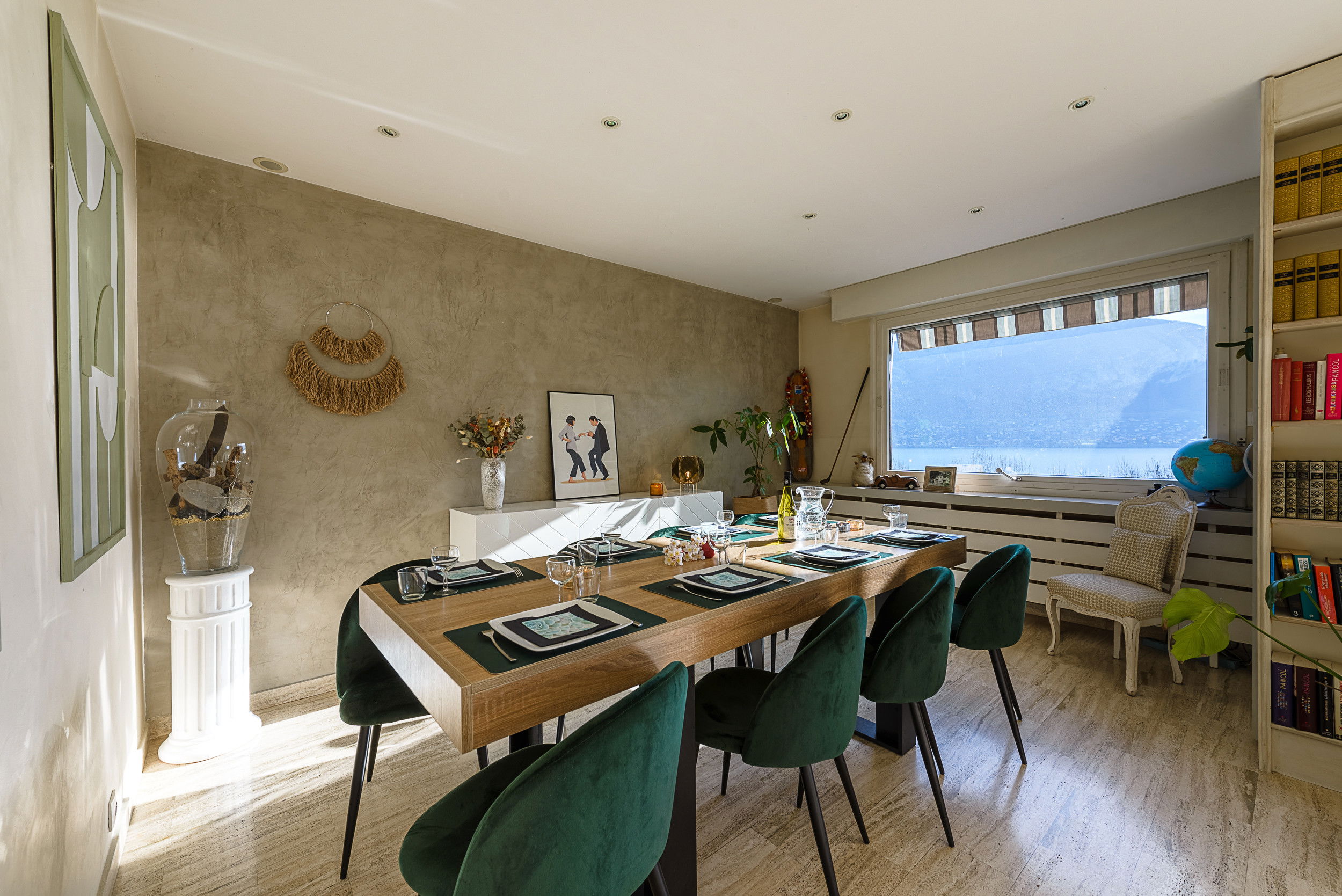 Magnifique demeure familiale avec vue imprenable sur le lac d'Annecy. Située dans une impasse au calme, dans le coeur du village de Sevrier. Vous profiterez de la tranquillité des espaces verts des alentours et d'un panorama unique sur les montagnes.