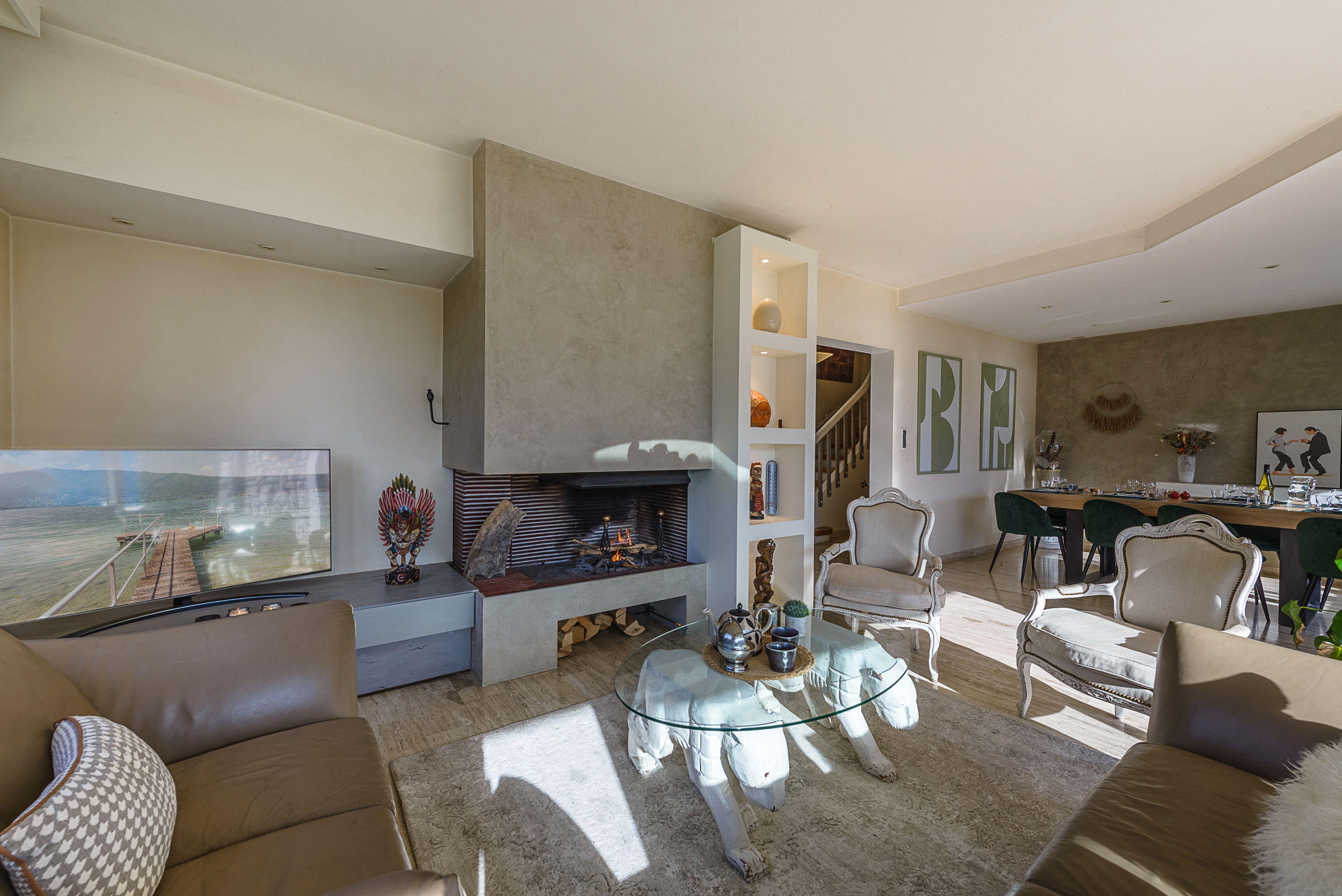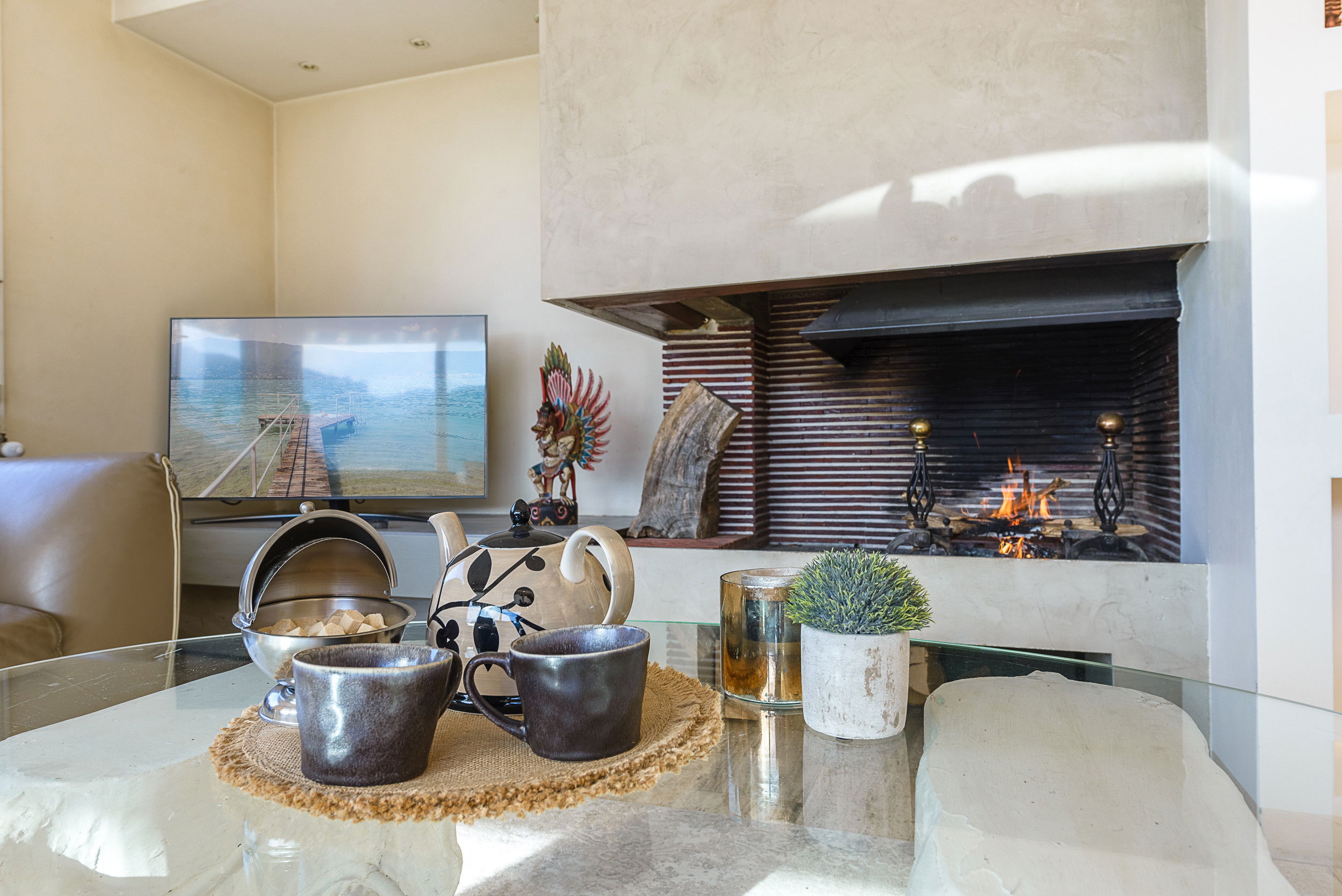 - Salon avec grand canapé, télévision connectée (Netflix, chaines TV...) et cheminée