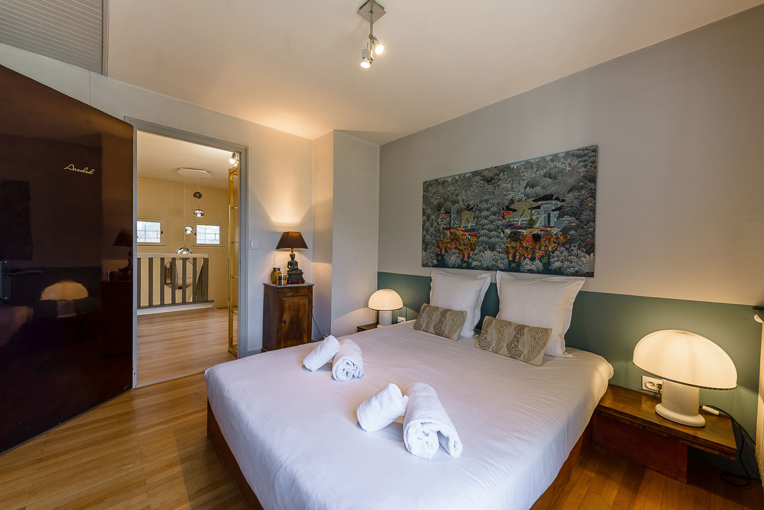 - Chambre n°4, Arcalod : 1 lit double 160x200 avec accès au même balcon, télévision et grand placard de rangement (dressing)