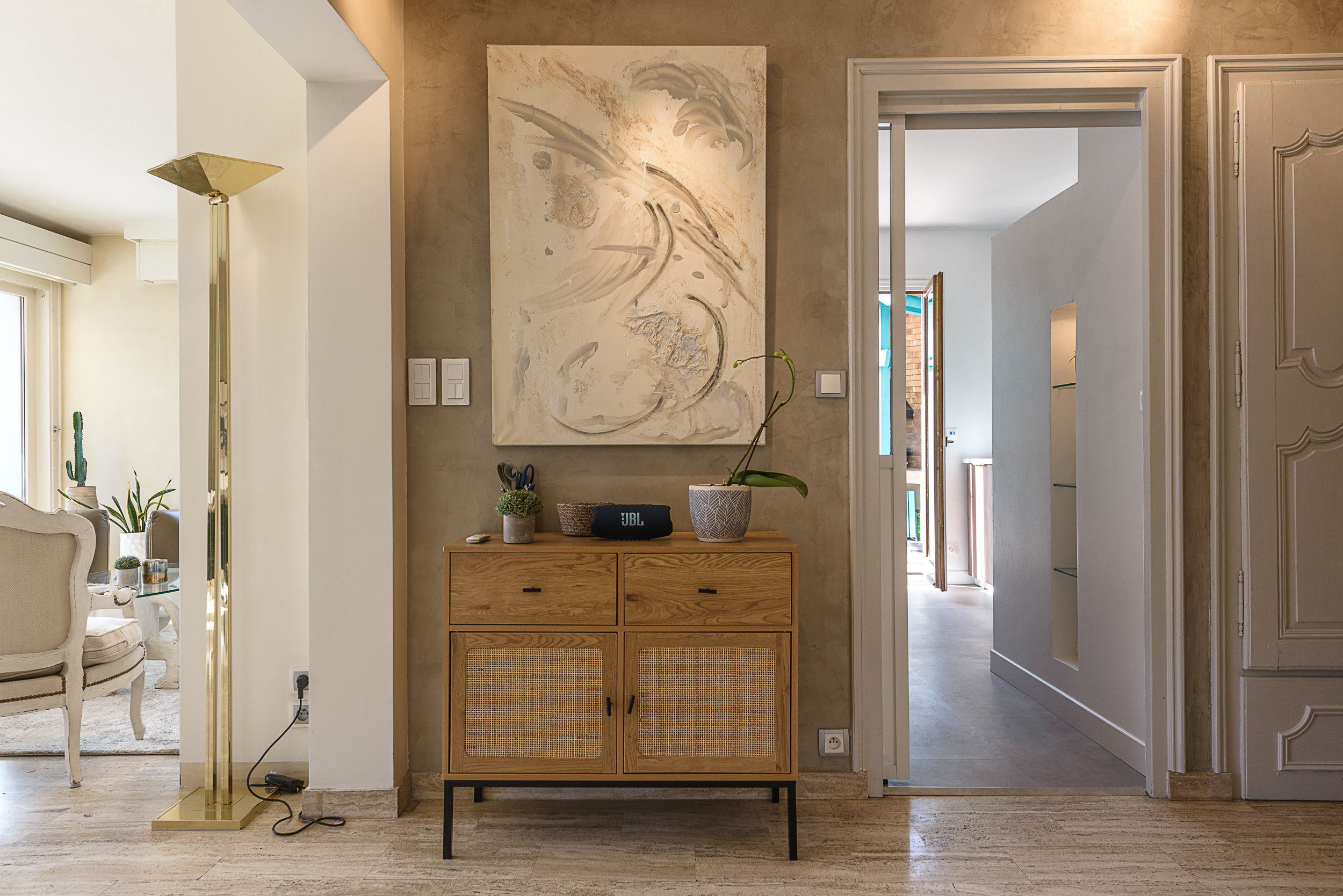 - Salle à manger de 8 personnes, ouverte sur le salon donnant accès à la terrasse par de grandes baies vitrées