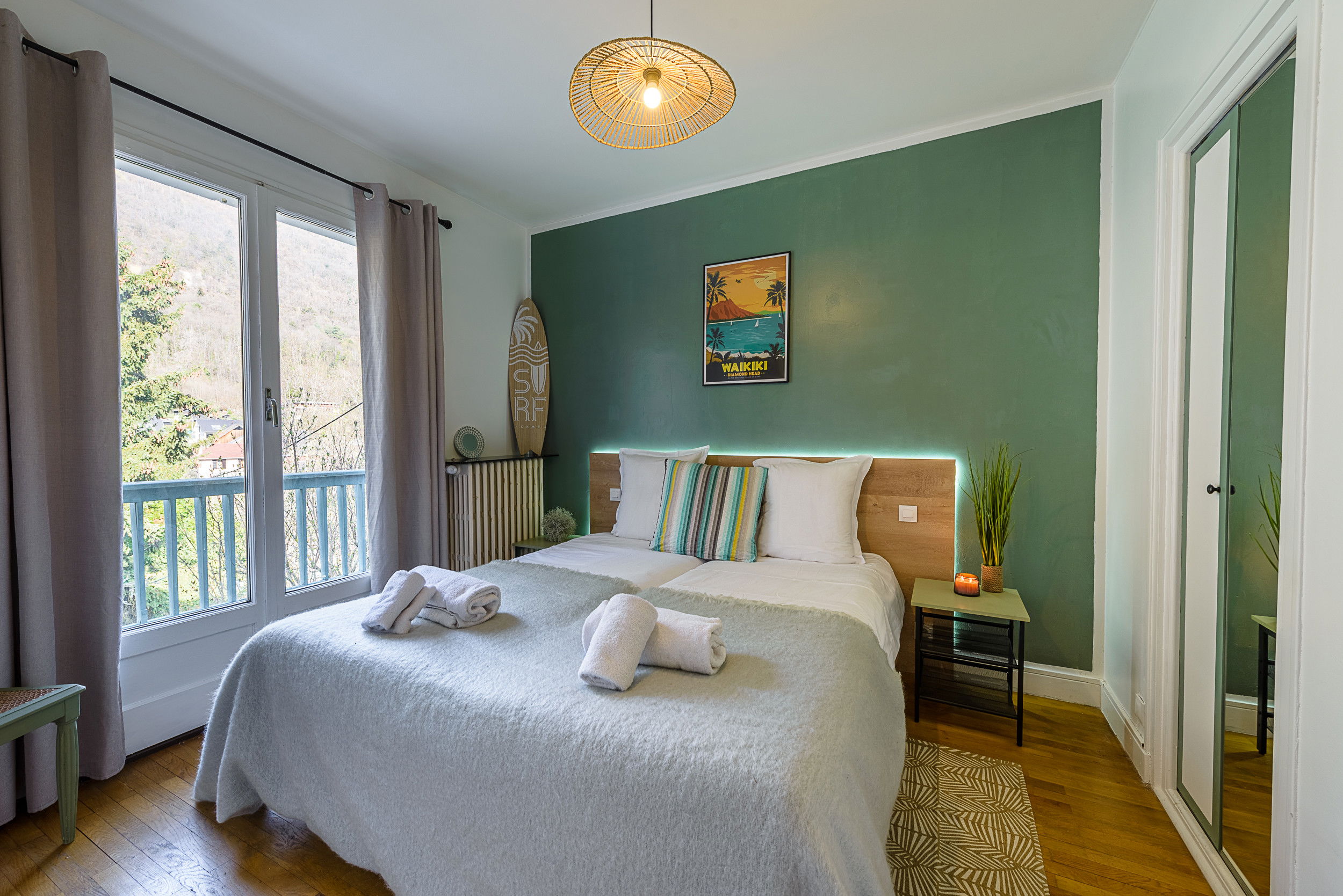 - Chambre n°1, Semnoz : 2 lits simples twinables de 80x190 (possibilité de faire un seul lit double) avec accès balcon et placard de rangement (dressing)
