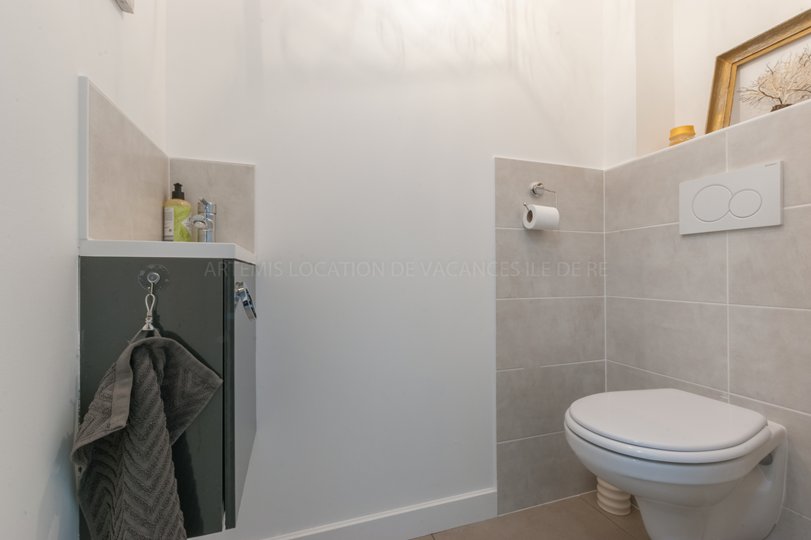 La maison dispose d'une salle d’eau, de toilettes indépendants dans le couloir et d'une buanderie.