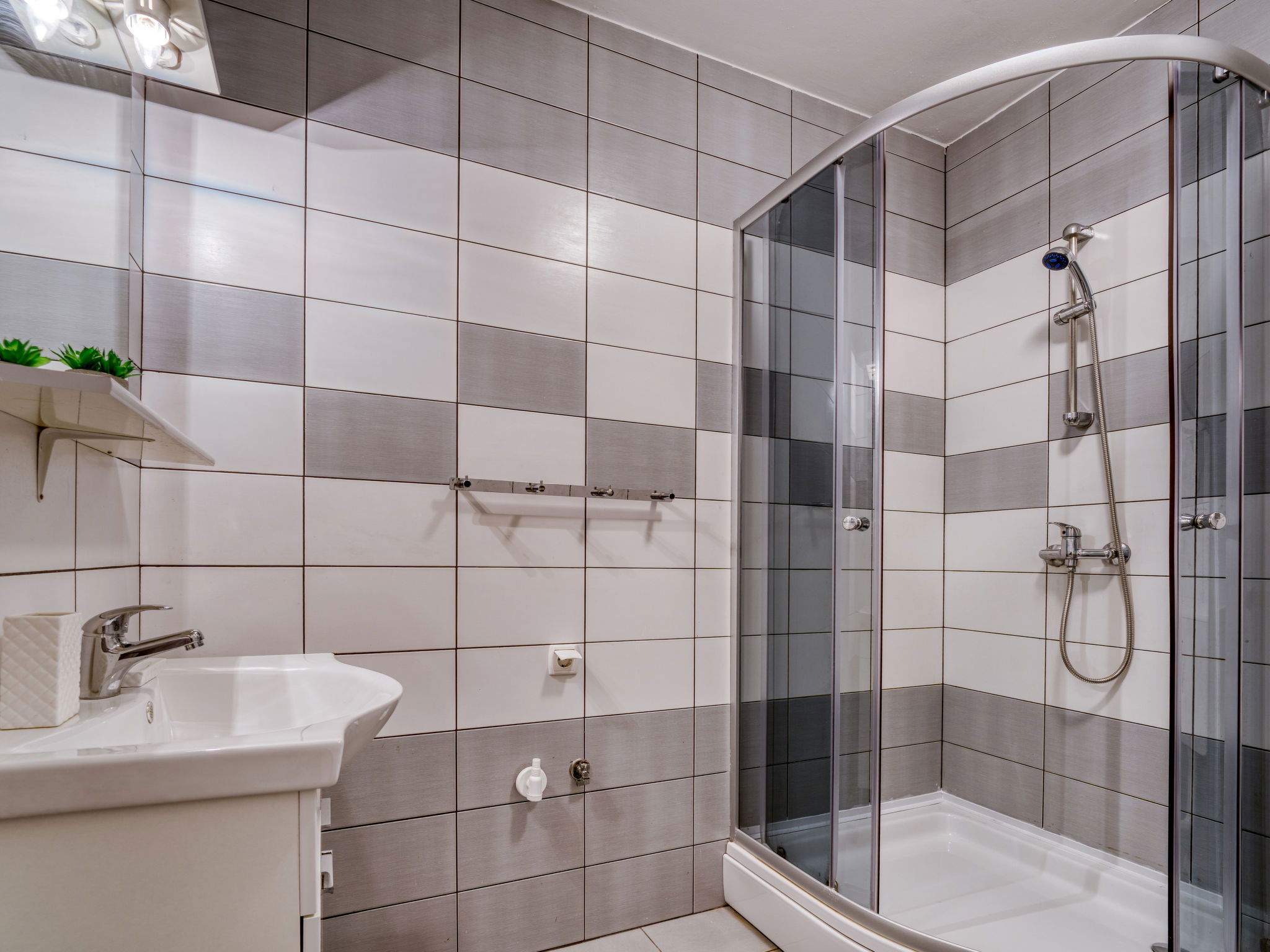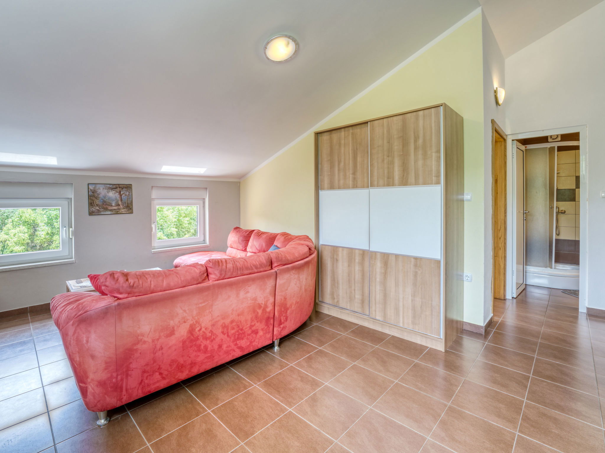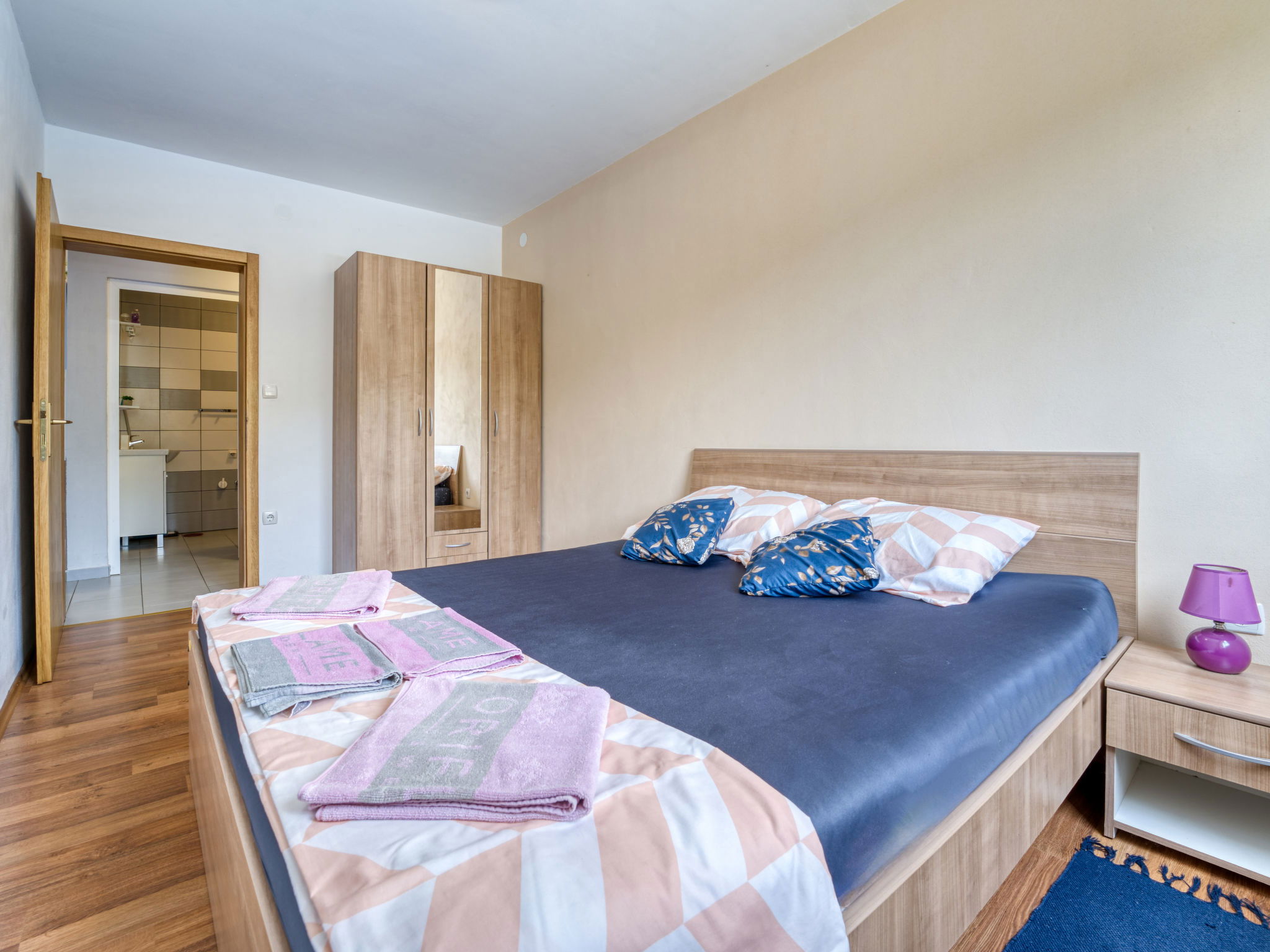 Maison jumelée 8 pièces 160 m2 sur 2 niveaux. Séjour/salle à manger avec 2 divans-lits (100 cm, longueur 180 cm), TV (satellite) et air-conditionné. Sortie sur la terrasse, sur la piscine. 1 chambre avec 1 grand-lit (180 cm, longueur 200 cm). Sortie sur la terrasse, sur la piscine. 1 chambre avec 1 grand-lit (160 cm, longueur 200 cm). 1 chambre avec 2 lits (90 cm, longueur 190 cm), TV (satellite). Salle à manger avec air-conditionné. Sortie sur la terrasse. Cuisine ouverte (four, lave-vaisselle, 4 plaques vitrocéramiques, grille-pain, bouilloire électrique, micro-ondes, congélateur, cafetière électrique). 2 douches/WC. À l'étage supérieur: (escalier extérieur) séjour/salle à manger mansardé, hauteur plafond 160 - 300 cm avec 1 divan-lit double (130 cm, longueur 200 cm), TV (satellite) et air-conditionné. 1 chambre, mansardée hauteur plafond 160 - 300 cm avec 1 grand-lit (160 cm, longueur 200 cm). Sortie sur le balcon. Séjour/salle à manger mansardé, hauteur plafond 160 - 300 cm avec 1 divan-lit (110 cm, longueur 190 cm), TV (satellite) et air-conditionné. 1 chambre, mansardée hauteur plafond 160 - 300 cm avec 1 grand-lit (160 cm, longueur 200 cm). Sortie sur le balcon. 2 douches/WC. Chauffage à air chaud (en sus). 2 balcons 2 m2, terrasse 18 m2, couverte terrasse 10 m2, couverte. Meubles de terrasse, mobilier de balcon, chaises longues (6). A disposition: chaise haute pour enfant, lit bébé (en sus). Internet (Connexion WIFI, gratuit). Maximum 2 animaux/ chiens autorisés. Pas de liaison interne entre les étages. Au rez-de-chaussée : un appartement avec séjour/salle à manger, coin repas supplémentaire, cuisine ouverte et 3 chambres. 2 appartements au premier étage, chaque appartement avec salon / salle à manger avec fenêtres basses et 1 chambre. Si le nombre d’occupants n’atteint pas le maximum, un étage restera fermé.