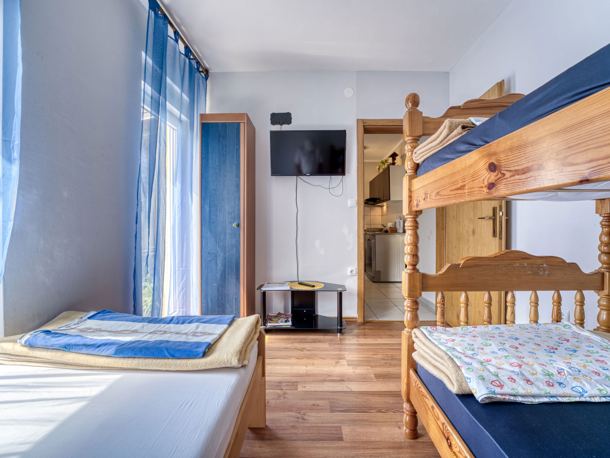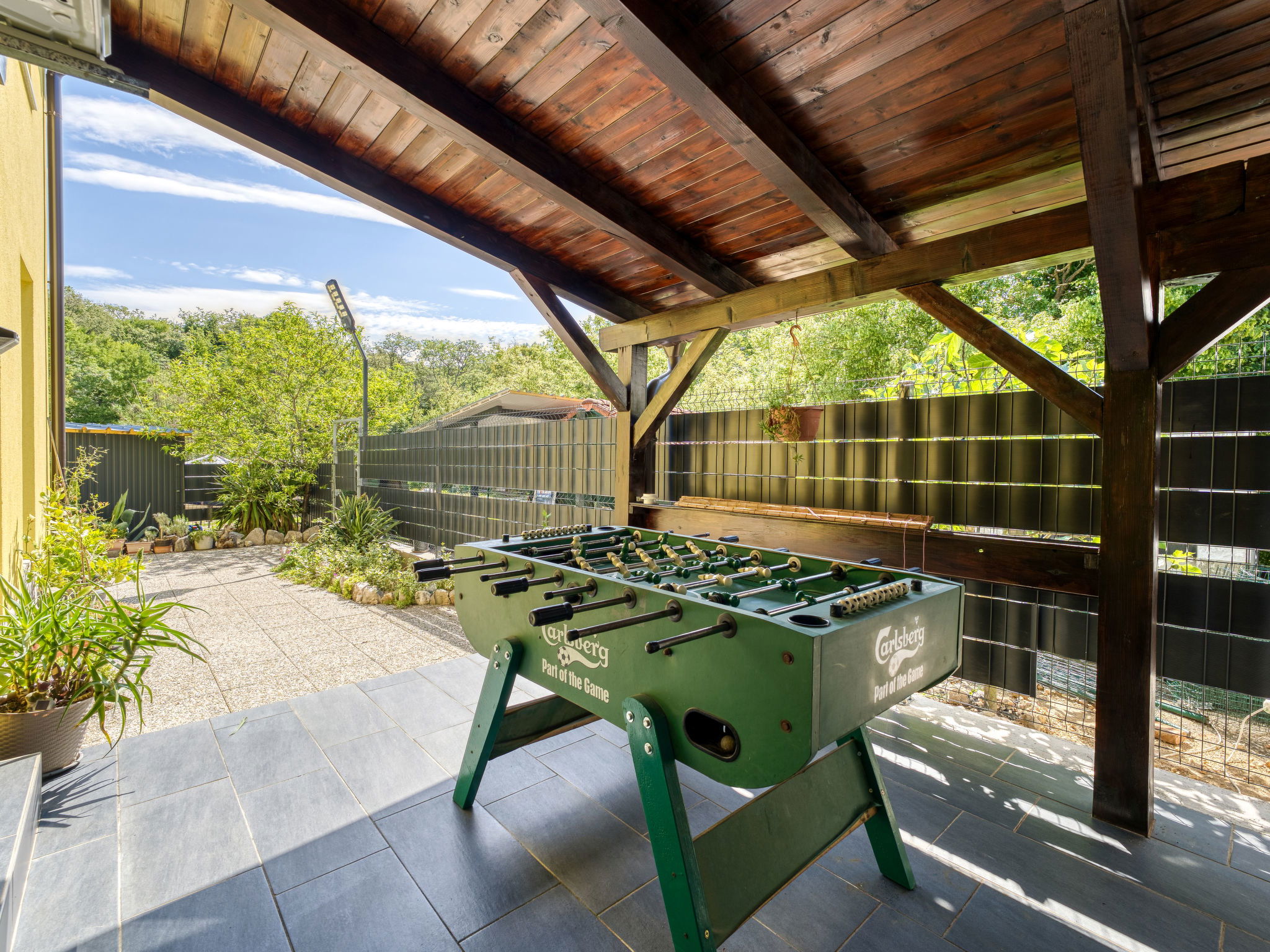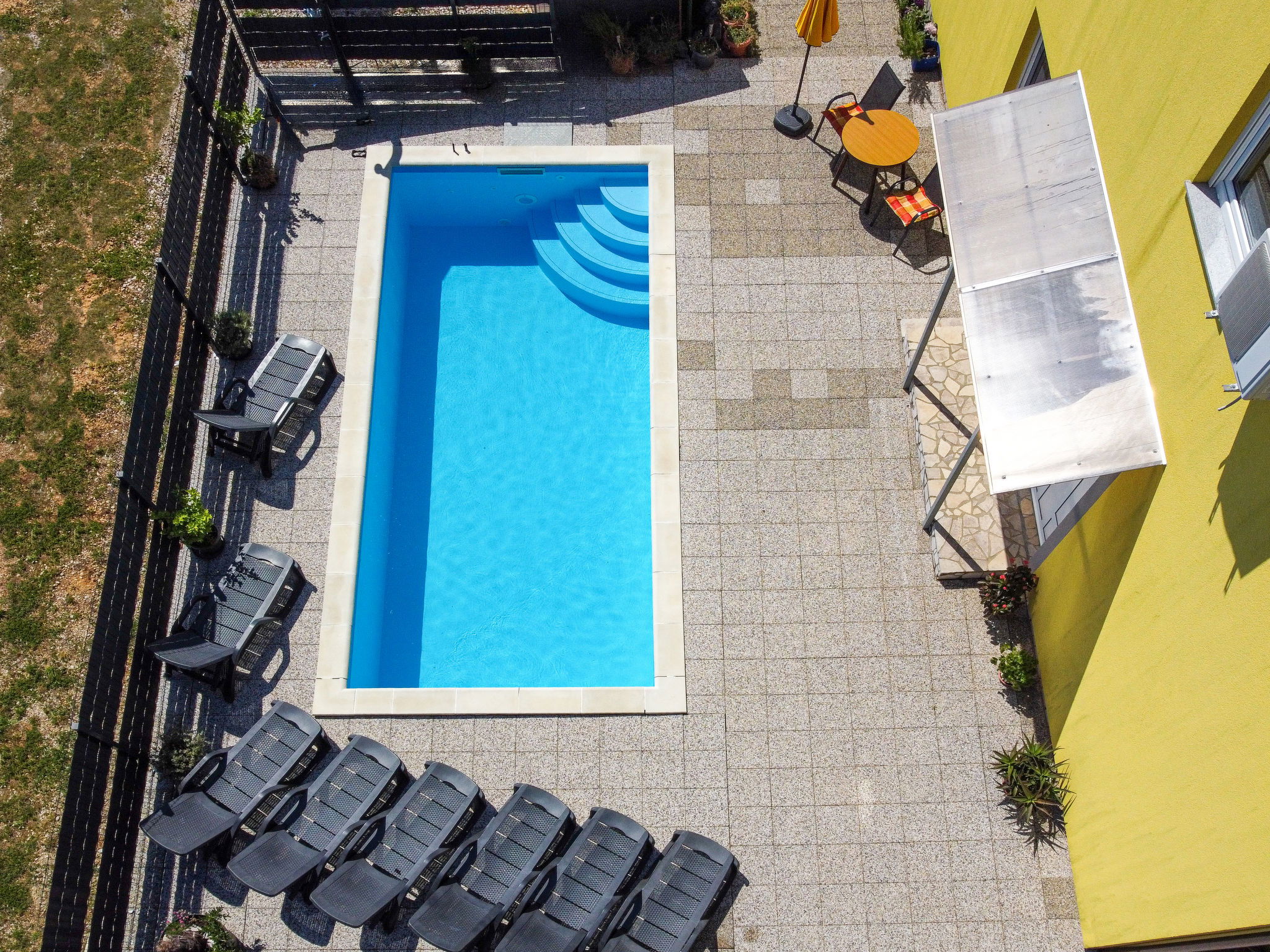 Maison jumelée "Radmila", de 2 étages. À 3 km du centre de Šilo, à 13 km du centre de Vrbnik, à 3 km de la mer, à 3 km de la plage, dans une impasse. A usage privé: terrain 300 m2 (clôturé), piscine (hors sol) (3 x 7 m, profondeur 130 cm, disponibilité saisonnière: 15.Mar. - 15.Nov.). Terrasse, barbecue, entretien de la piscine par le propriétaire/jardinier. Infrastructures de la Maison: accès internet, baby foot, trampoline, lave-linge. Place de parking (pour 4 voitures) près de la maison. Magasins 1.4 km, restaurant 3 km, arrêt de bus 3.5 km, plage de sable 4 km plage de graviers 3 km. Veuillez noter: Aéroport 16 km de la maison. Maison jumelée comprend 3 appartements loués ensemble: un appartement se situe au rez-de-chaussée et les deux autres se trouvent au 1er étage.