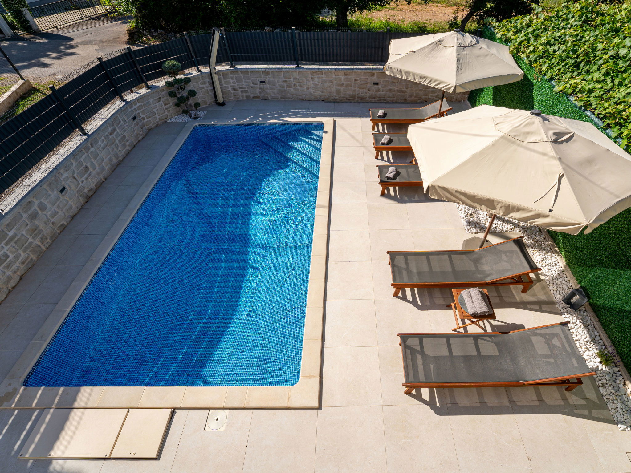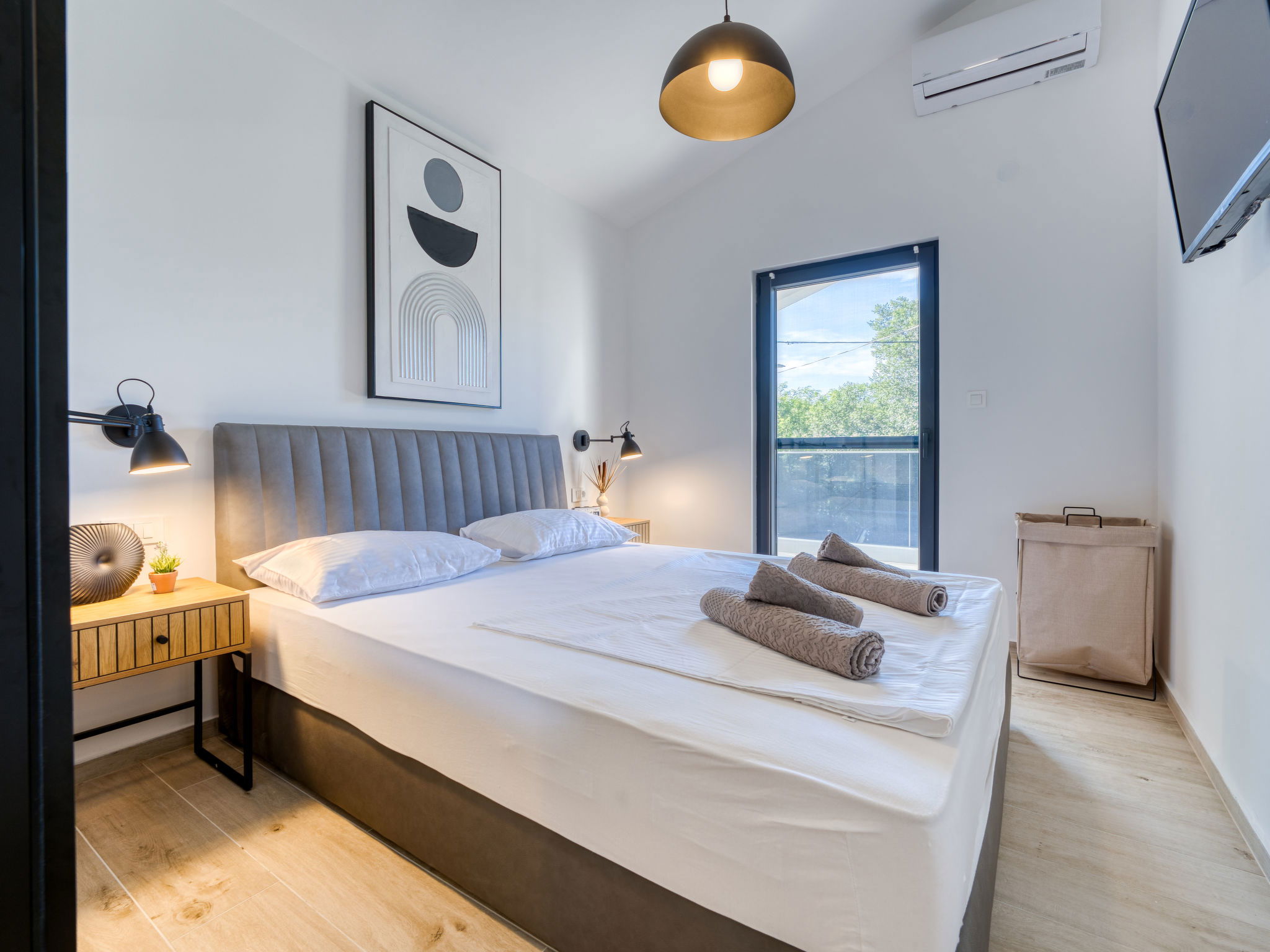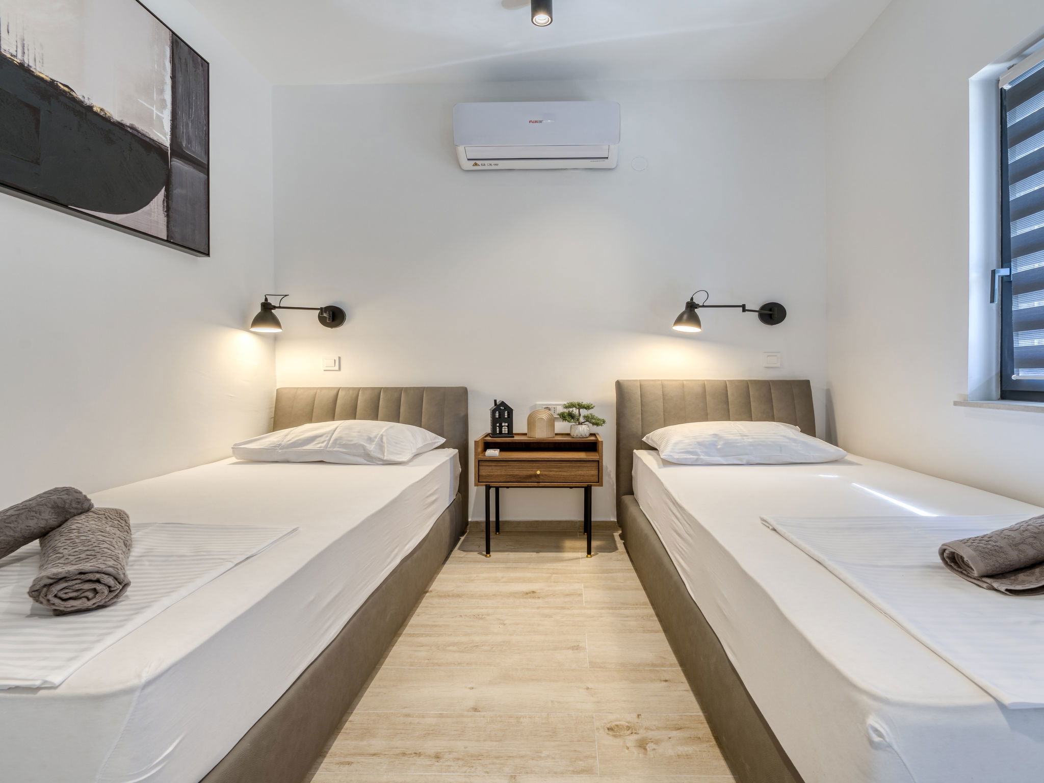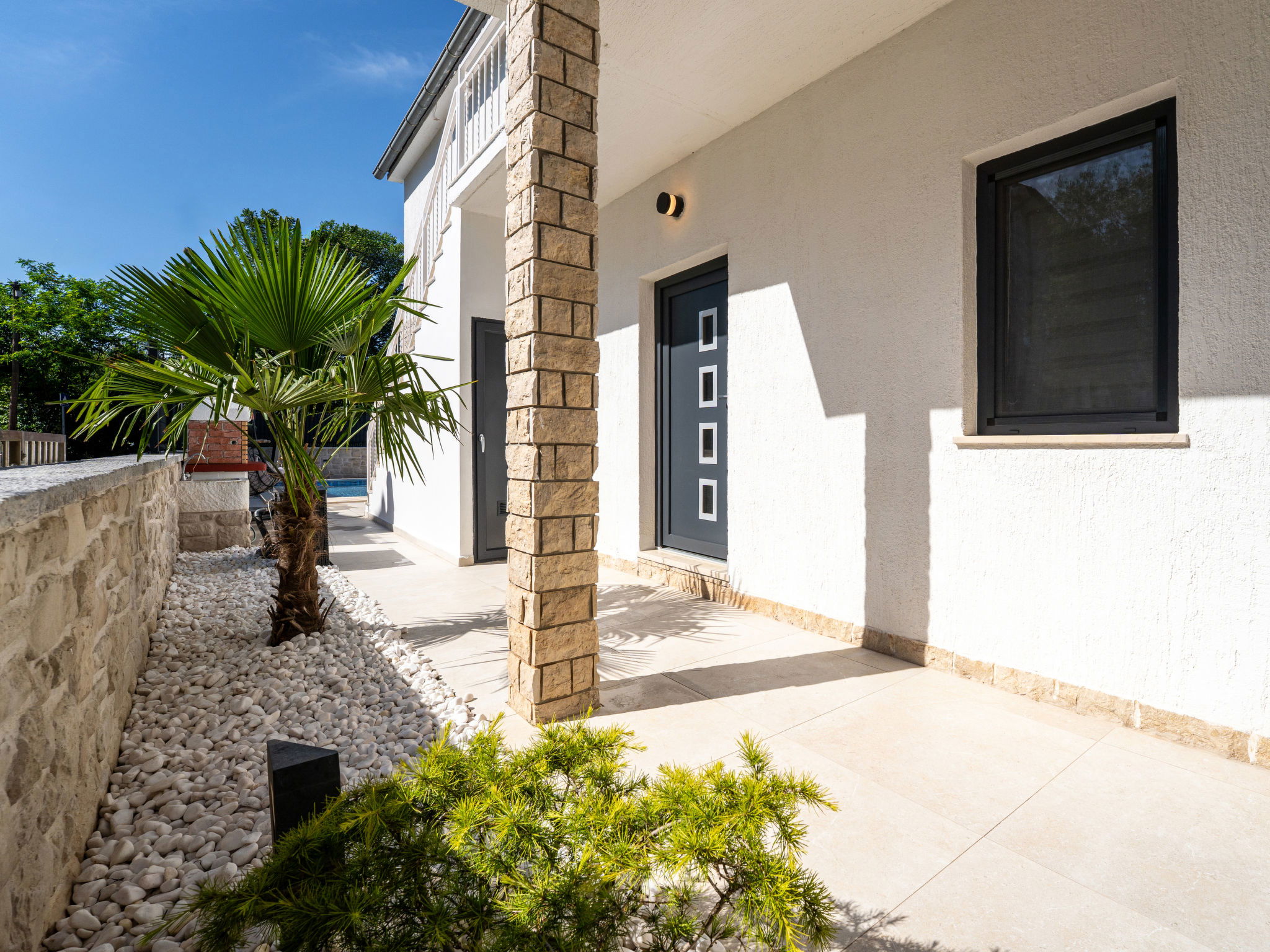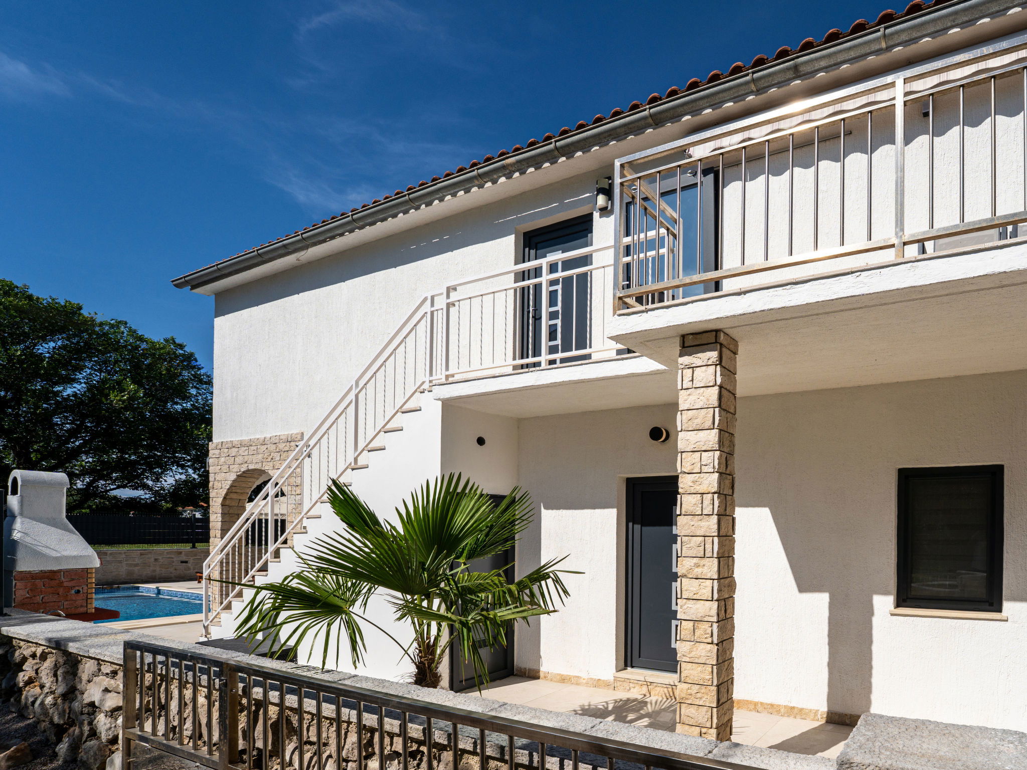 Maison jumelée "Domagoj". Dans le hameau de Sveti Anton, à 2.5 km du centre de Malinska, à 11 km du centre de Krk, à 20.5 km du centre de Vrbnik, à 1.8 km de la mer. A usage privé: terrain 200 m2 (clôturé) avec arbres, piscine chauffée (7 x 3 m, 24 m2, profondeur 120 - 150 cm, disponibilité saisonnière: 15.Mar. - 15.Nov.) avec systeme d'électolyseur au sel. Douche extérieure, entretien de la piscine par le propriétaire/jardinier. Infrastructures de la Maison: lave-linge (en commun, en sus). Place de parking (pour 2 voitures) sur le terrain. Magasins 1 km, arrêt de bus 350 m, plage de graviers 1.8 km. Veuillez noter: le propriétaire habite dans la même maison. Aéroport 17 km de la maison.