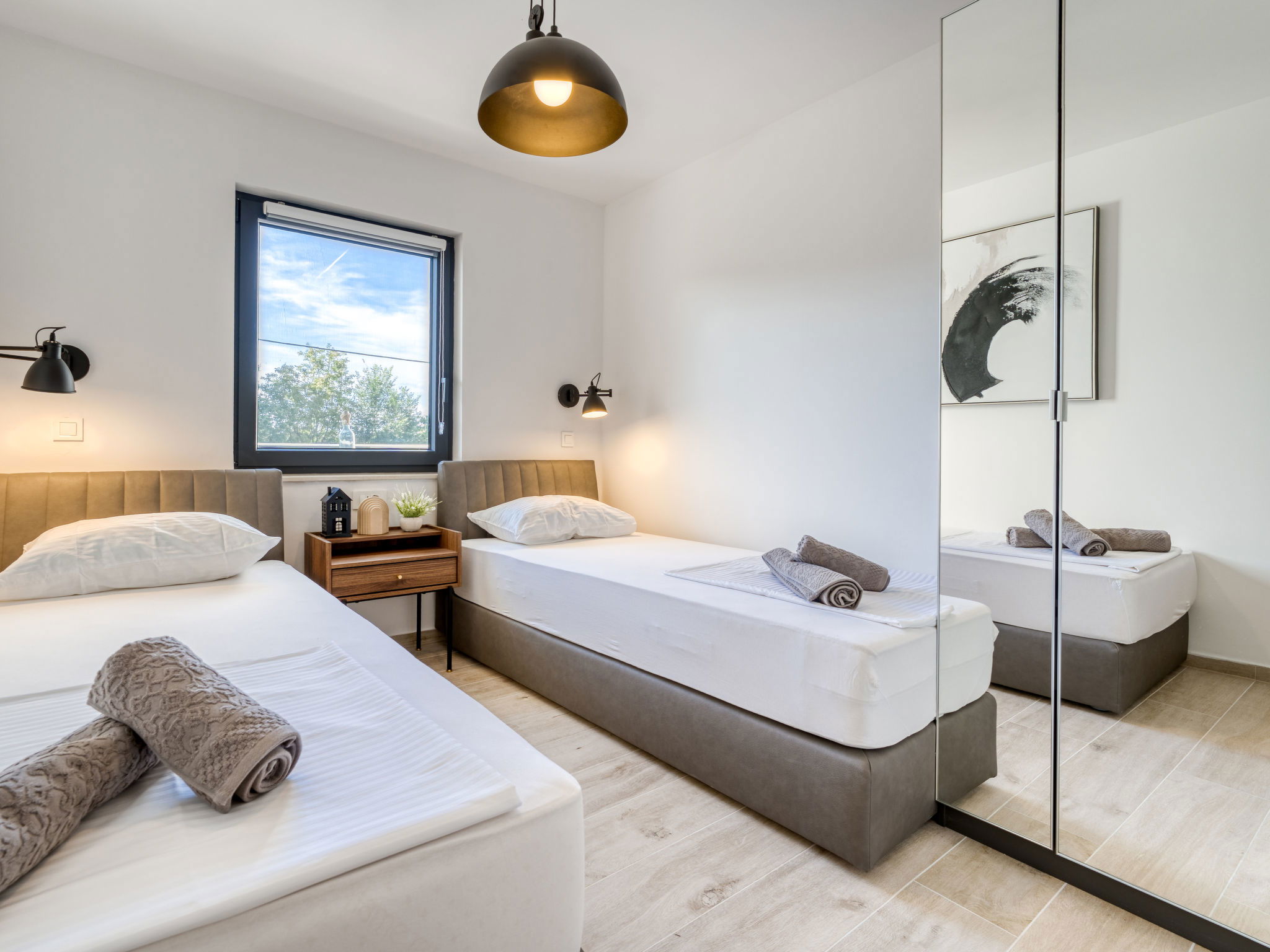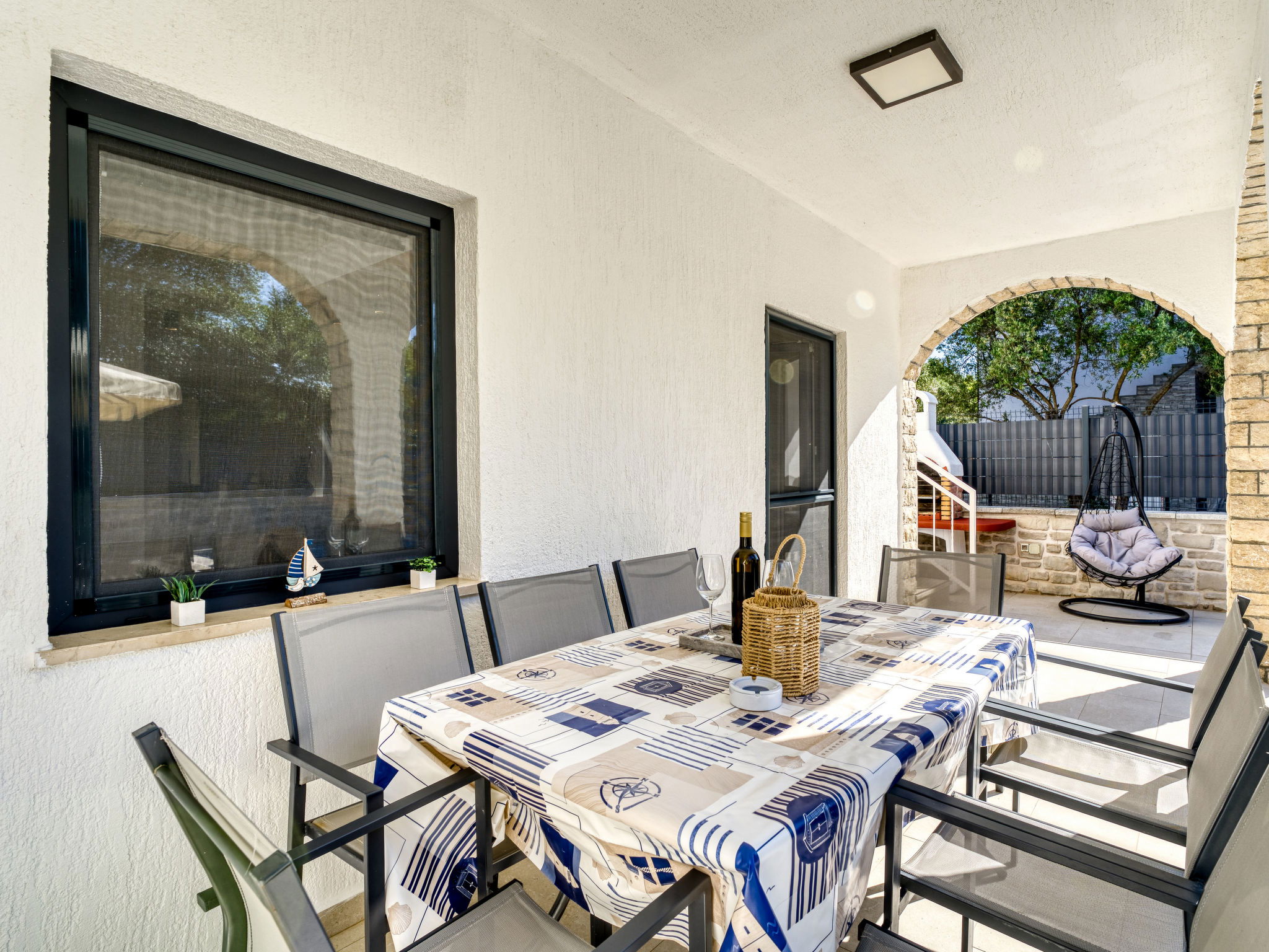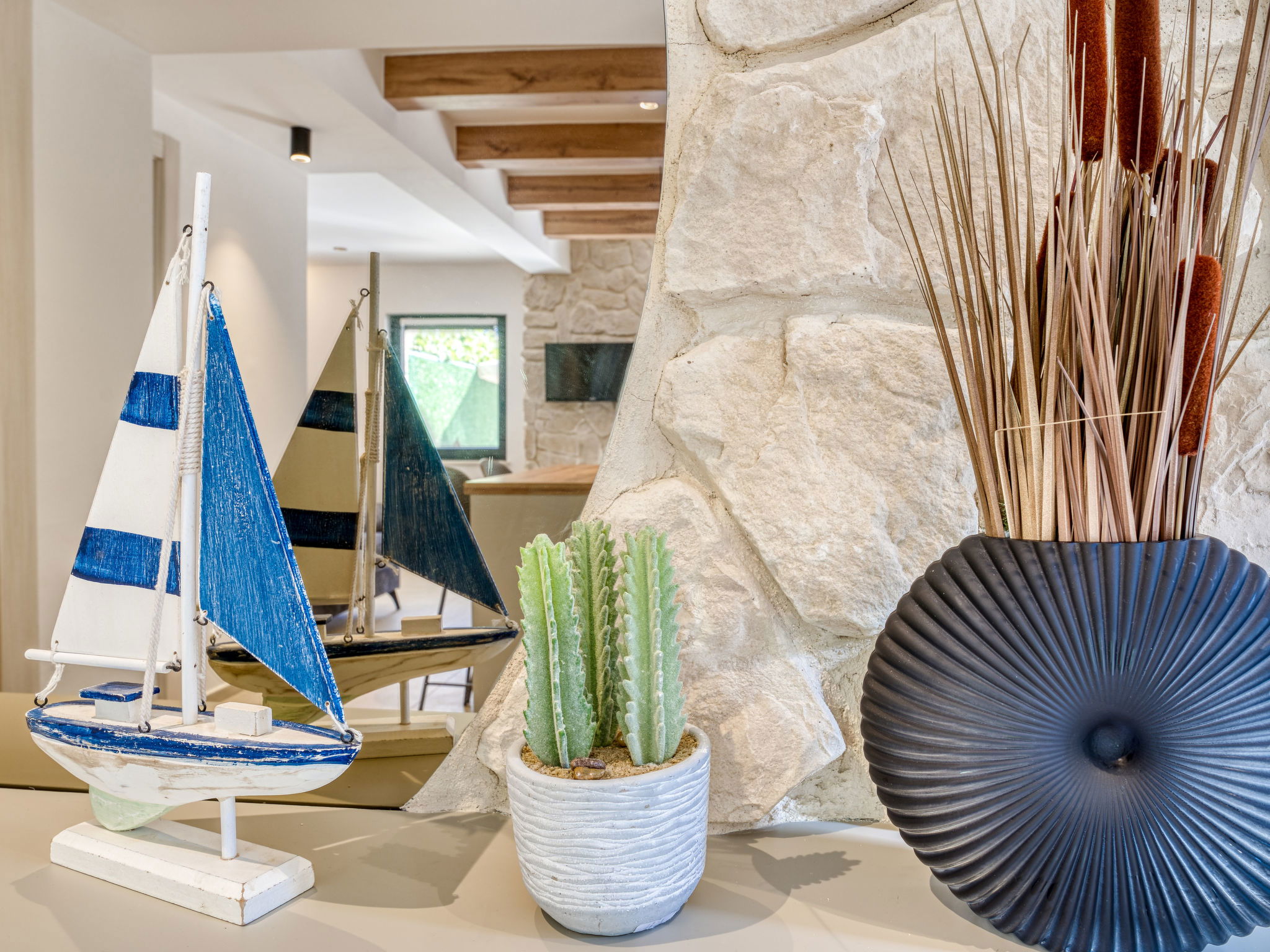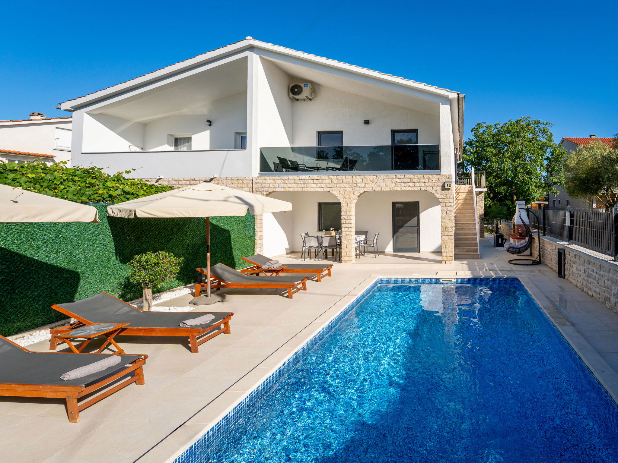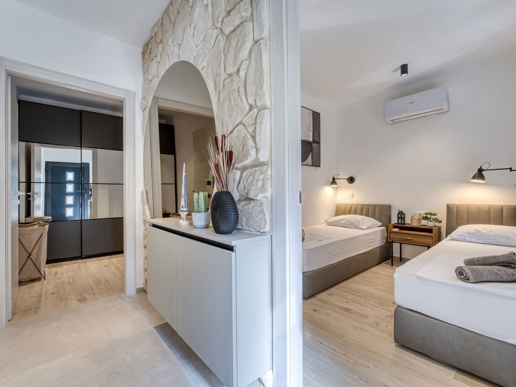 Maison jumelée "Domagoj". Dans le hameau de Sveti Anton, à 2.5 km du centre de Malinska, à 11 km du centre de Krk, à 20.5 km du centre de Vrbnik, à 1.8 km de la mer. A usage privé: terrain 200 m2 (clôturé) avec arbres, piscine chauffée (7 x 3 m, 24 m2, profondeur 120 - 150 cm, disponibilité saisonnière: 15.Mar. - 15.Nov.) avec systeme d'électolyseur au sel. Douche extérieure, entretien de la piscine par le propriétaire/jardinier. Infrastructures de la Maison: lave-linge (en commun, en sus). Place de parking (pour 2 voitures) sur le terrain. Magasins 1 km, arrêt de bus 350 m, plage de graviers 1.8 km. Veuillez noter: le propriétaire habite dans la même maison. Aéroport 17 km de la maison.