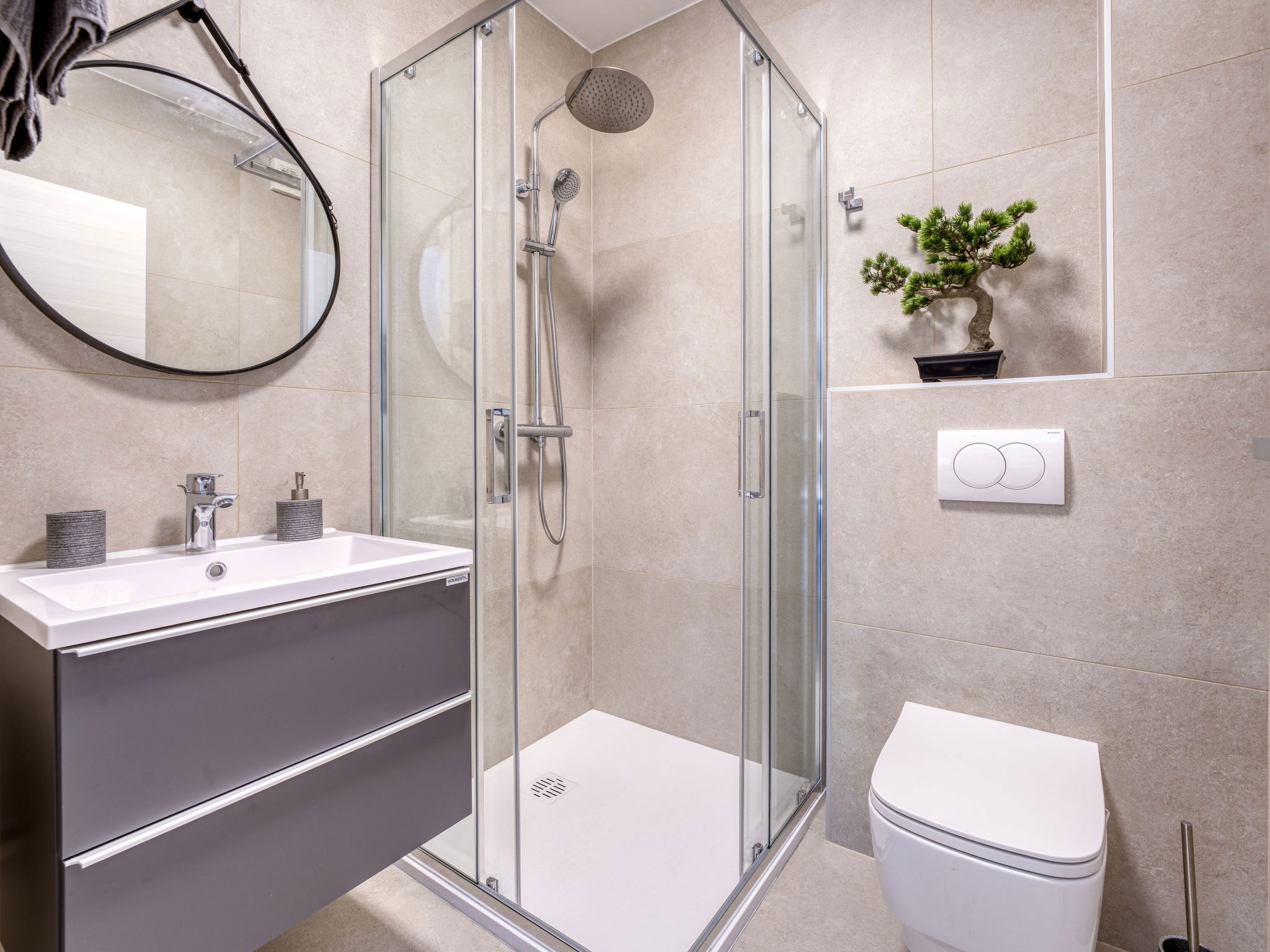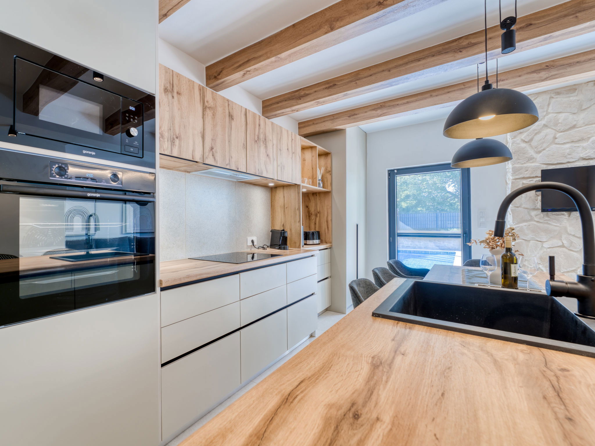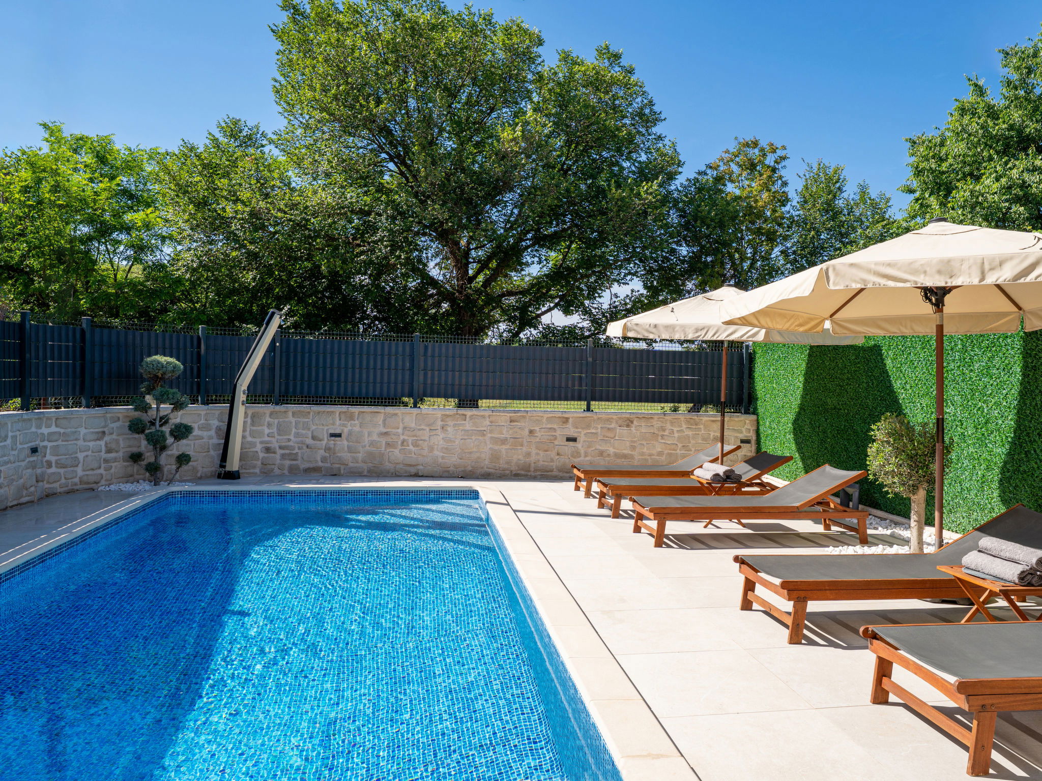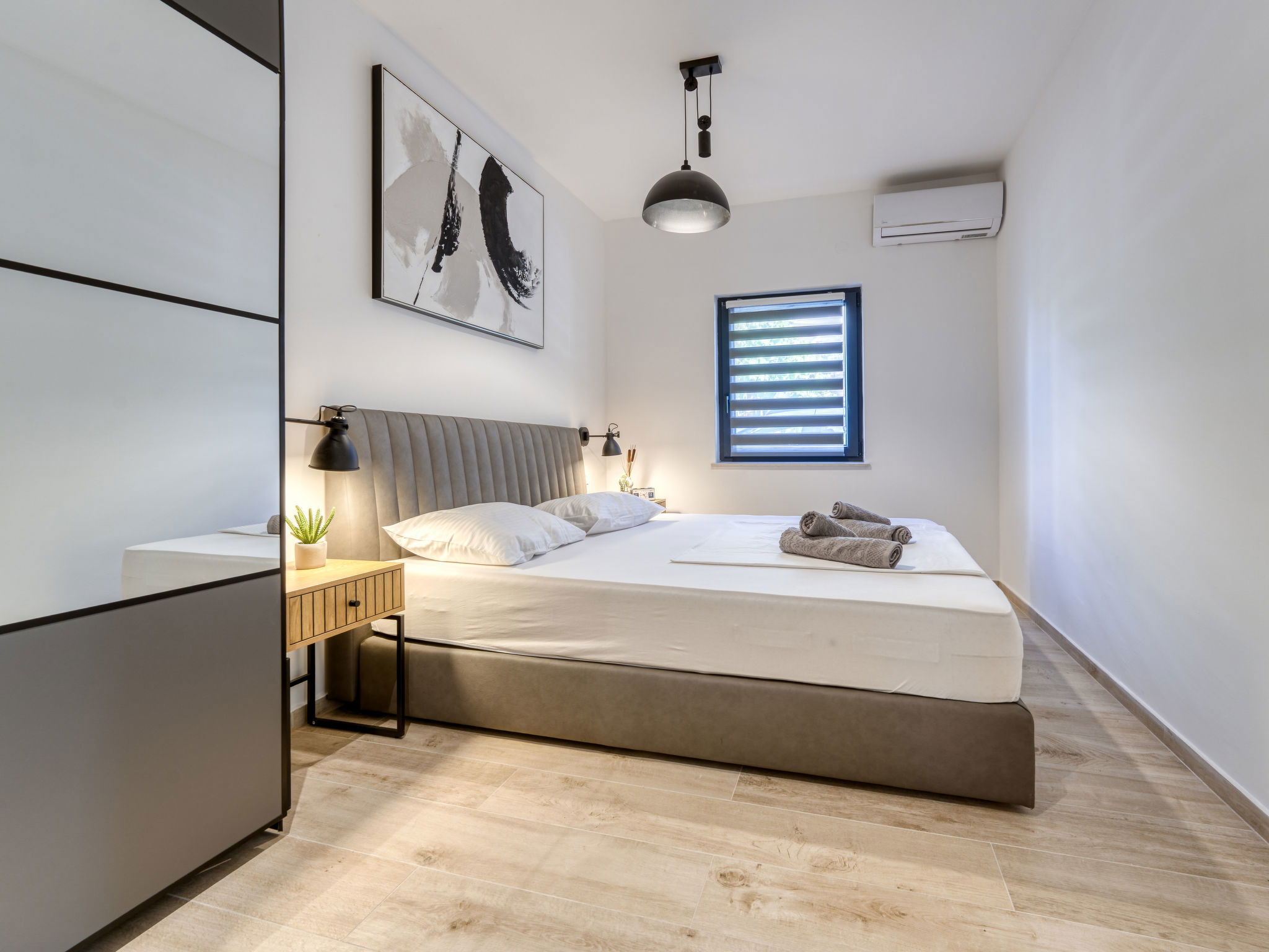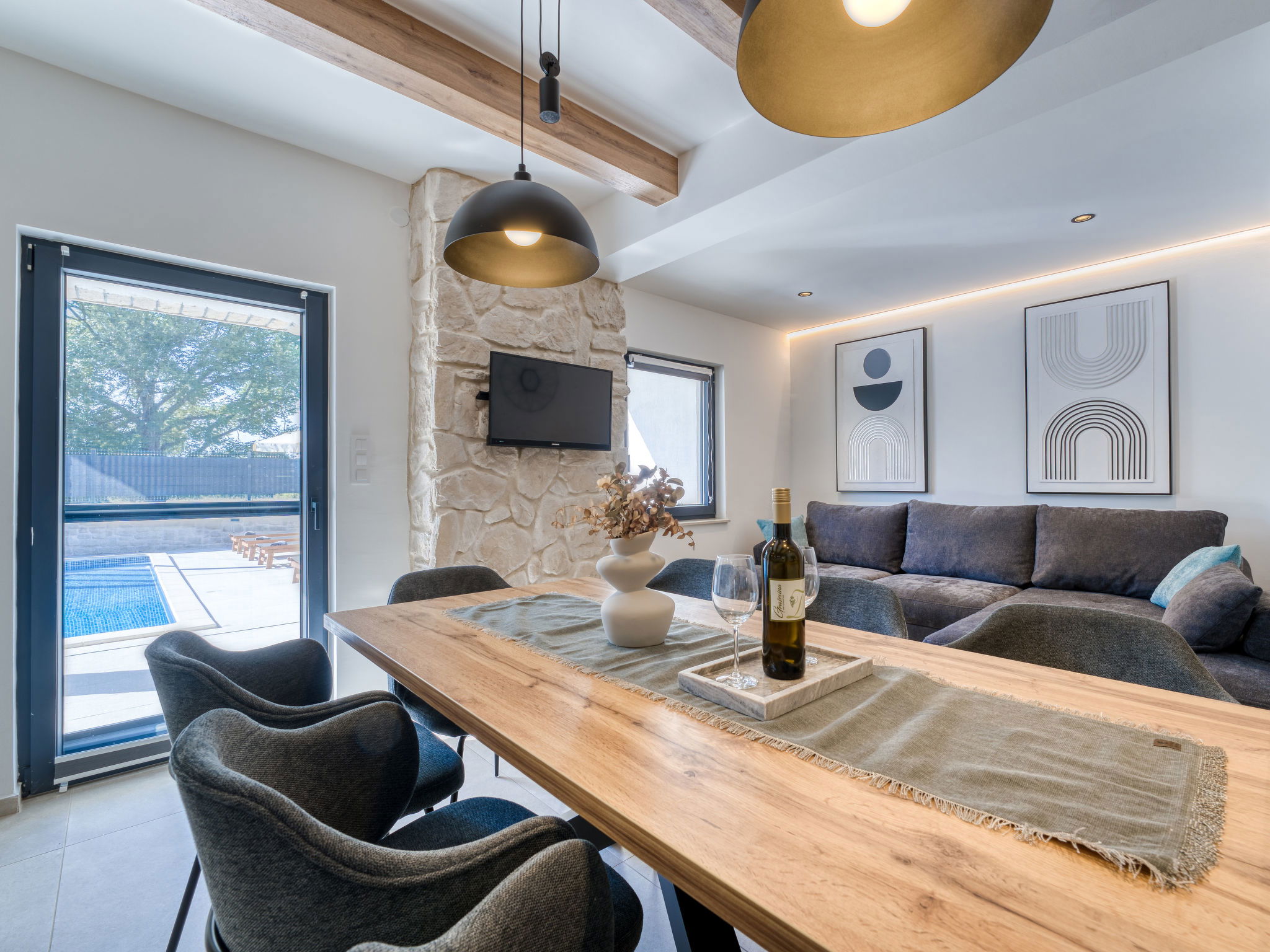 Maison jumelée "Domagoj". Dans le hameau de Sveti Anton, à 2.5 km du centre de Malinska, à 11 km du centre de Krk, à 20.5 km du centre de Vrbnik, à 1.8 km de la mer. A usage privé: terrain 200 m2 (clôturé) avec arbres, piscine chauffée (7 x 3 m, 24 m2, profondeur 120 - 150 cm, disponibilité saisonnière: 15.Mar. - 15.Nov.) avec systeme d'électolyseur au sel. Douche extérieure, entretien de la piscine par le propriétaire/jardinier. Infrastructures de la Maison: lave-linge (en commun, en sus). Place de parking (pour 2 voitures) sur le terrain. Magasins 1 km, arrêt de bus 350 m, plage de graviers 1.8 km. Veuillez noter: le propriétaire habite dans la même maison. Aéroport 17 km de la maison.