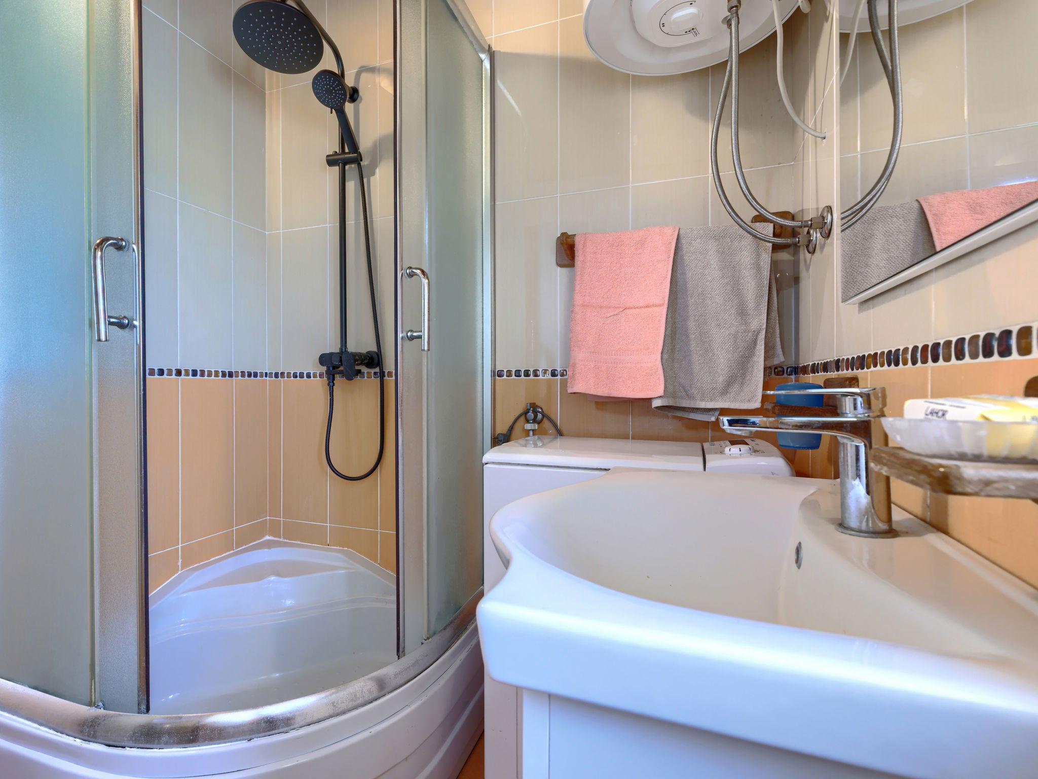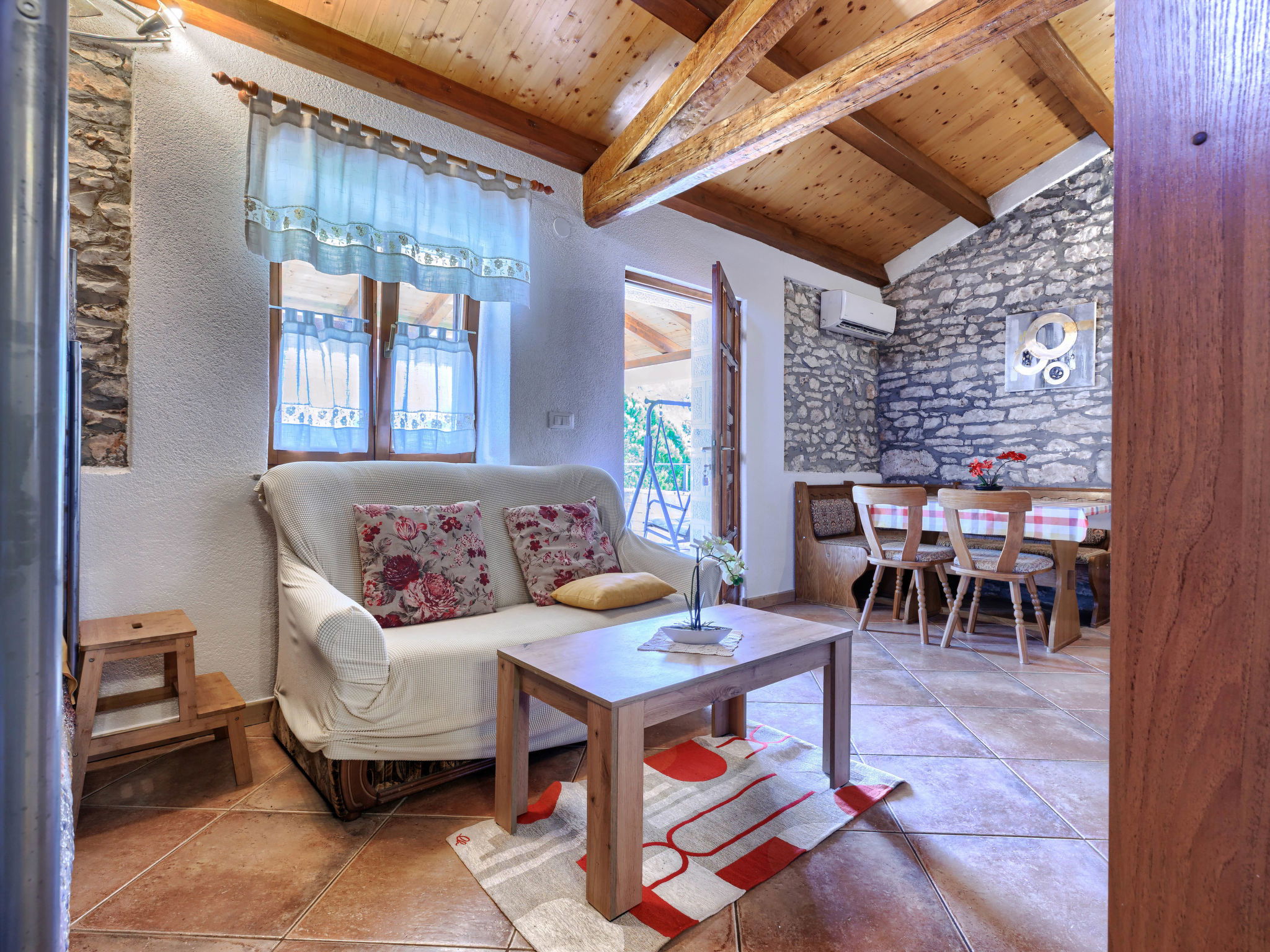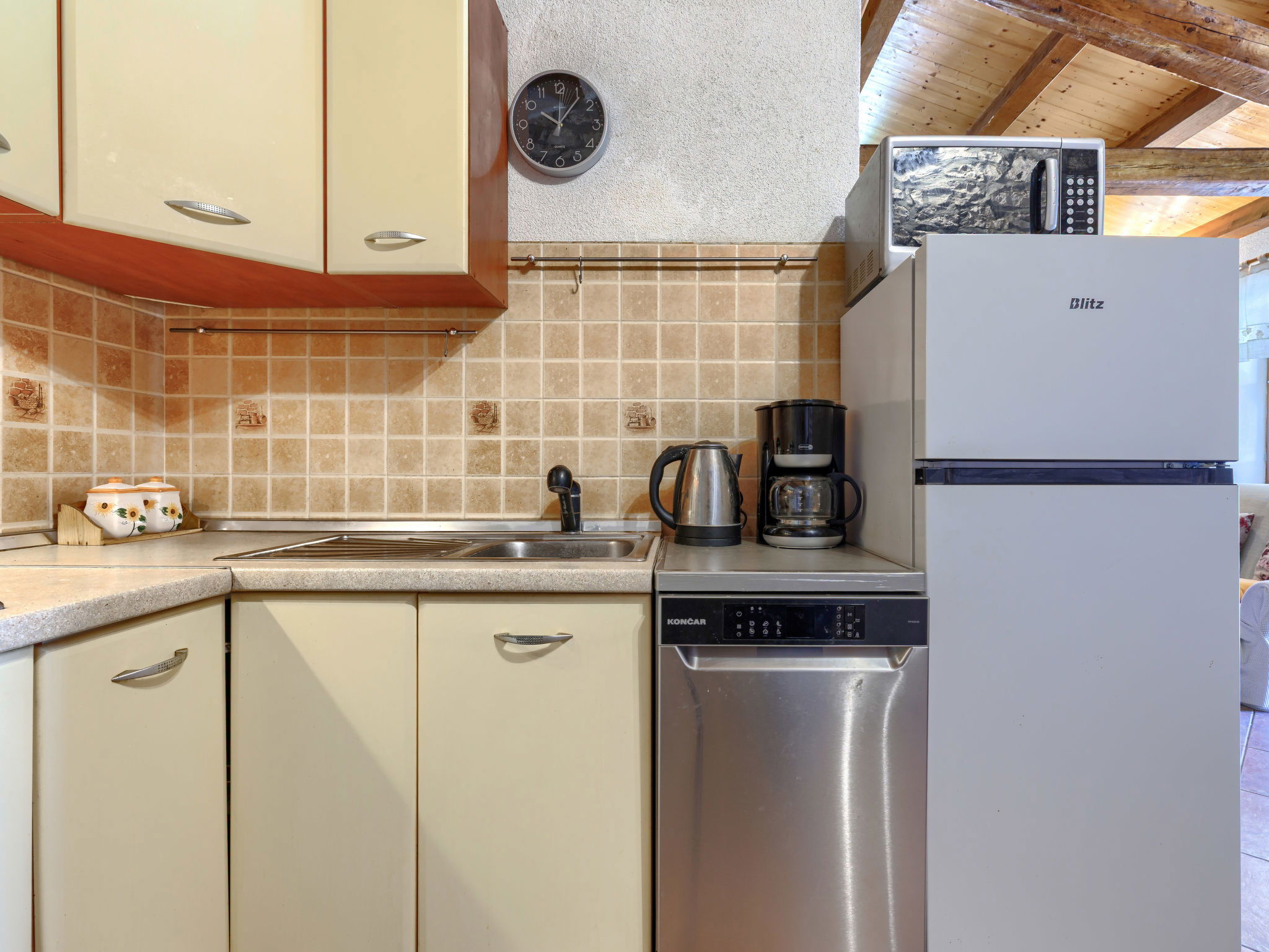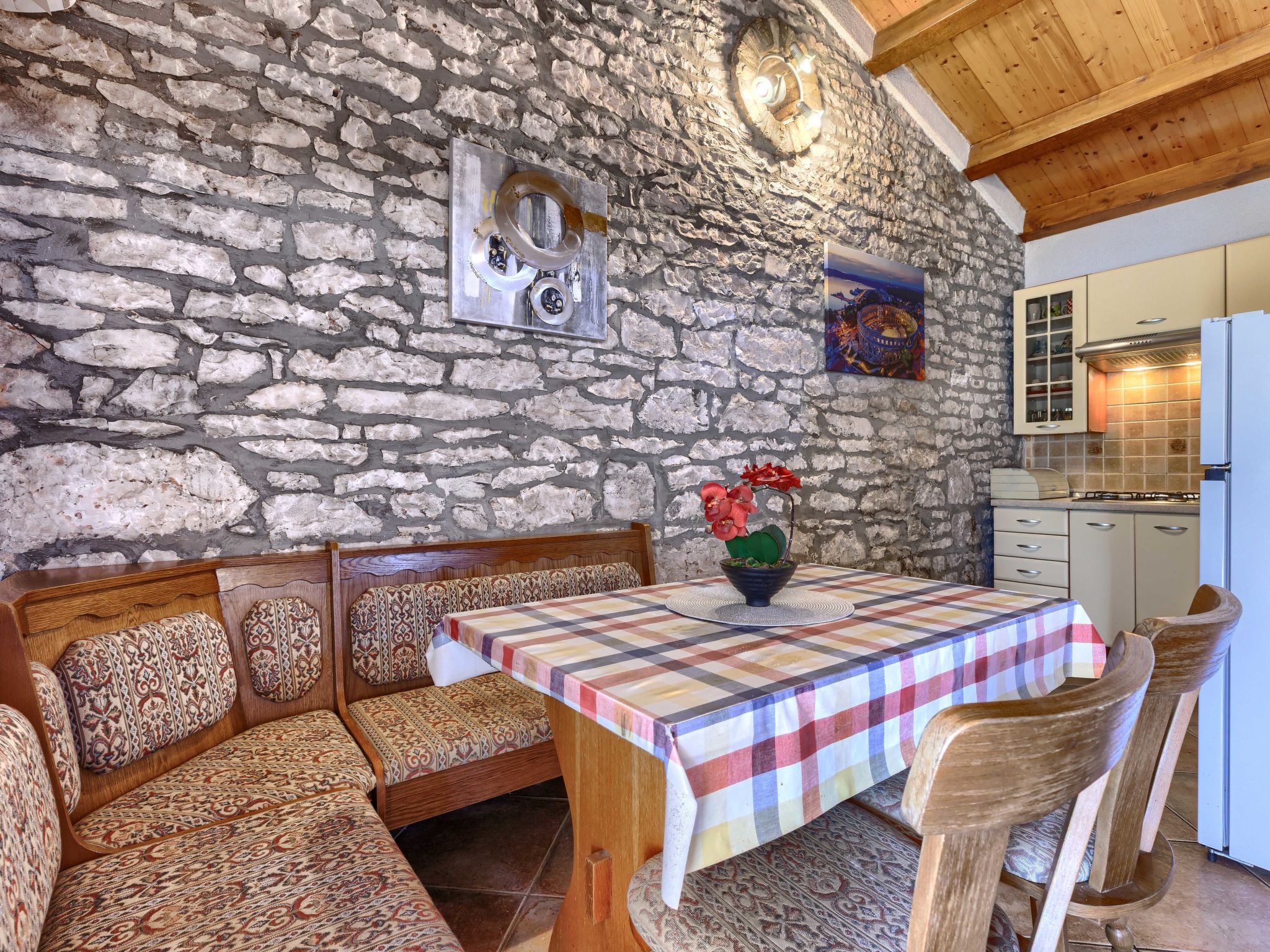 "Pinezici", maison mitoyenne 2 pièces 48 m2 sur 2 niveaux. 1 chambre avec 1 grand-lit (180 cm, longueur 200 cm). Salle à manger. Sortie sur la véranda. À l'étage supérieur: (escalier en colimaçon) séjour/chambre à coucher avec 1 x 2 lits superposés, table pour les repas, TV (satellite) et air-conditionné. Cuisine ouverte (1 plaque de cuisson, 3 feux, grille-pain, bouilloire électrique, micro-ondes, congélateur, gril, cafetière électrique). Douche/WC. Pas de chauffage. Terrasse 15 m2, couverte. Meubles de terrasse, barbecue. A disposition: Internet (Connexion WIFI, gratuit). Veuillez noter: maison non-fumeur. Maximum 1 animal/ chien autorisé. Véranda (18 m2).