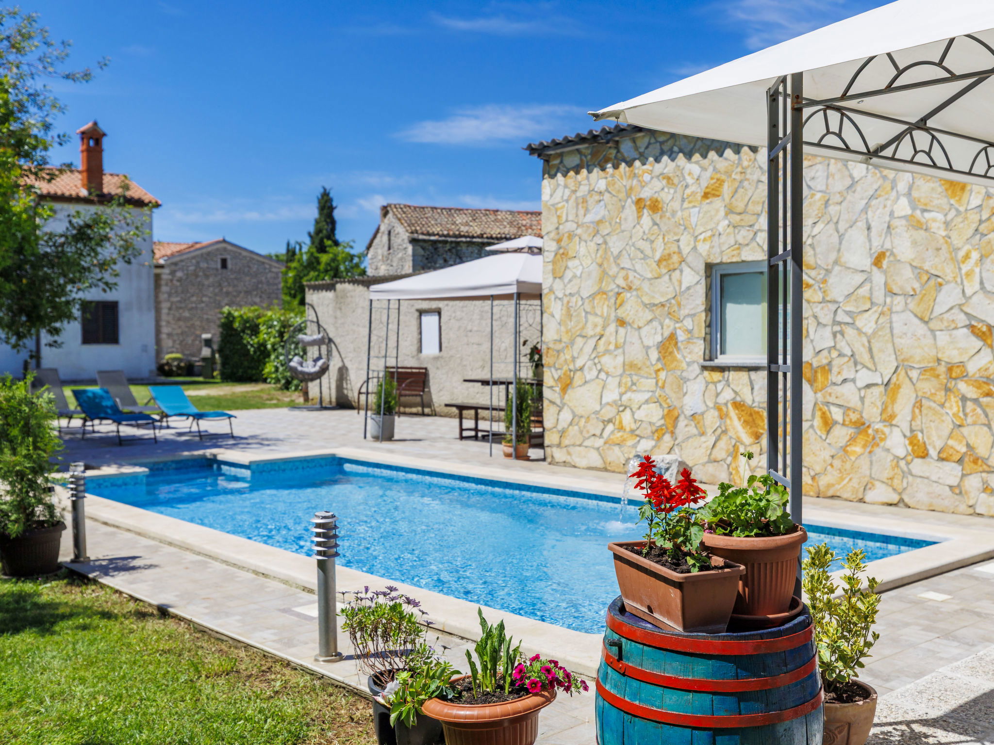 Maison mitoyenne "Pinezici", de 2 étages. Dans le hameau de Pinezići, à 2 km du centre de Marčana, à 12 km du centre de Pula, à 11 km du centre de Duga Uvala, à 11 km de la mer. En commun: terrain 2'000 m2 avec pelouse et arbres, piscine (6 x 4 m, profondeur 120 cm, disponibilité saisonnière: 20.Mai. - 30.Sep.) avec marches intérieures. Terrasse, meubles de jardin. Infrastructures de la Maison: accès internet, trampoline, lave-linge. Place de parking (pour 2 voitures) sur le terrain. Magasins 2 km, restaurant 2 km, arrêt de bus 2 km, plage de graviers 13 km, plage de rochers 11 km. Marina 16 km.