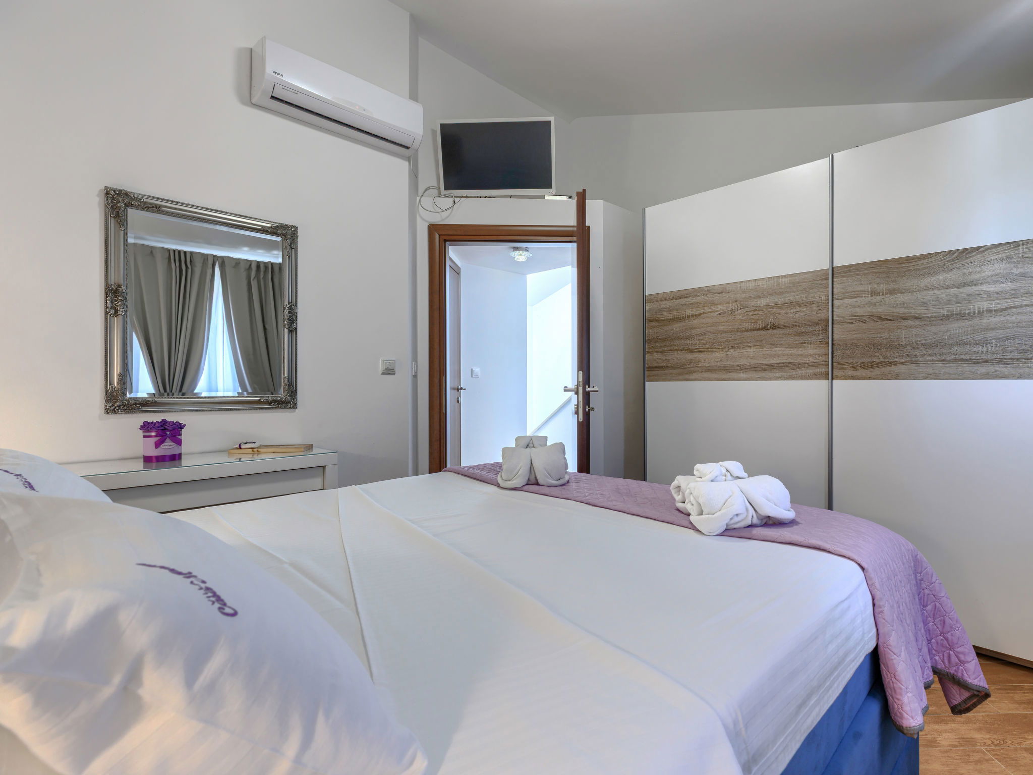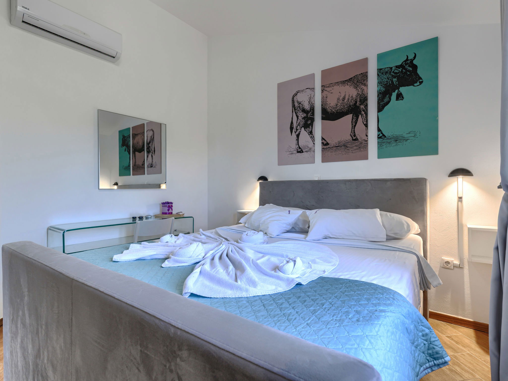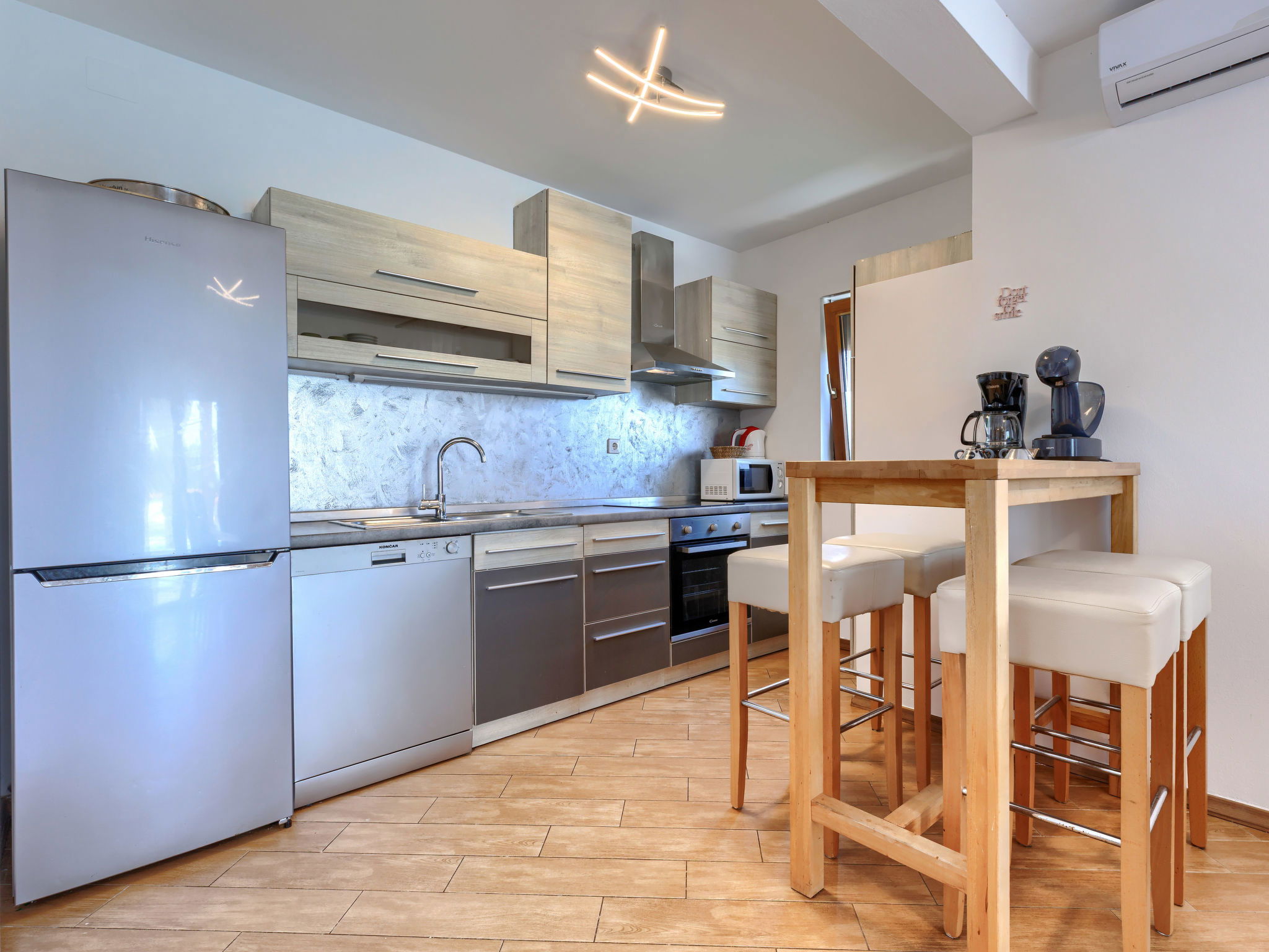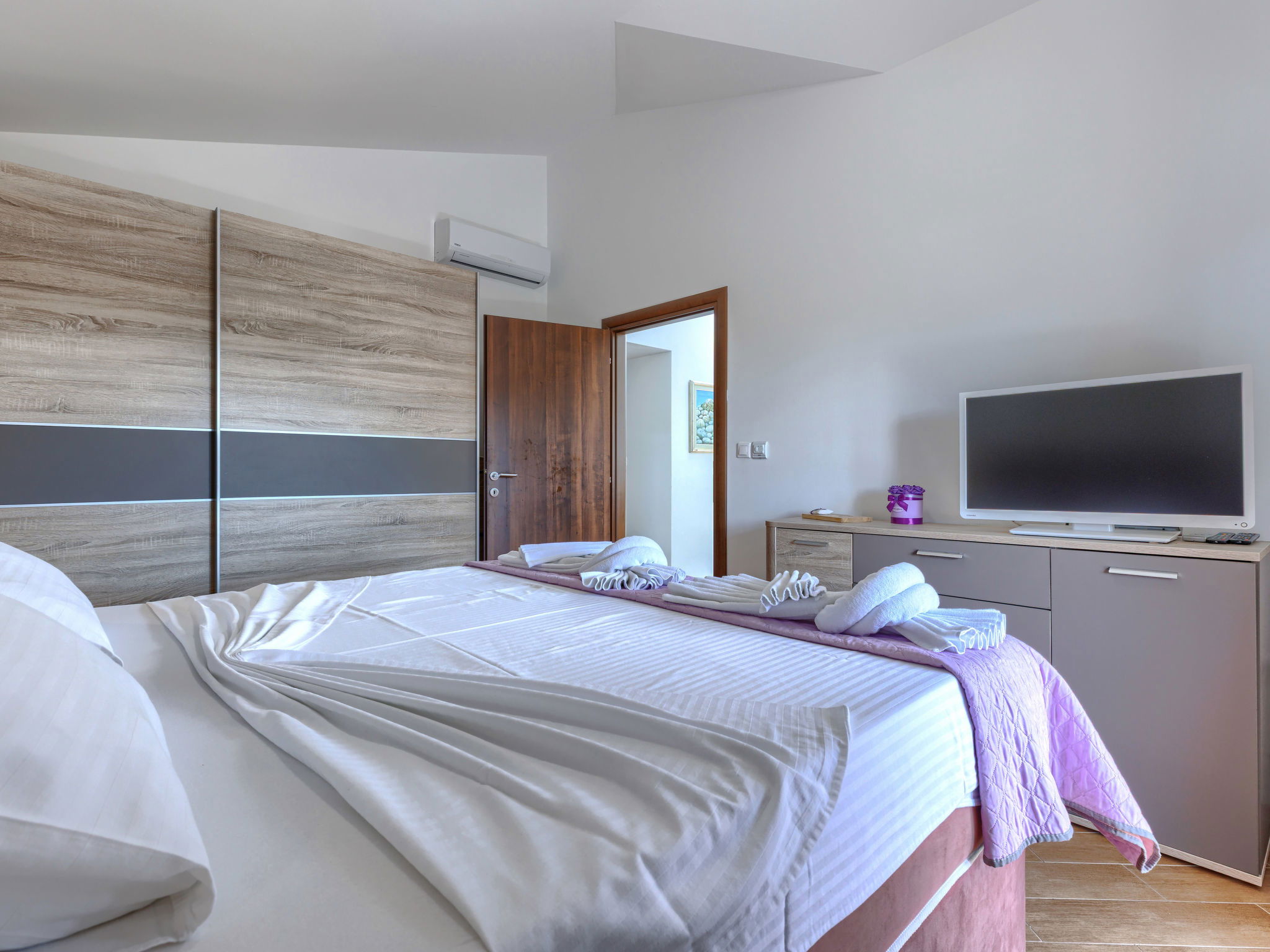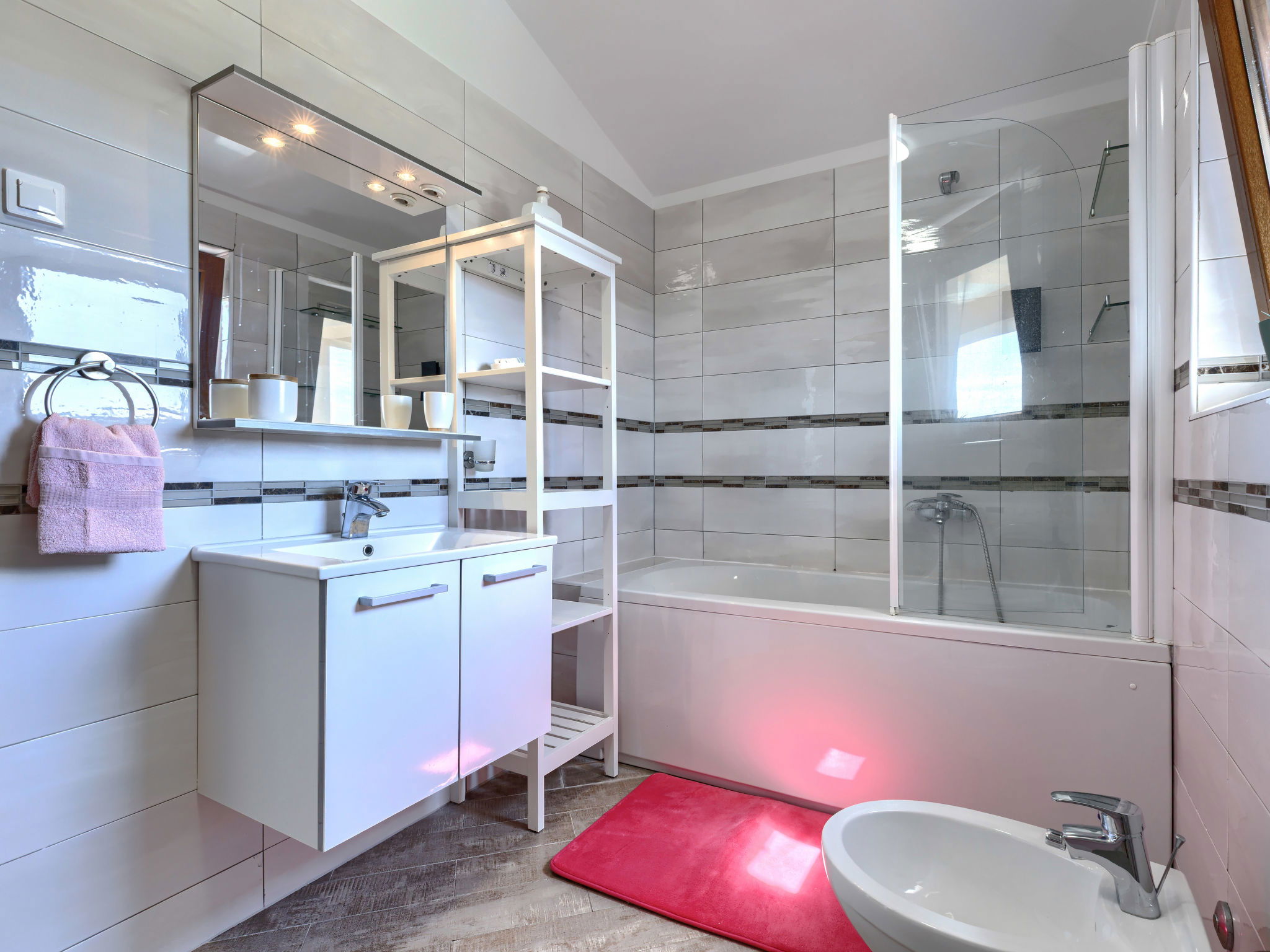 Maison 5 pièces 160 m2 sur 2 niveaux. Séjour/salle à manger avec TV (satellite) (écran plat), air-conditionné. Sortie sur la terrasse, sur la piscine. 1 chambre avec 1 grand-lit (140 cm, longueur 200 cm), TV (satellite) (écran plat), air-conditionné. Cuisine ouverte (four, lave-vaisselle, 4 plaques vitrocéramiques, grille-pain, bouilloire électrique, micro-ondes, congélateur, cafetière électrique). Douche/WC. À l'étage supérieur: 2 chambres, chaque chambre avec: 1 grand-lit (160 cm, longueur 200 cm), TV (satellite) (écran plat), air-conditionné. 1 chambre avec 1 grand-lit (160 cm, longueur 200 cm), TV (satellite) (écran plat), air-conditionné. Sortie sur la terrasse. Terrasse 5 m2, couverte. Vue sur les alentours. A disposition: lave-linge, sèche-linge, sèche-cheveux. Internet (Connexion WIFI, gratuit). Maximum 3 animaux/ chiens autorisés.