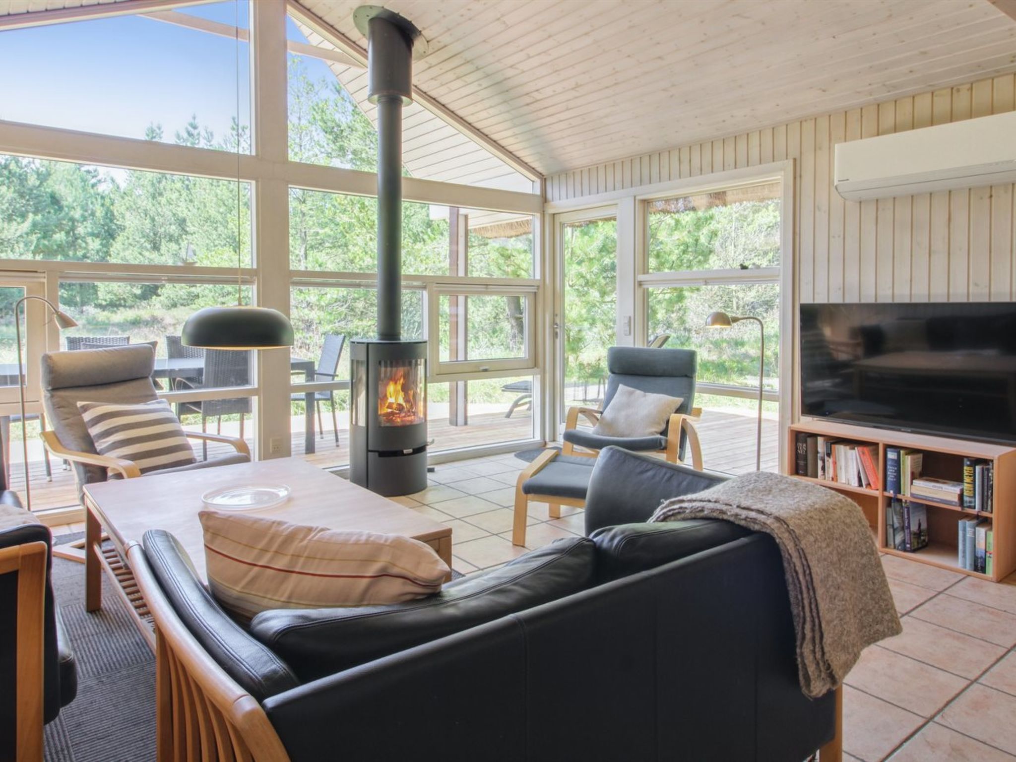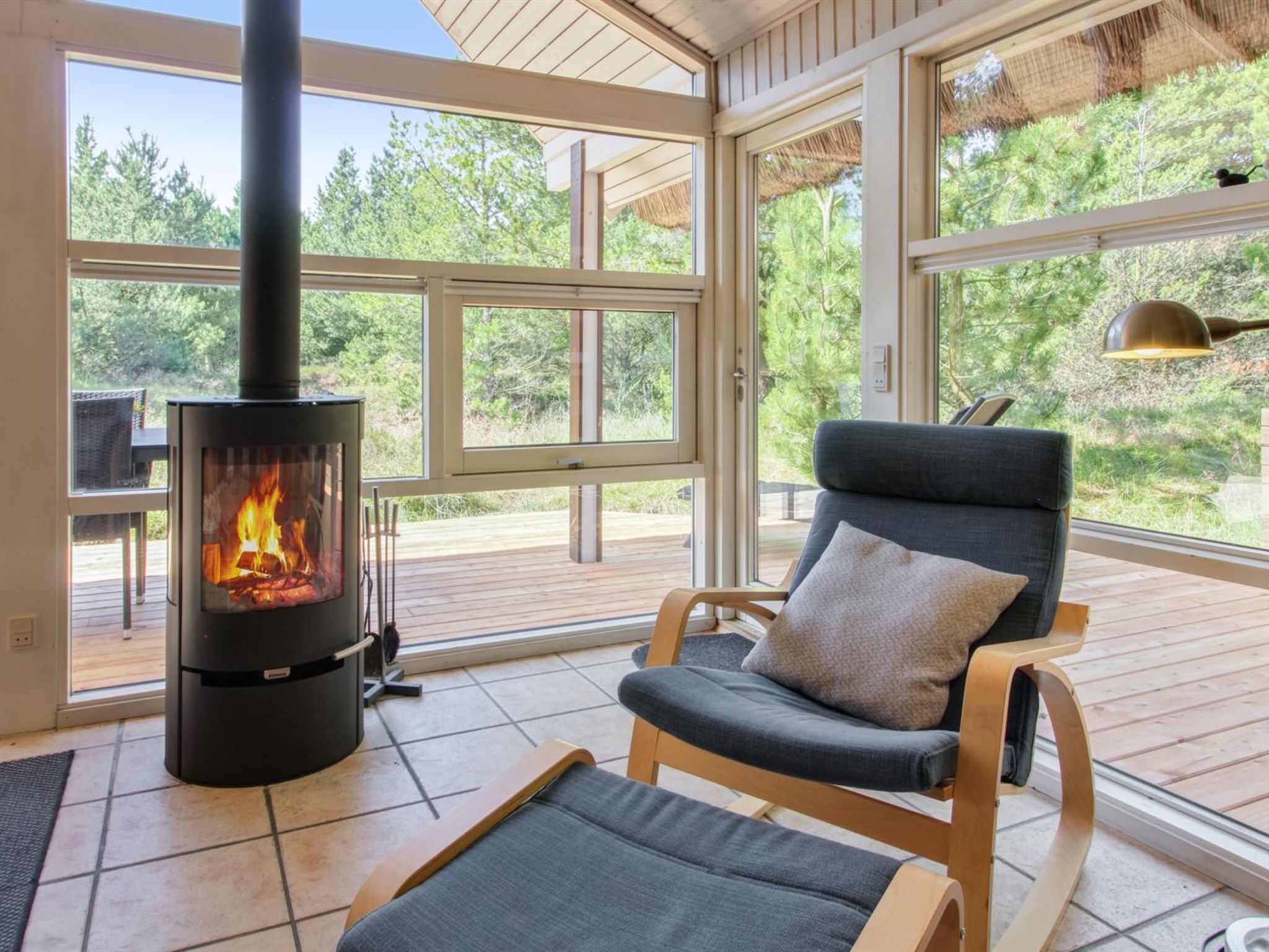 Maison individuelle, année de construction 1993. À 1.1 km de la mer. A usage privé: terrain à l'état naturel 2'600 m2. Terrasse (35 m2), espace de jeux pour les enfants (balançoire). Infrastructures de la Maison: sauna, lave-linge, sèche-linge. Place de parking près de la maison. Magasin d'alimentation 2.1 km. Terrain de golf 1.8 km. Le propriétaire n'accepte pas les groupes de jeunes.