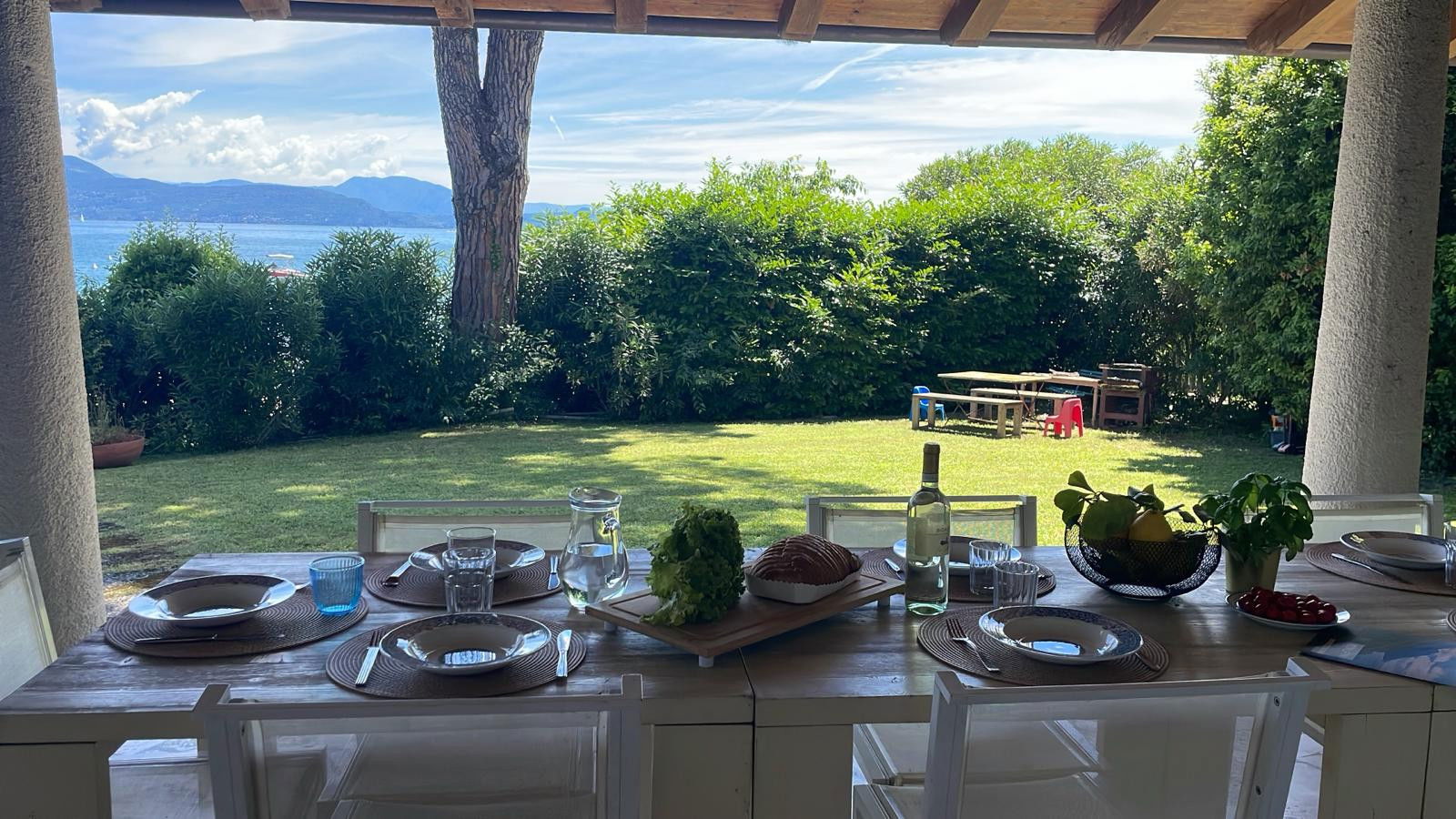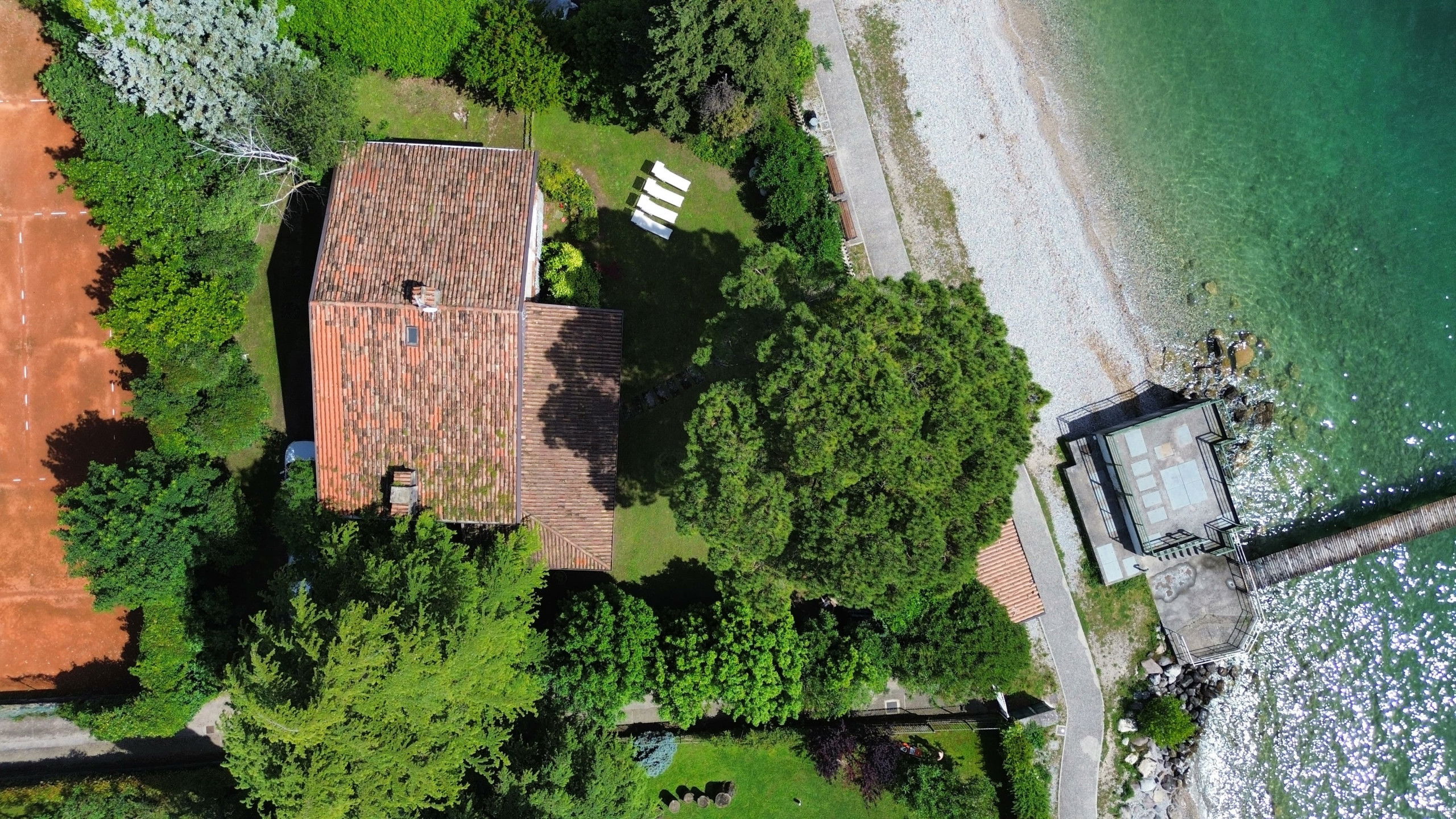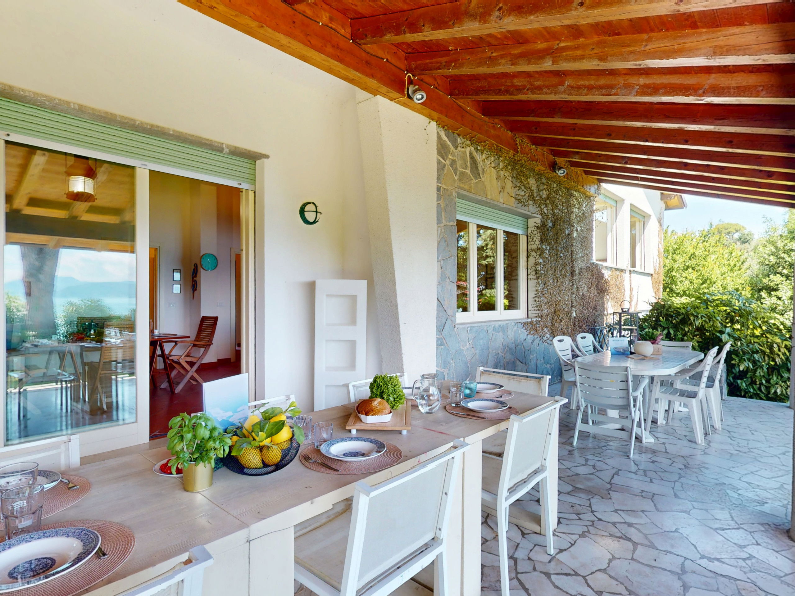 Le cœur de la maison est le grand porche extérieur : meublé, spacieux, donnant sur un jardin avec accès direct à la plage. Un lieu magique pour savourer le petit-déjeuner le matin, se détendre au coucher du soleil ou dîner sous les étoiles, immergé dans la beauté naturelle de la zone la plus prestigieuse du Lac de Garde.