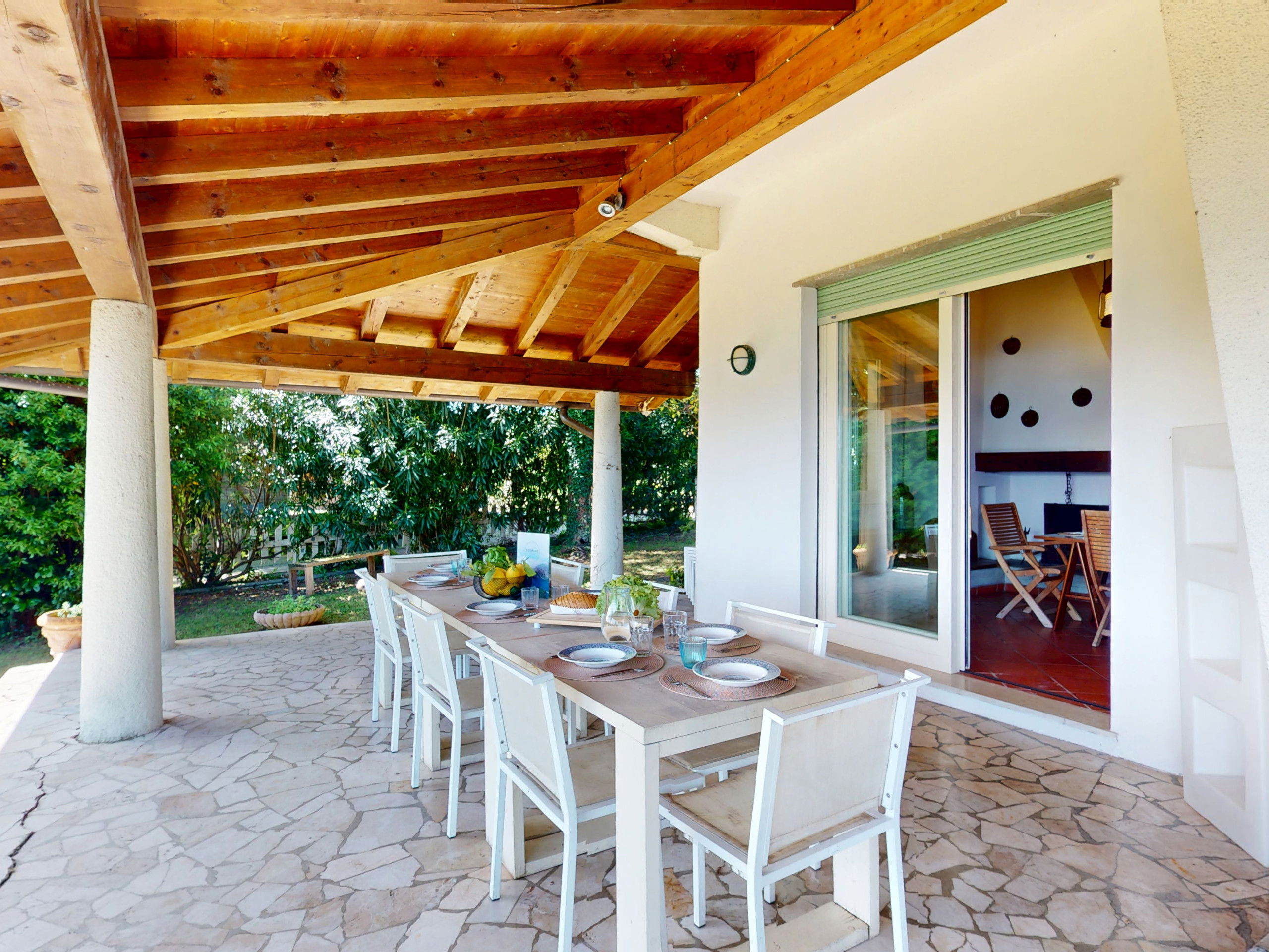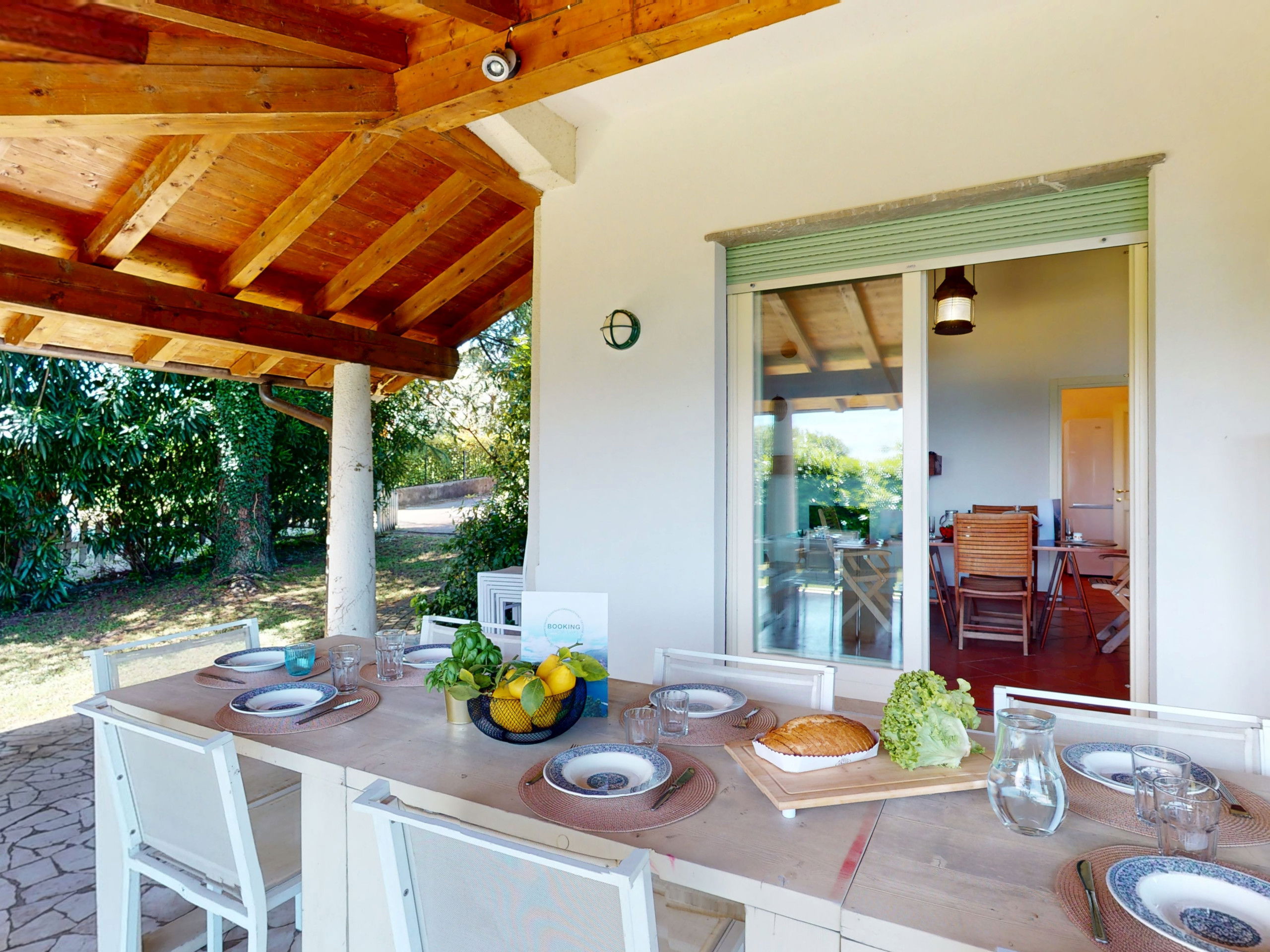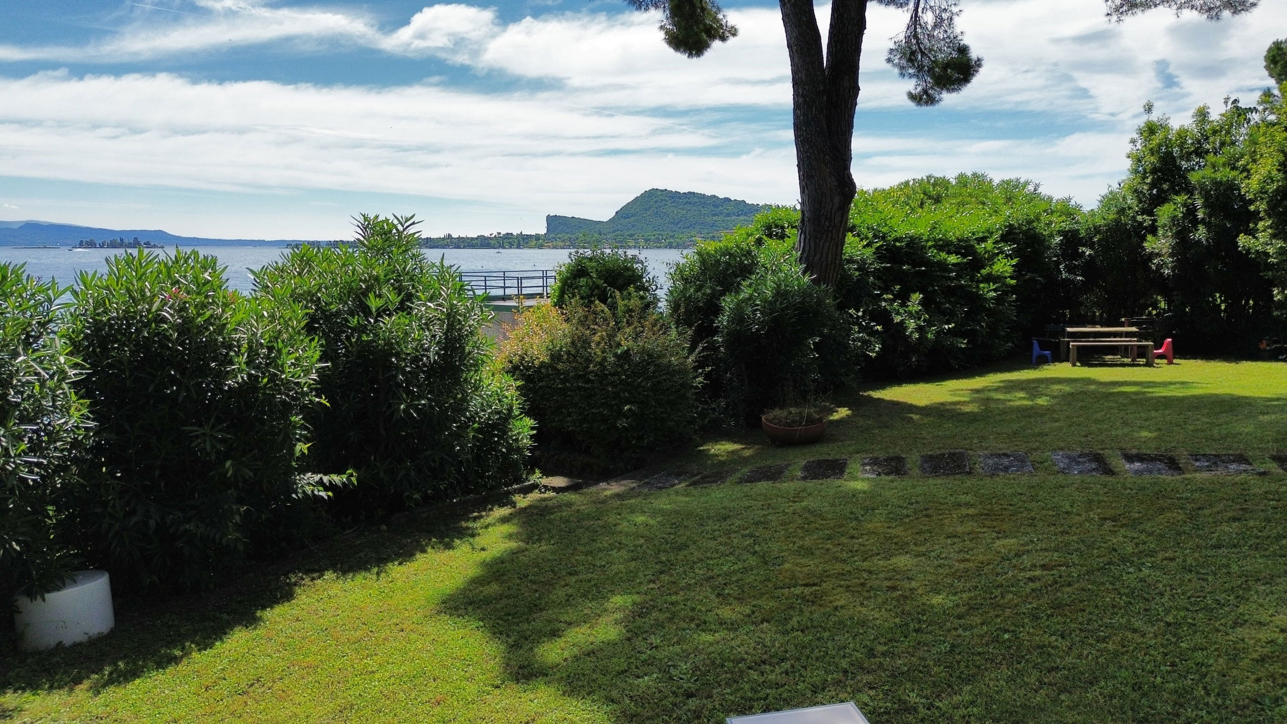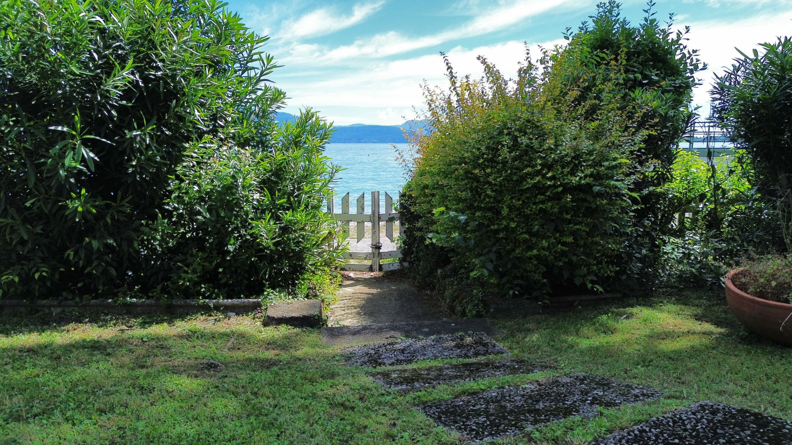 Le cœur de la maison est le grand porche extérieur : meublé, spacieux, donnant sur un jardin avec accès direct à la plage. Un lieu magique pour savourer le petit-déjeuner le matin, se détendre au coucher du soleil ou dîner sous les étoiles, immergé dans la beauté naturelle de la zone la plus prestigieuse du Lac de Garde.