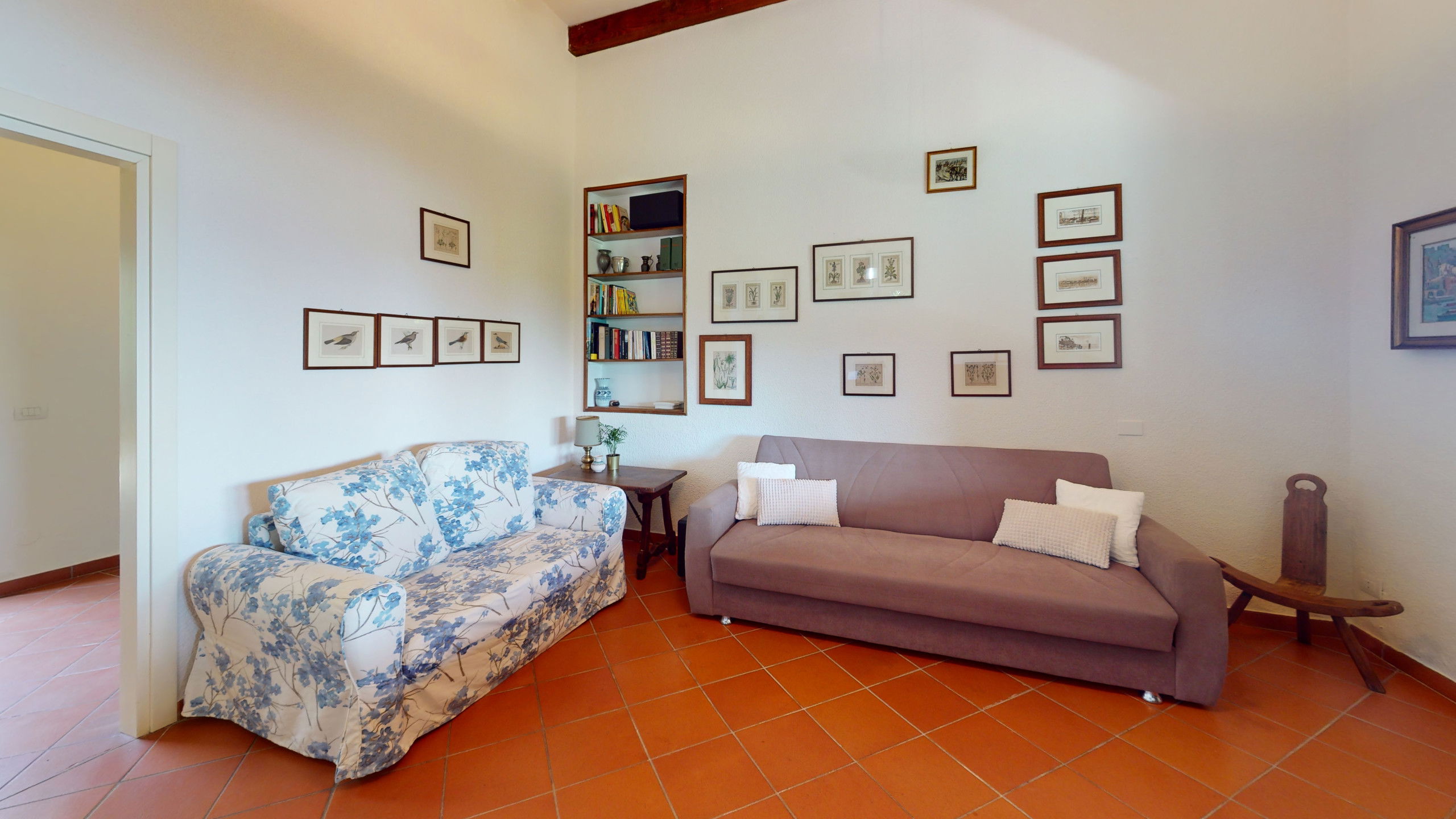 Le salon spacieux et lumineux au style italien typique accueille vos moments de détente, la grande baie vitrée offre une vue continue sur le jardin et le lac.