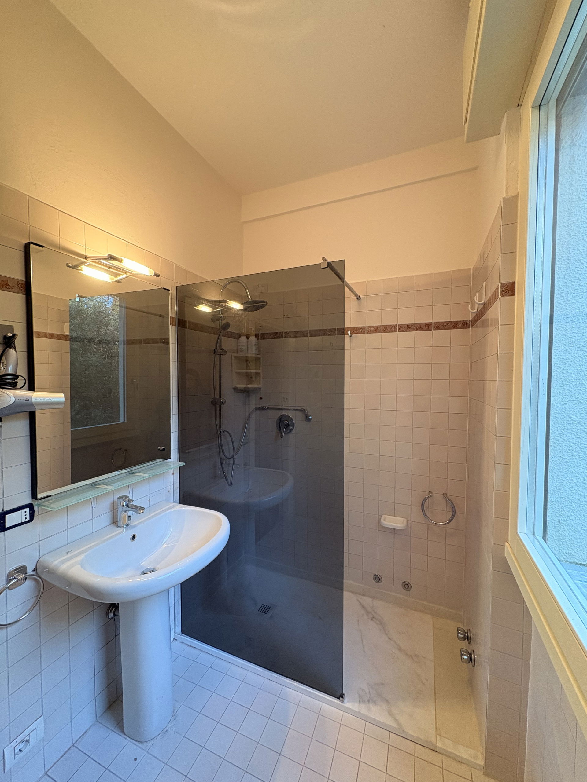Deux salles de bains avec douche, dont une au sous-sol avec machine à laver, garantissent tout l'espace et le confort dont vous avez besoin, même pour des séjours prolongés.