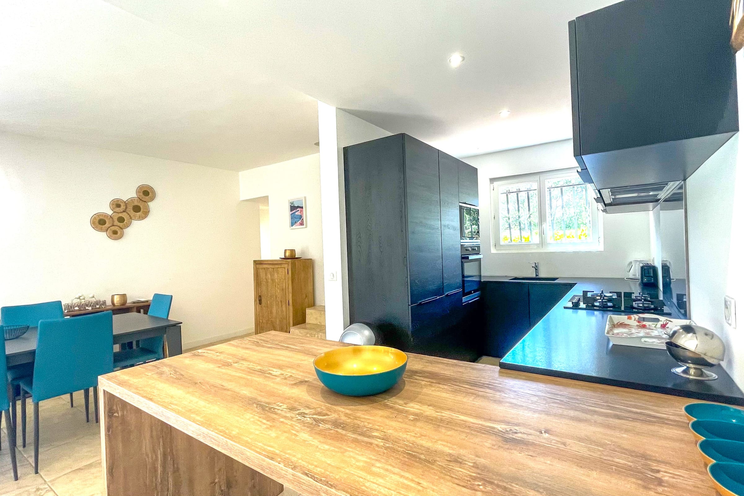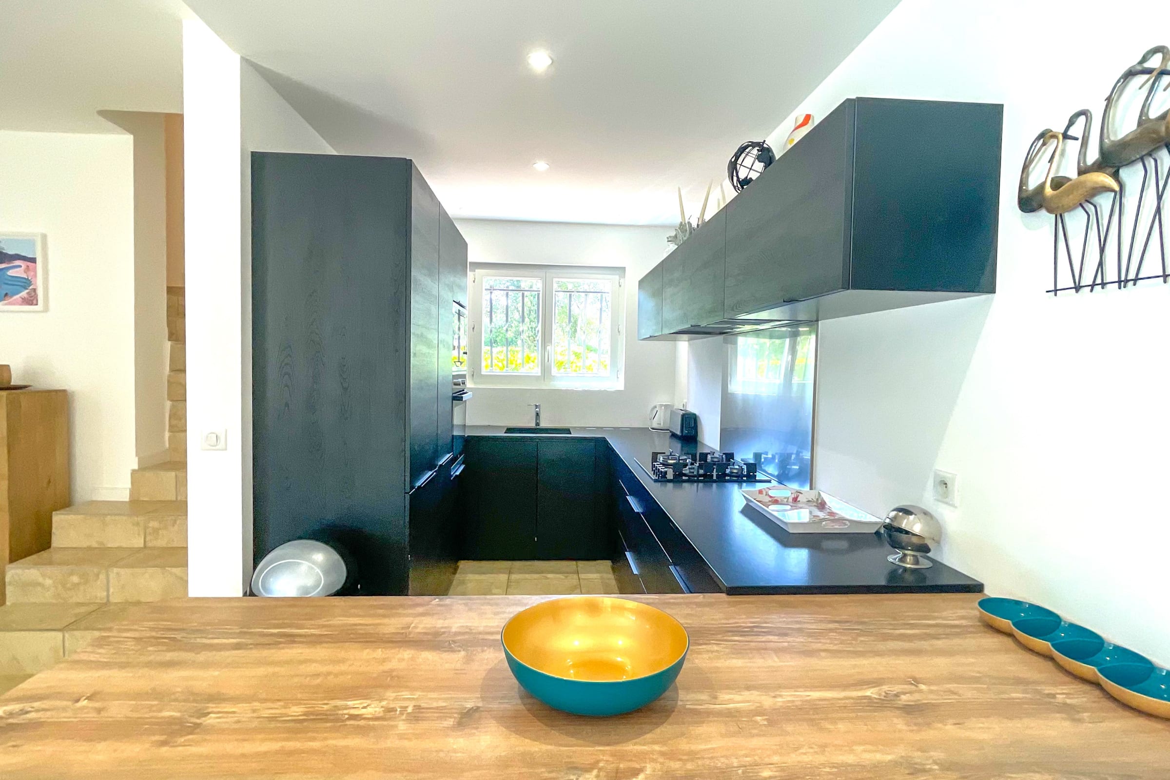 - Une cuisine tout équipée avec réfrigérateur, micro-onde, four, cafetière, lave-vaisselle