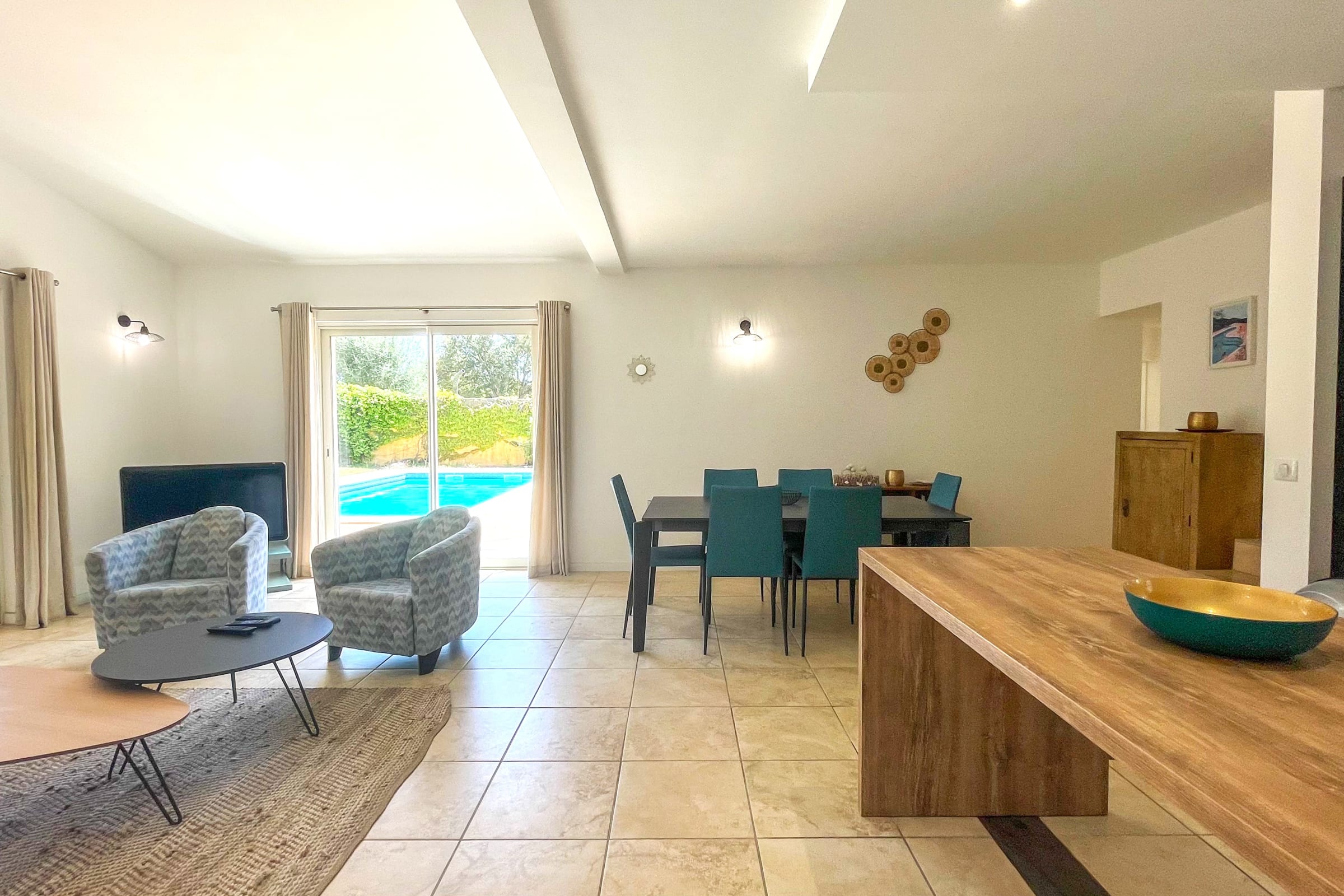 Superbe espace extérieur avec une terrasse entièrement aménagée avec un coin barbecue/plancha.