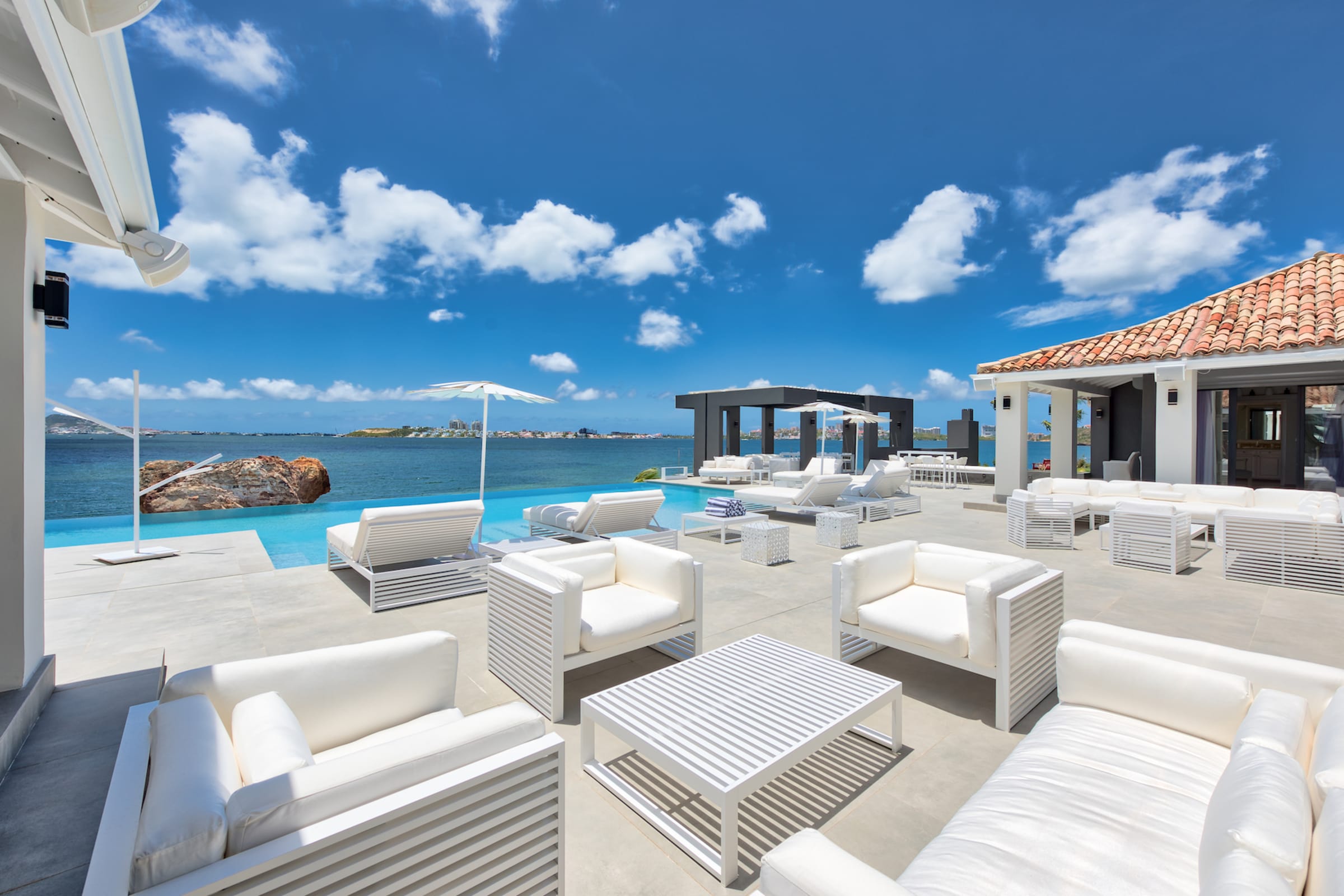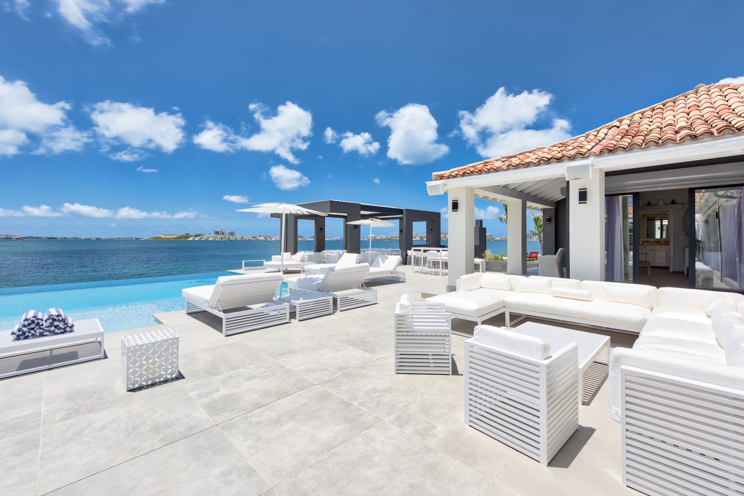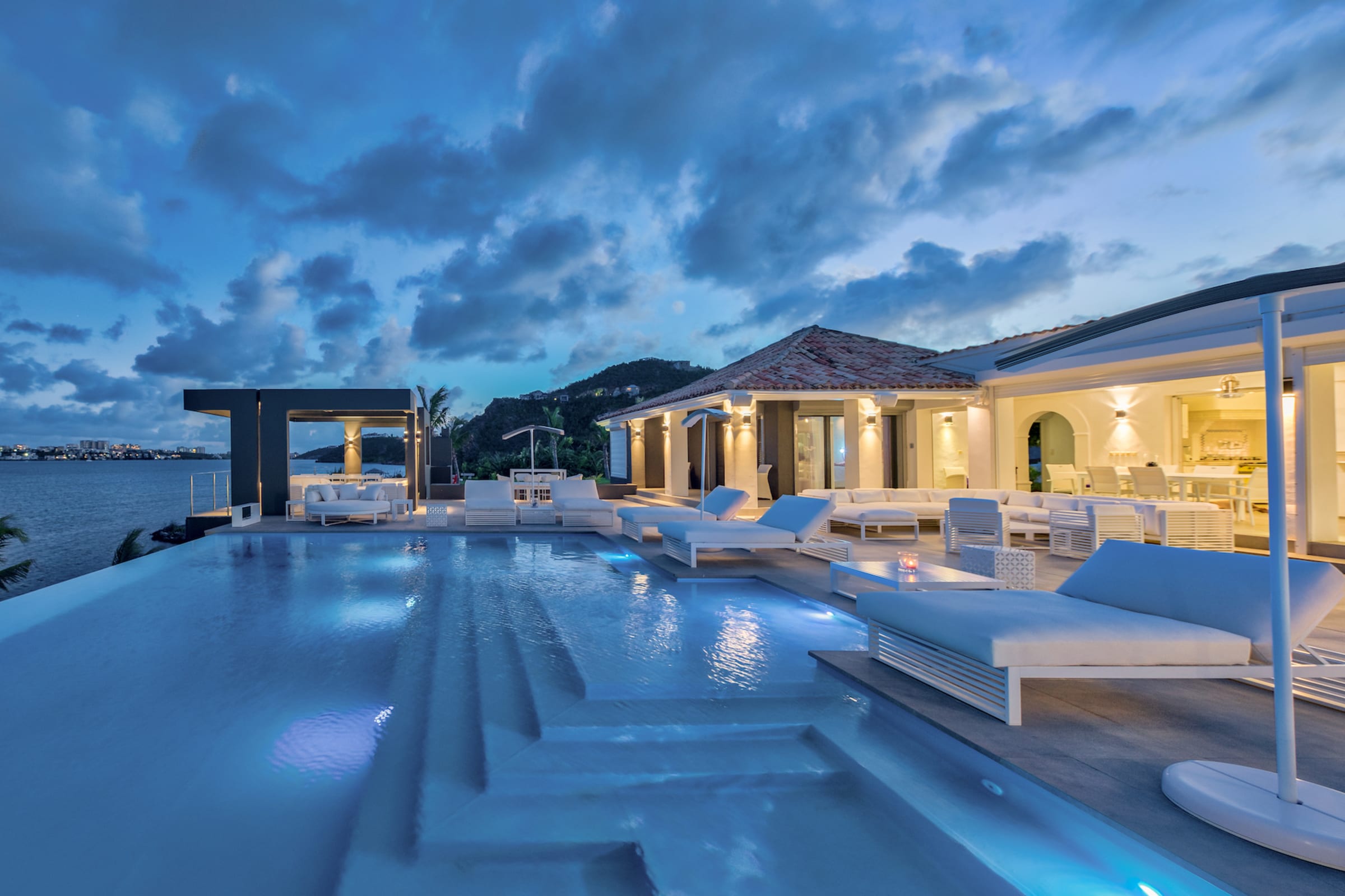 La Villa Mirabelle est une superbe propriété en bord de mer située au sommet d'une colline, offrant une vue imprenable sur le lagon de Simpson Bay à St Martin. Cette magnifique villa est nichée au milieu d'un jardin tropical et possède sa propre plage privée.