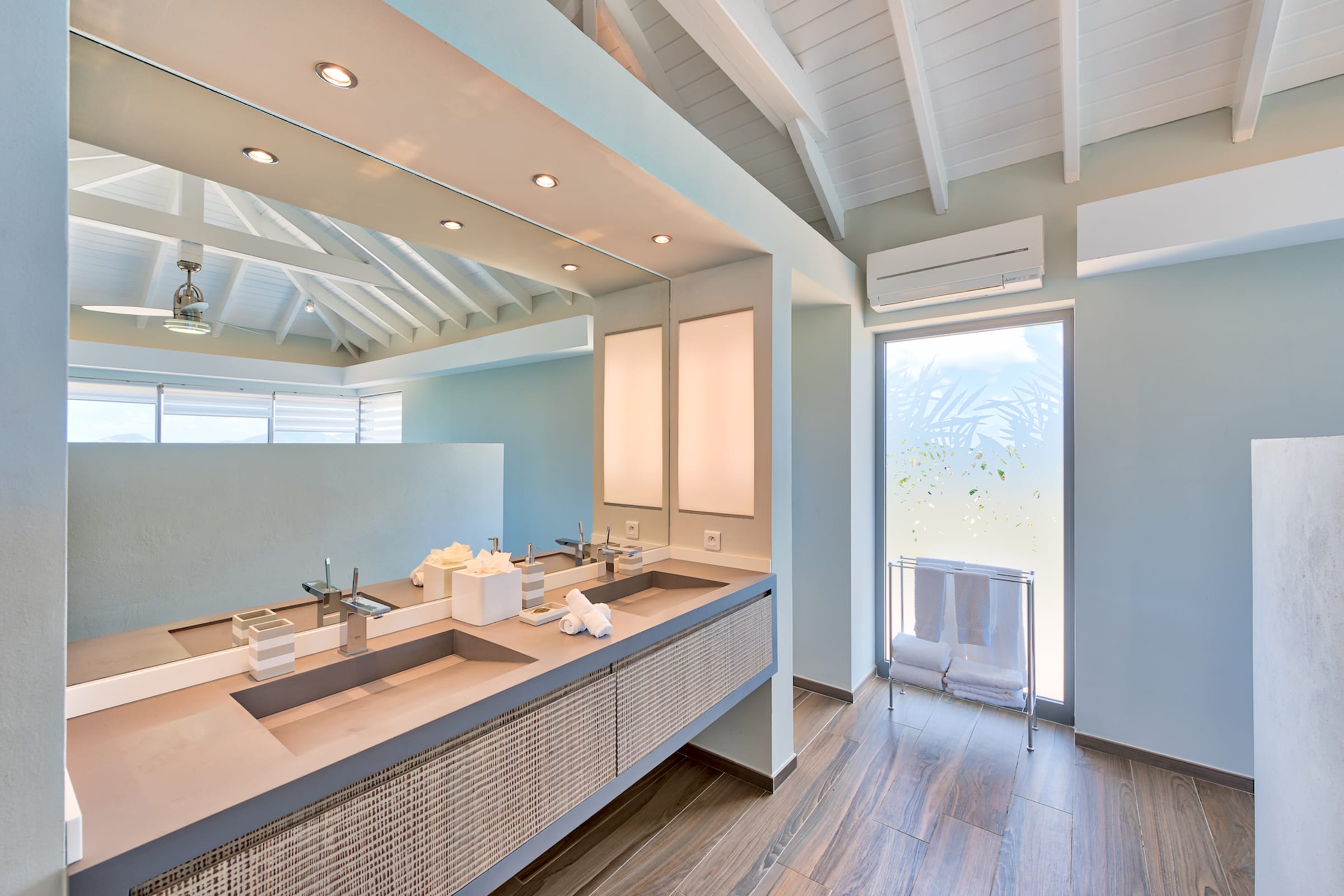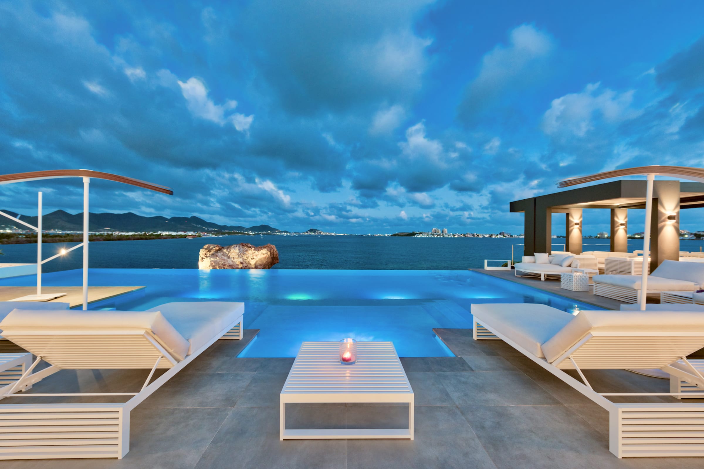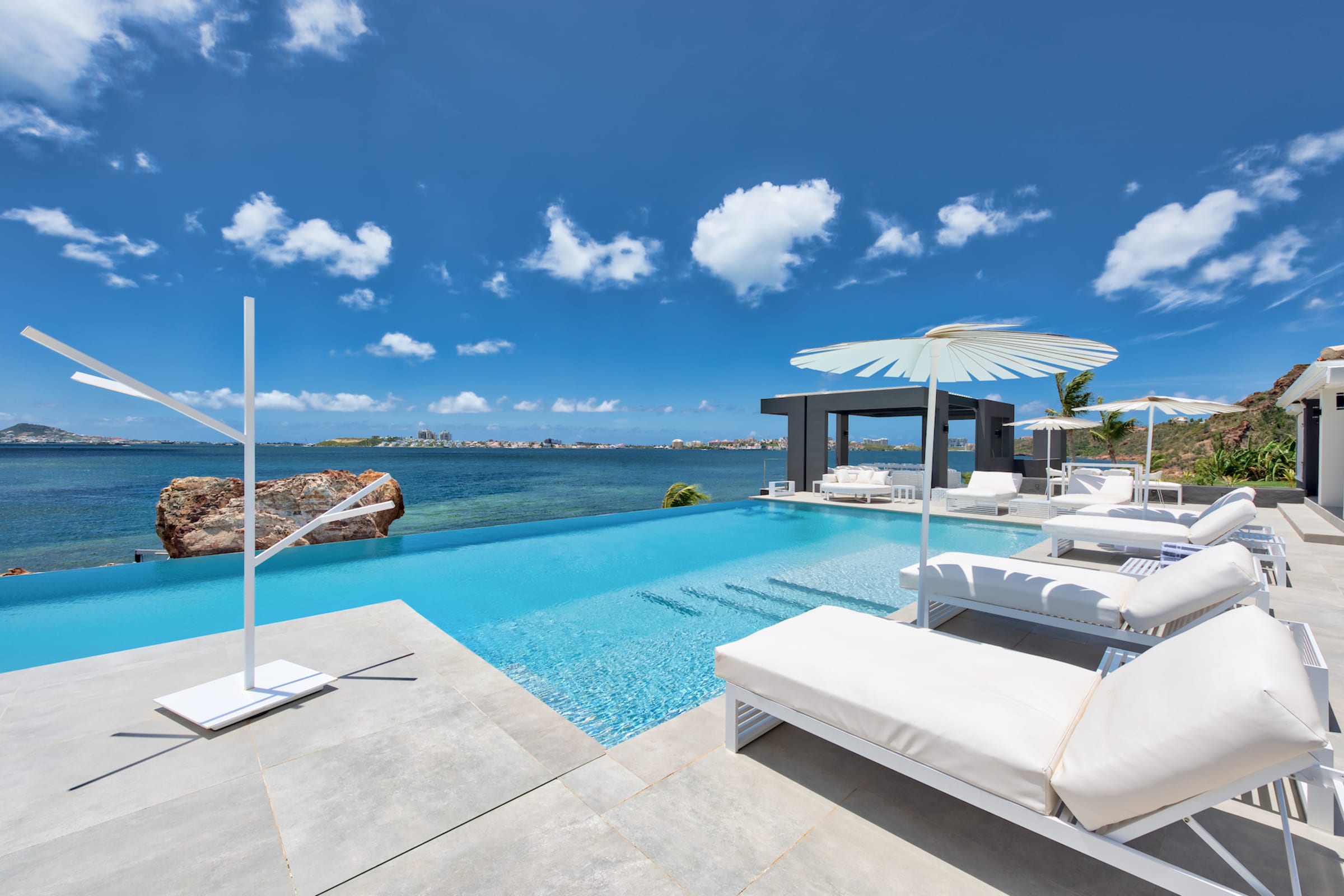 La Villa Mirabelle est une superbe propriété en bord de mer située au sommet d'une colline, offrant une vue imprenable sur le lagon de Simpson Bay à St Martin. Cette magnifique villa est nichée au milieu d'un jardin tropical et possède sa propre plage privée.