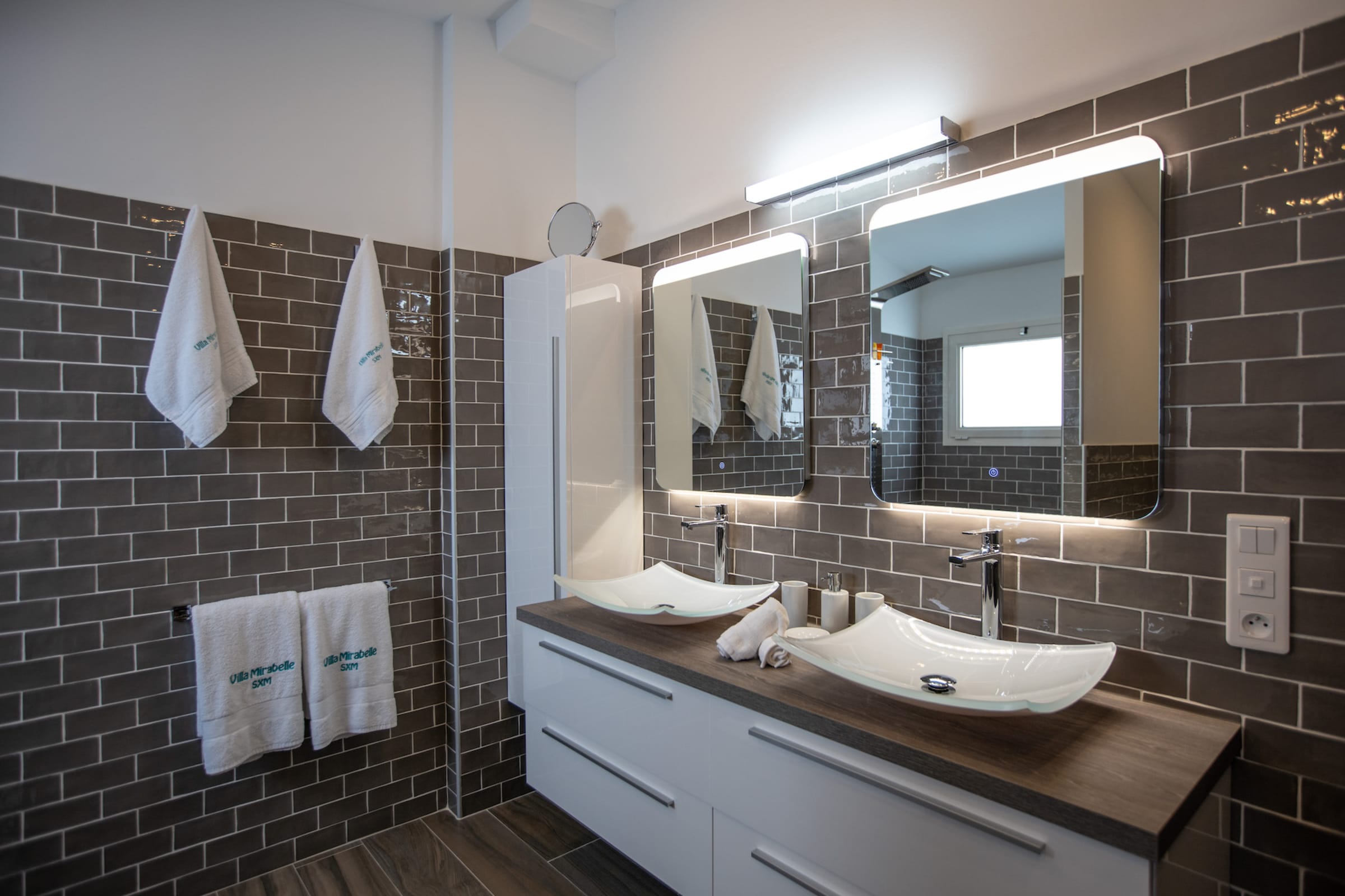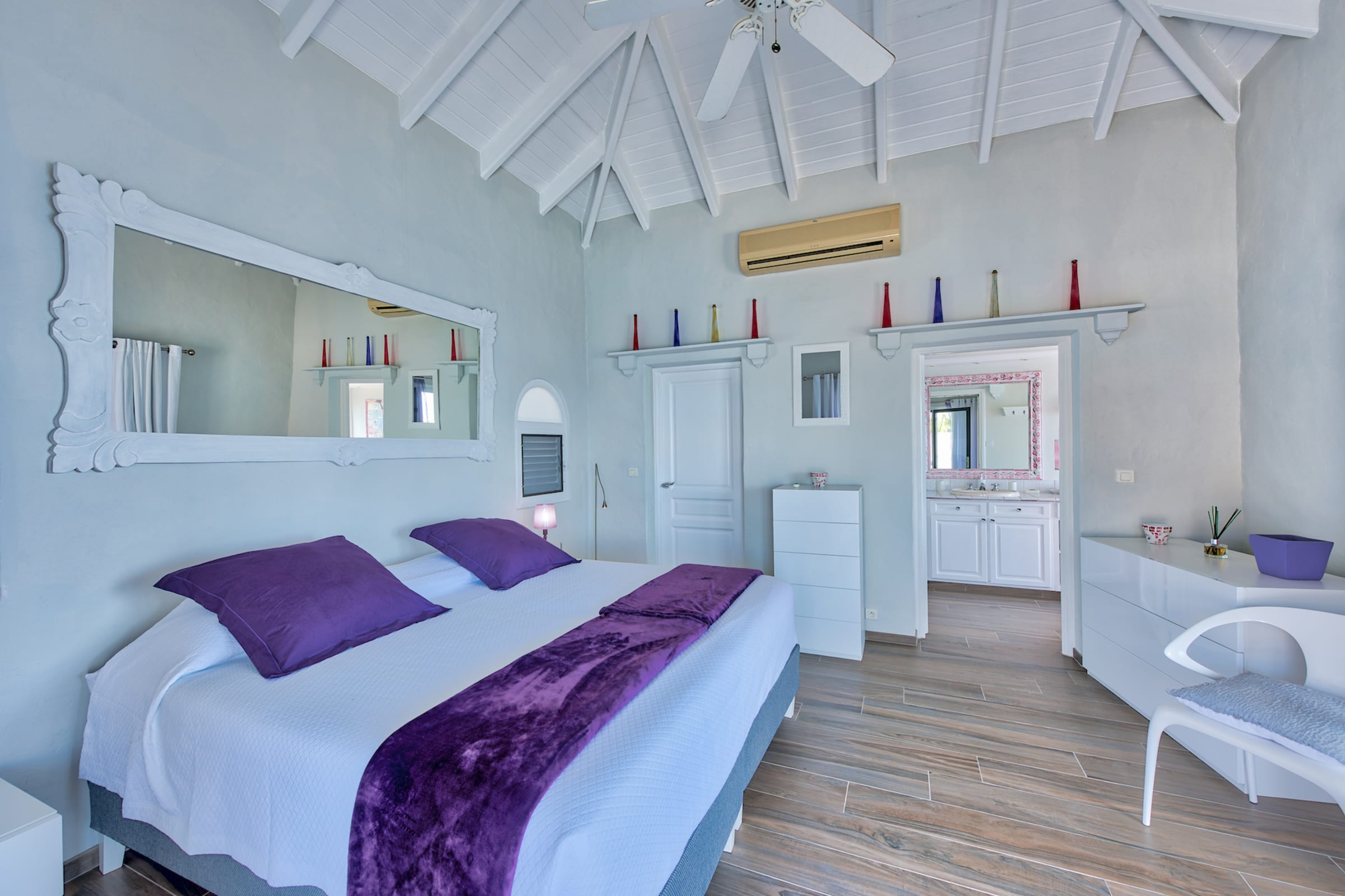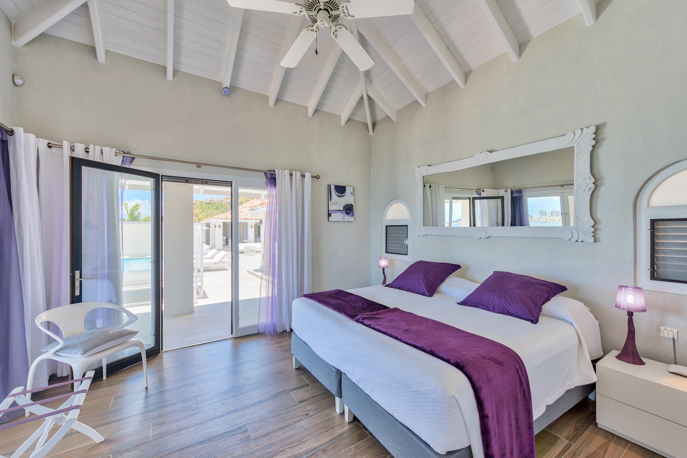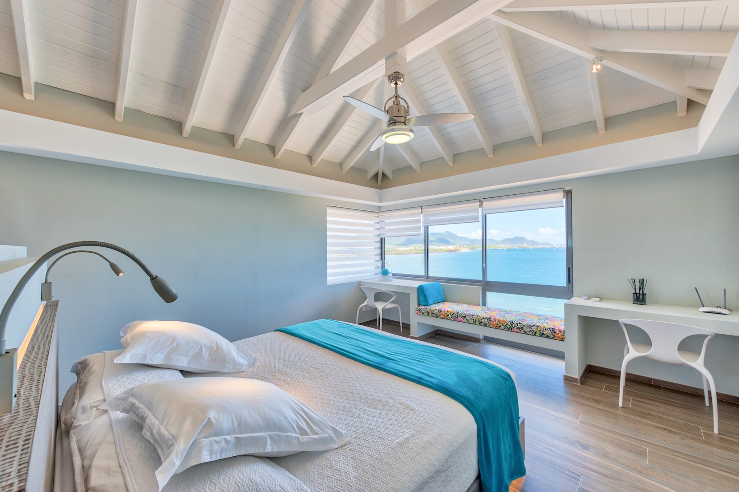 La Villa Mirabelle dispose de quatre chambres à coucher qui offrent des vues imprenables sur le lagon. Chaque chambre est équipée d'un lit king-size, d'un dressing et d'une salle de bains privative, ce qui garantit l'intimité et le luxe de chacun. La cinquième chambre offre une vue sur le jardin et dispose de sa propre salle de bains.