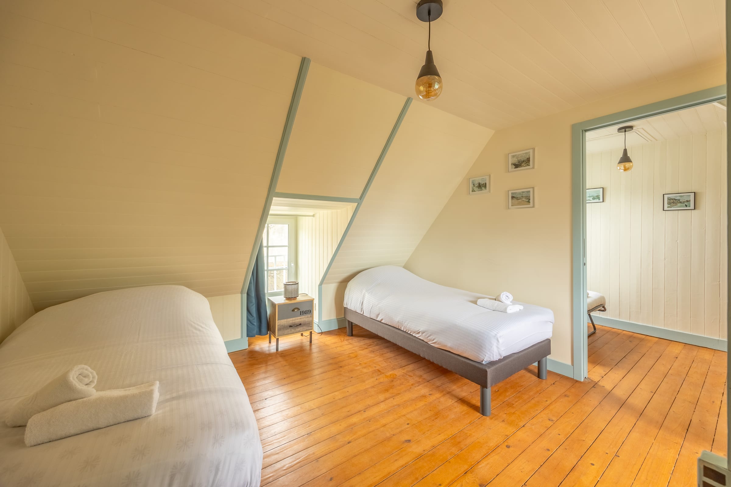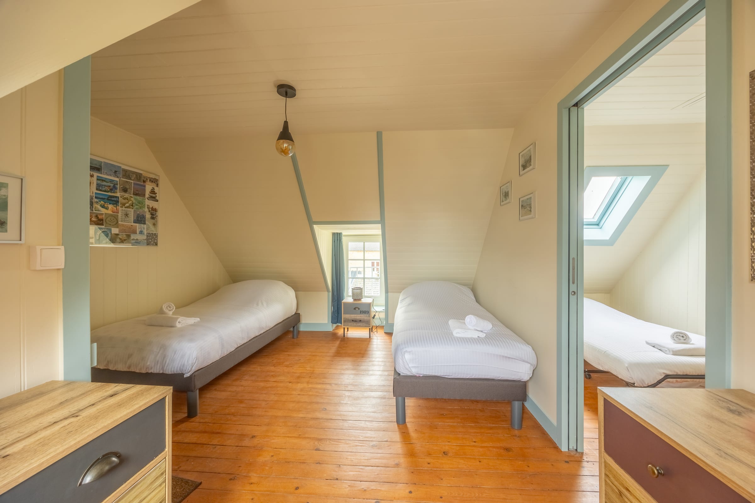 Au second étage, une chambre avec 2 lits simples, puis dans la continuité, une petite chambre avec 1 lit simple.