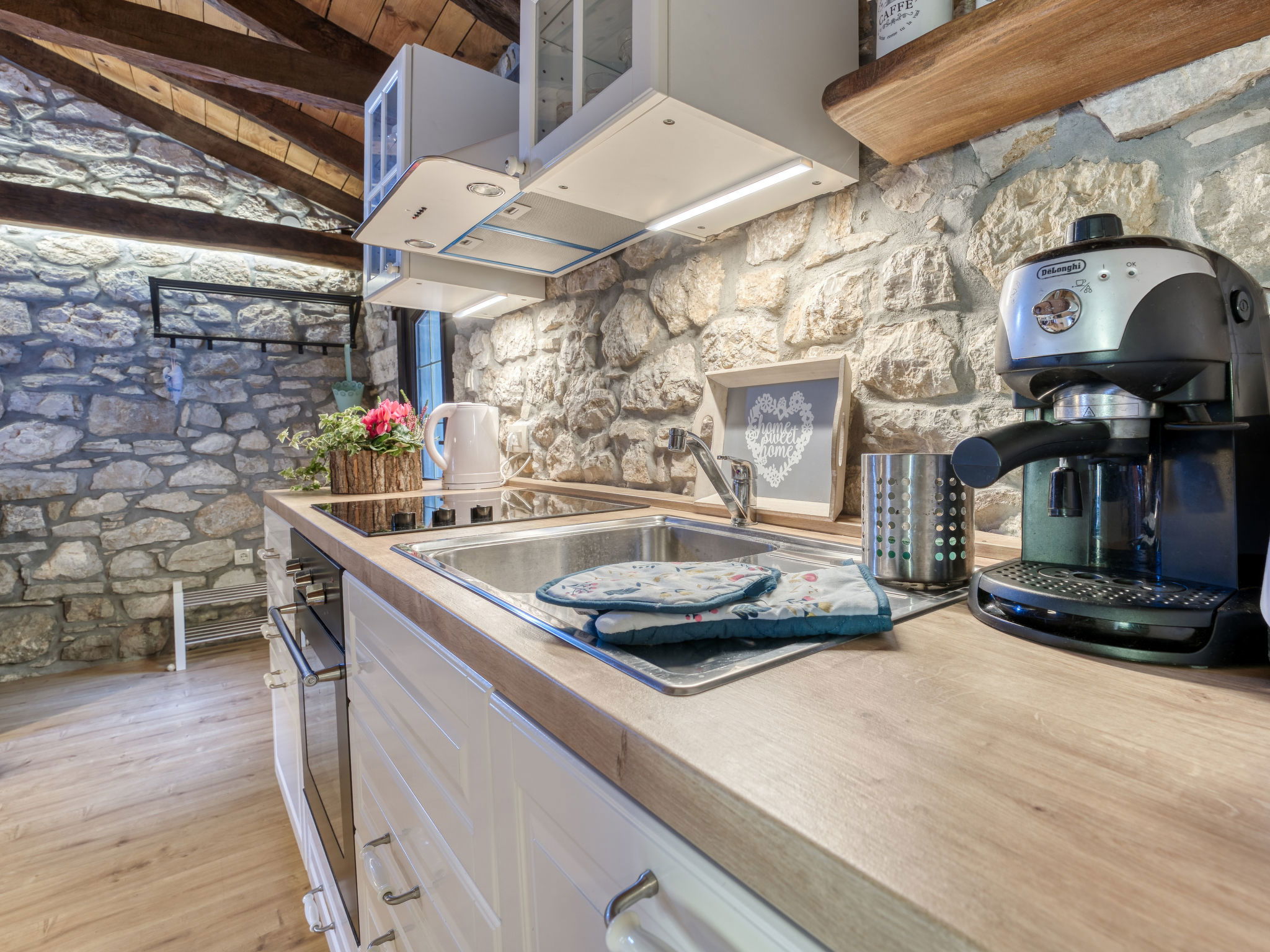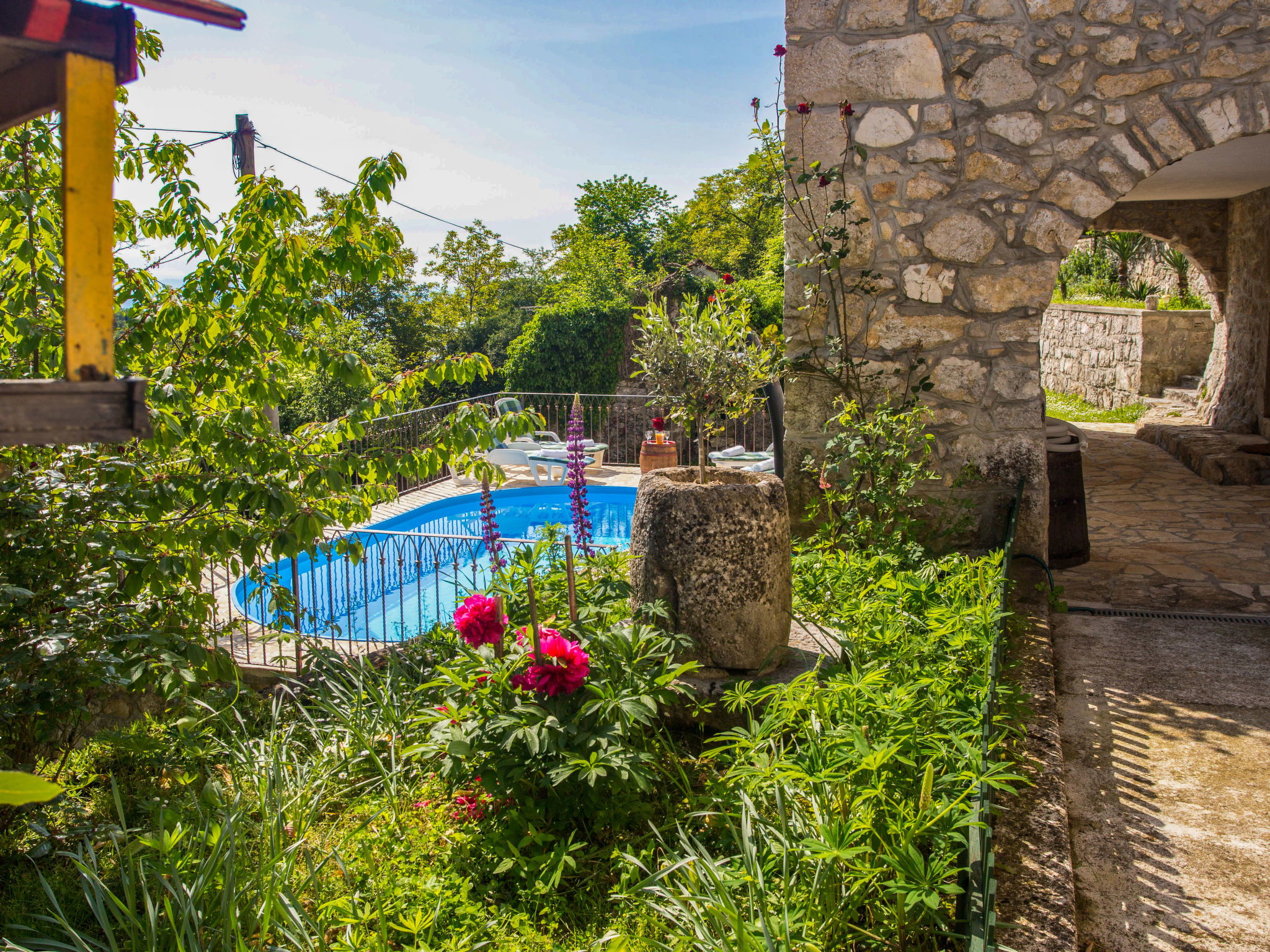 Lovranska Draga à 8 km de Lovran: Maison individuelle ancienne, rustique "Sirotnjak", de 2 étages. Dans le haut de la station de Lovran, situation tranquille, ensoleillée sur un versant, juste au bord de la forêt, à 8 km de la mer, à 8 km de la plage, dans la verdure. En commun: piscine (6 x 4 m, profondeur 150 cm, disponibilité saisonnière: 01.Mai. - 30.Sep.). Douche extérieure. A usage privé: jardin avec pelouse 45 m2, piscine (6 x 4 m, profondeur 150 cm, disponibilité saisonnière: 01.Mai. - 30.Sep.). Douche extérieure, meubles de jardin, barbecue. Infrastructures de la Maison: accès internet, billard, baby foot, air-conditionné, lave-linge. Place de parking près de la maison sur le terrain. Magasins 3.6 km, supermarché 8.2 km, restaurant 1 km, arrêt de bus 400 m, plage de graviers 8 km, plage aménagée 8 km. Chemins de randonnées pédestres depuis la maison 50 m. Groupes de jeunes sur demande seulement. Le logement se compose d'une maison jumelée, ainsi que d'une annexe, louées en une seule réservation.
