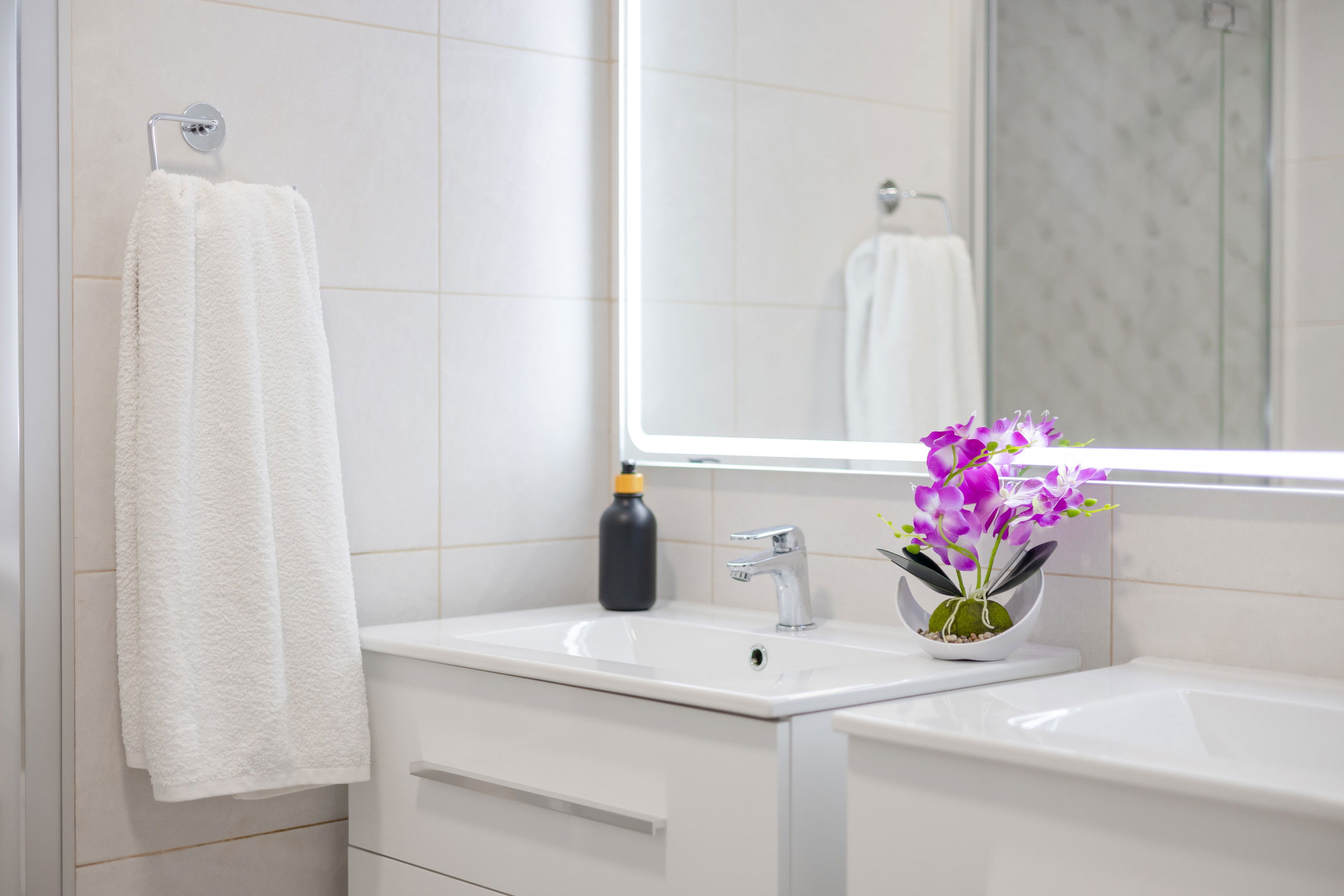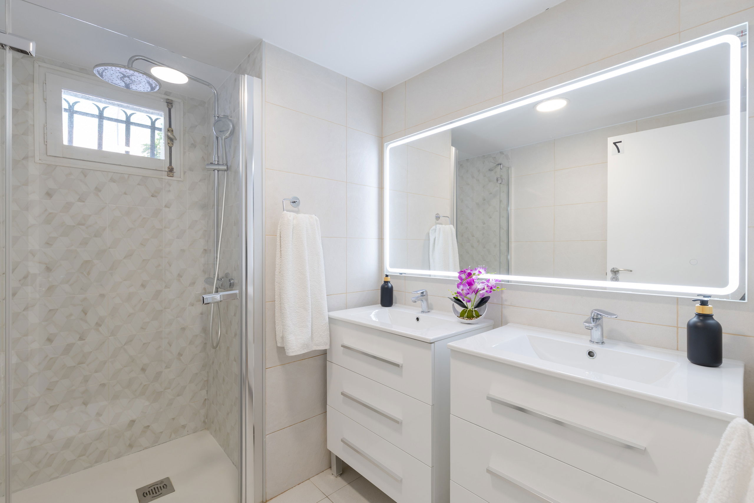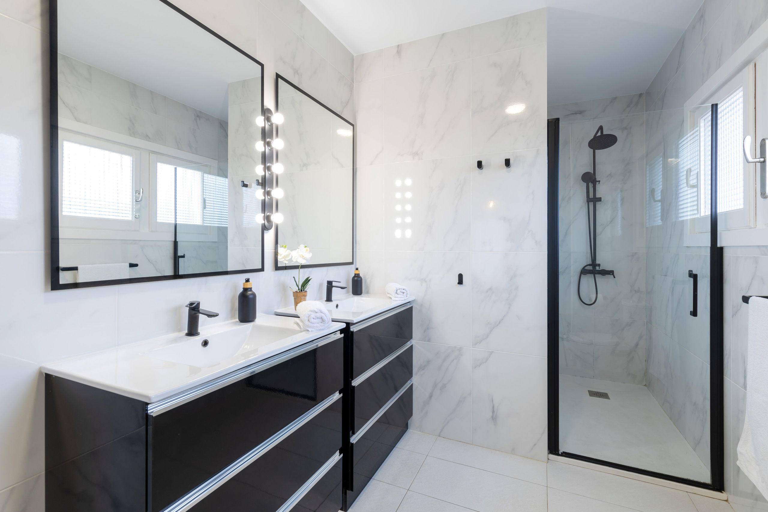 En plus des salles de bain privées à l'étage supérieur, la villa dispose d'un demi-toilette supplémentaire à l'étage supérieur et d'un autre. Il y a 2 salles de bain complètes au rez-de-chaussée. Les deux sont pourvues de serviettes propres et d'articles de toilette essentiels pour garantir un séjour sans souci.