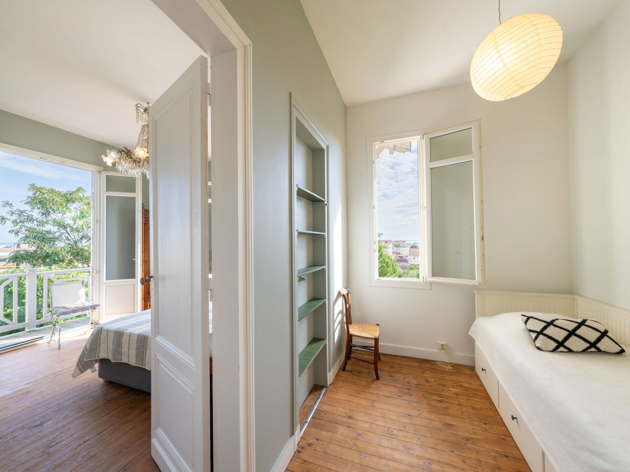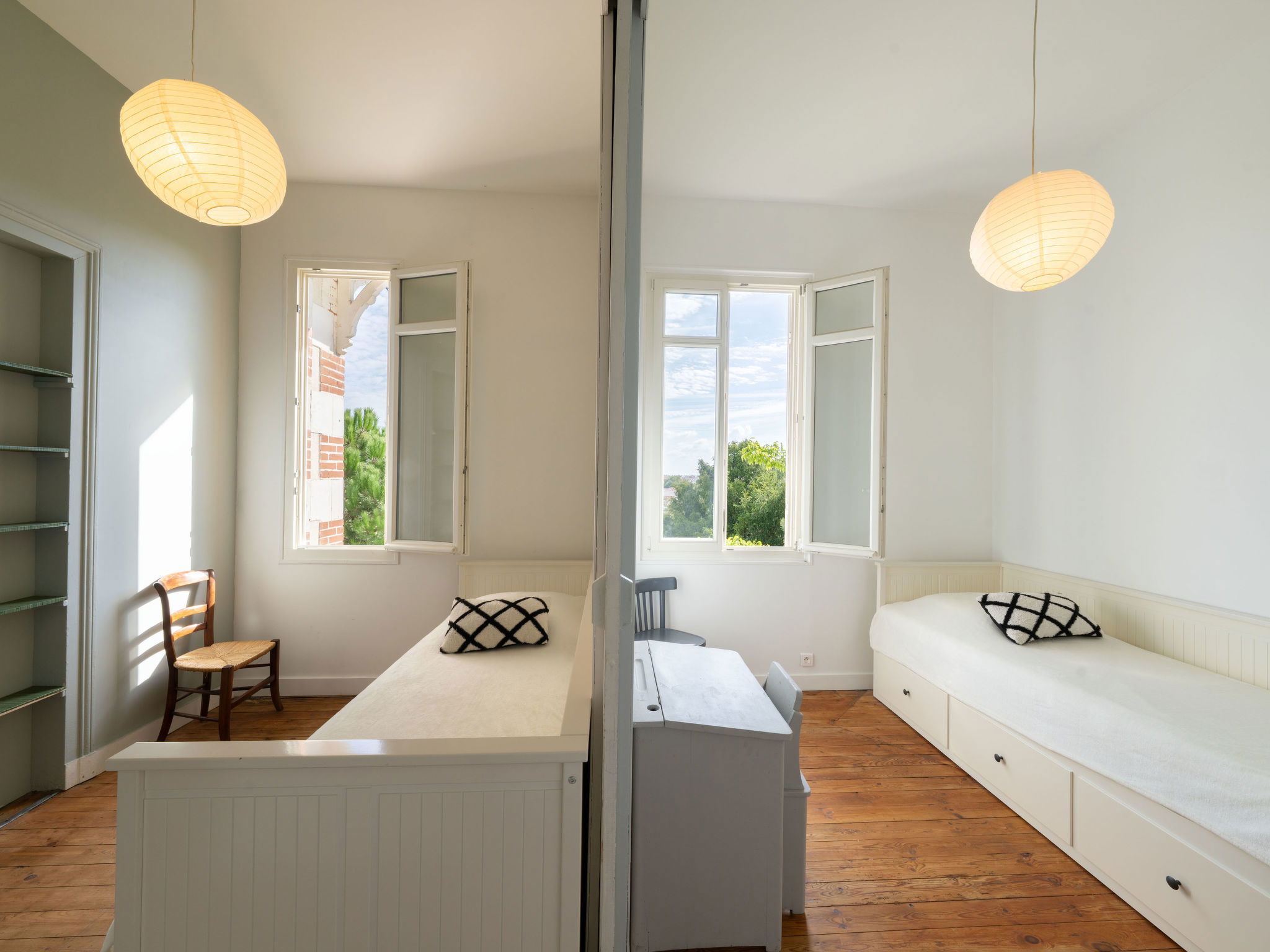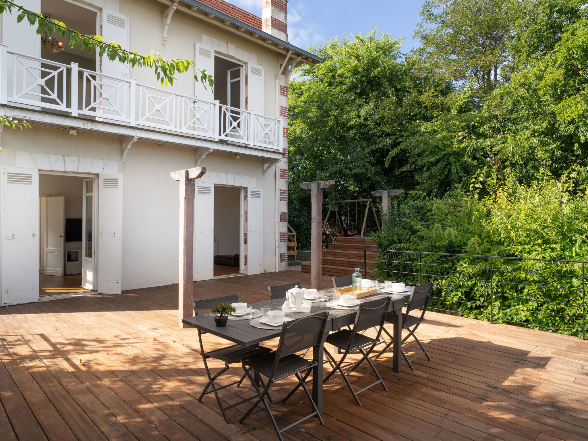 Arcachon: Grande maison individuelle "Miarka", année de construction 1900. Situation surélevée, à 230 m de la mer, à 230 m de la plage. Place de parking (pour 2 voitures). Magasins 1.8 km, magasin d'alimentation, supermarché 750 m, centre commercial 3.9 km, restaurant 160 m, bar 750 m, boulangerie 210 m, café 600 m, location de bicyclettes 800 m, arrêt de bus "Plage d'Eyrac" 170 m, gare ferroviaire "Arcachon" 1 km, plage de sable "Plage d'Eyrac" 230 m, parc "Mauresque" 1.9 km, centre de plongée 1.5 km, centre thermal "Thalazur" 4.2 km. Port plaisance 2.6 km, terrain de golf (18 trous) 4.8 km. Attractions à proximité: Dune du Pyla 11.5 km, Eratopia 9.1 km, Navette Maritime pour le Cap Ferret 2.2 km, Casino 650 m, Marché Municipal 1.1 km, Observatoire Sainte Cécile 2.8 km. Les lacs connus sont facilement accessibles: Lac de la Magdeleine 10.6 km, Lac de Cazaux 18.9 km. Le propriétaire n'accepte pas les groupes de jeunes. Veuillez noter: la remise des clés a lieu à l’agence d'Arcachon, 2 km. Le propriétaire habite sur le même terrain. Environnement très sensible au bruit. Silence et bonne tenue exigés.