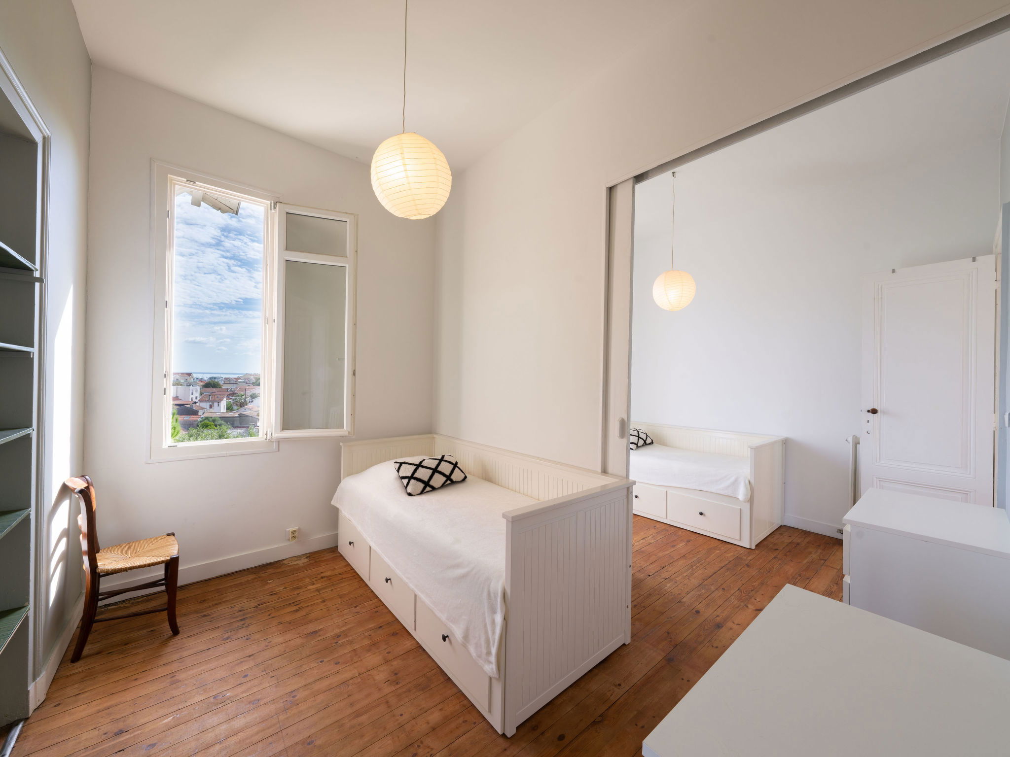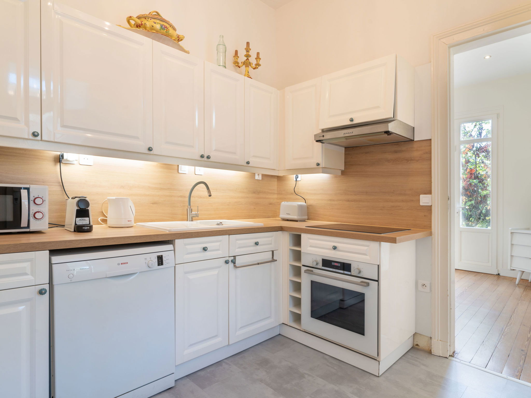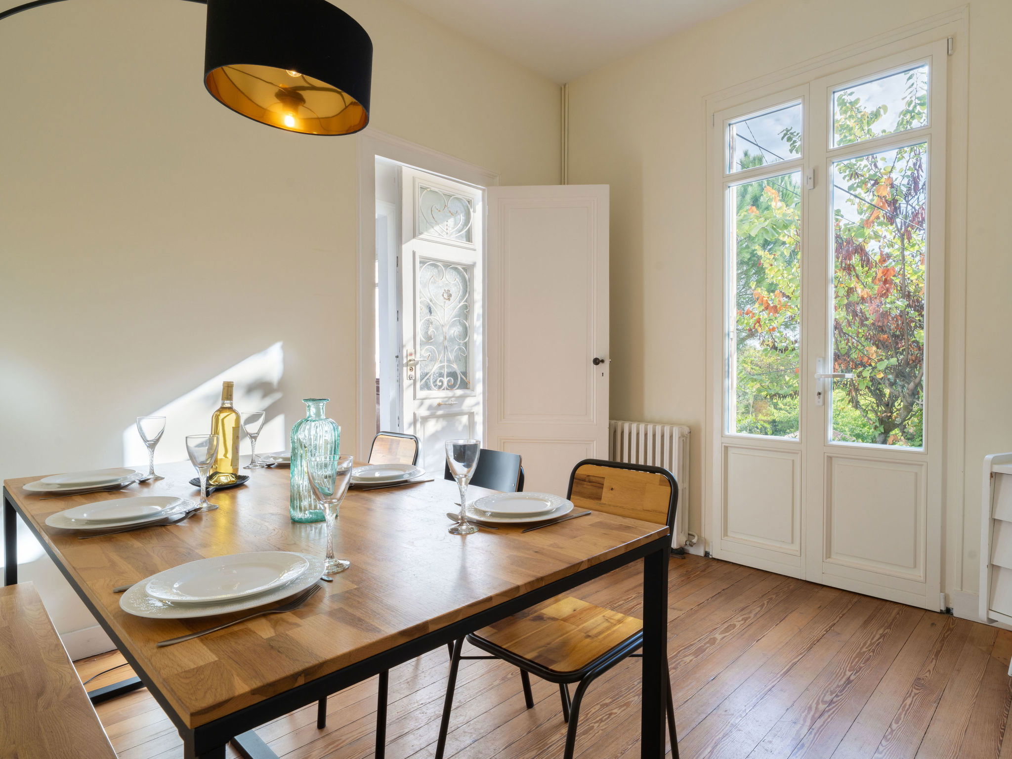 Arcachon: Grande maison individuelle "Miarka", année de construction 1900. Situation surélevée, à 230 m de la mer, à 230 m de la plage. Place de parking (pour 2 voitures). Magasins 1.8 km, magasin d'alimentation, supermarché 750 m, centre commercial 3.9 km, restaurant 160 m, bar 750 m, boulangerie 210 m, café 600 m, location de bicyclettes 800 m, arrêt de bus "Plage d'Eyrac" 170 m, gare ferroviaire "Arcachon" 1 km, plage de sable "Plage d'Eyrac" 230 m, parc "Mauresque" 1.9 km, centre de plongée 1.5 km, centre thermal "Thalazur" 4.2 km. Port plaisance 2.6 km, terrain de golf (18 trous) 4.8 km. Attractions à proximité: Dune du Pyla 11.5 km, Eratopia 9.1 km, Navette Maritime pour le Cap Ferret 2.2 km, Casino 650 m, Marché Municipal 1.1 km, Observatoire Sainte Cécile 2.8 km. Les lacs connus sont facilement accessibles: Lac de la Magdeleine 10.6 km, Lac de Cazaux 18.9 km. Le propriétaire n'accepte pas les groupes de jeunes. Veuillez noter: la remise des clés a lieu à l’agence d'Arcachon, 2 km. Le propriétaire habite sur le même terrain. Environnement très sensible au bruit. Silence et bonne tenue exigés.