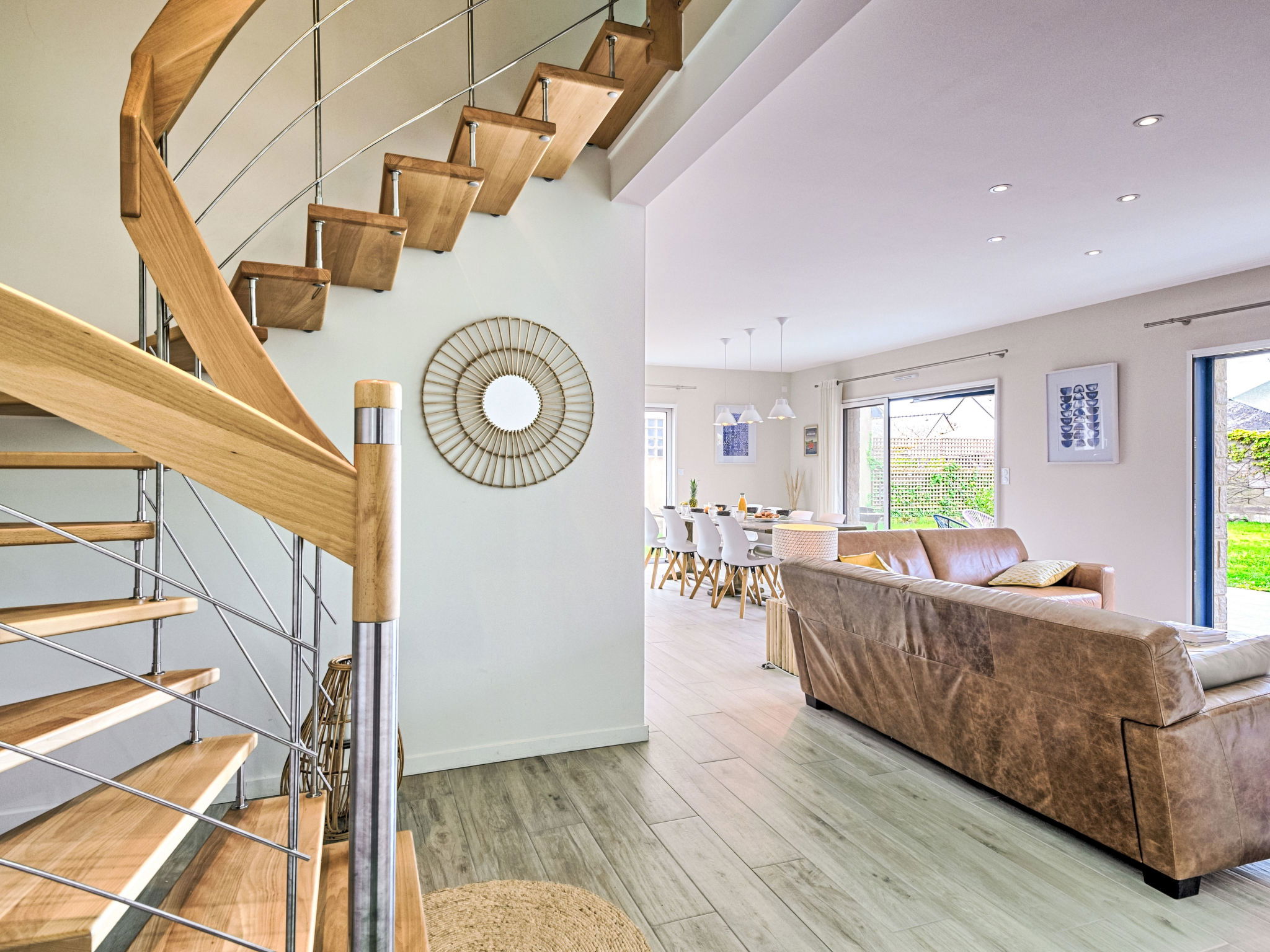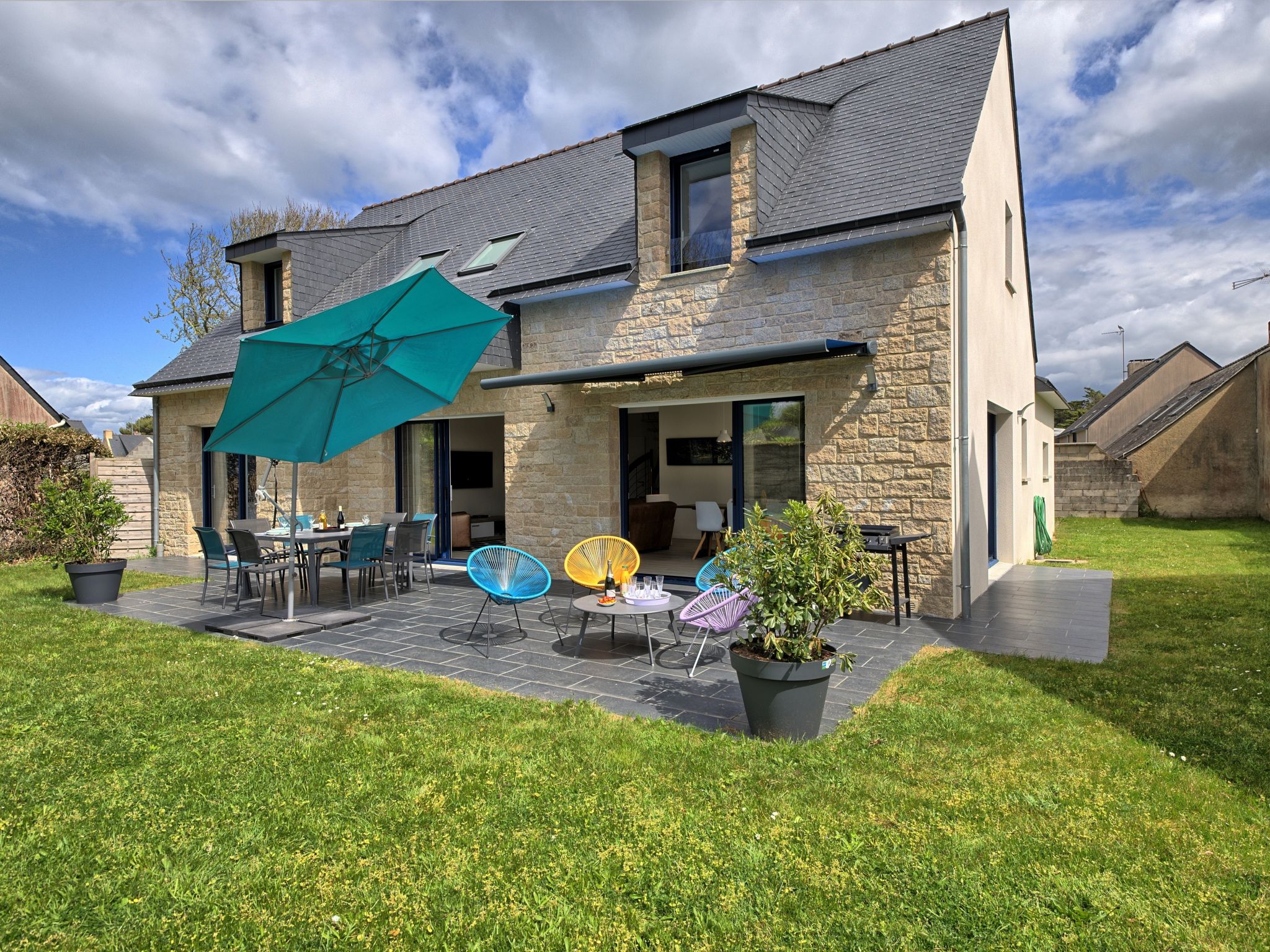 Maison individuelle "Villa Ker Anna", année de construction 2020. À 1.9 km du centre d'Arzon, à 11 km du centre de Sarzeau, à 34 km du centre de Vannes, dans un quartier résidentiel, excellente situation: centrale mais tranquille, à 350 m de la mer, à 350 m de la plage, dans une impasse. A usage privé: terrain 560 m2 (clôturé) avec pelouse, place de parking (pour 2 voitures) sur le terrain, garage individuel. Supermarché 600 m, restaurant 1.2 km, bar 1.2 km, arrêt de bus 1.9 km, plage de sable "Plage du Fogeo-Kerjouanno" 350 m. Port plaisance 1.2 km, ecole de voile 1.5 km, tennis 1.2 km. Attractions à proximité: Port du Crouesty 1.2 km, Thalassotherapie 1.2 km, Golfe du Morbihan-Départ Ile aux Moines 2 km, Golf Blue Green Rhuys (Kerver) 2.9 km, Port Navalo:Départs vers Belle Ile/Houat 3.6 km. Région de randonnées: GR34 500 m. Le propriétaire n'accepte pas les groupes de jeunes.
