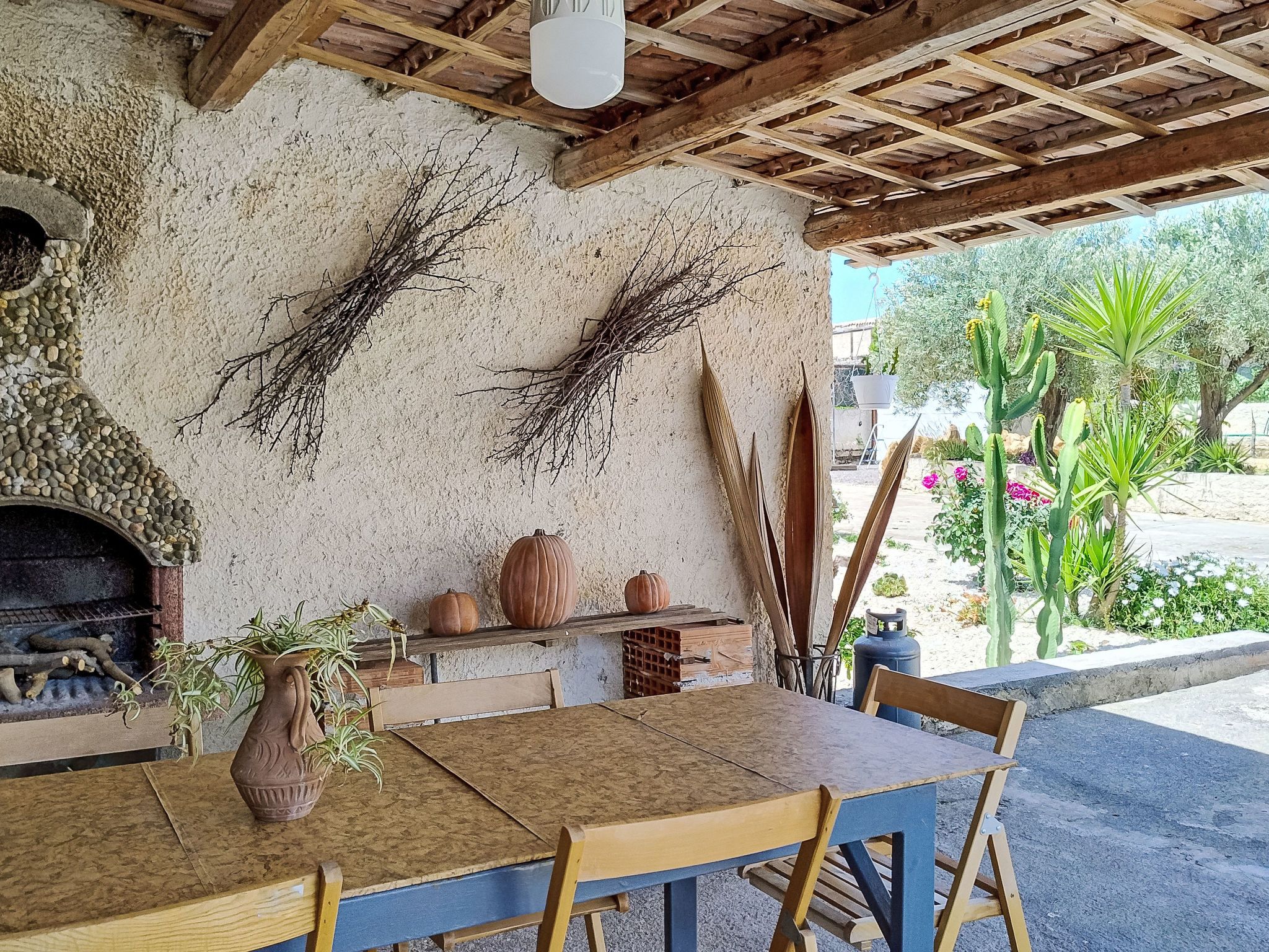 Maison 3 pièces 120 m2, au rez-de-chaussée. Aménagement fonctionnel et confortable: séjour avec 1 divan-lit double et TV (satellite) (écran plat), air-conditionné. 2 chambres doubles, chaque chambre avec: ventilateur. Coin cuisine (4 plaques de cuisson, four, lave-vaisselle, grille-pain, bouilloire électrique, micro-ondes, cafetière électrique) avec table pour les repas. Sortie sur la terrasse. Douche/bidet/WC. Pas de chauffage. Terrasse 15 m2, couverte, jardinet 20 m2, couvert. Meubles de terrasse, barbecue, chaises longues (4). Vue sur la piscine et le jardin. A disposition: lave-linge, fer à repasser, chaise haute pour enfant, lit bébé jusqu'à 2 ans, sèche-cheveux. Internet (Connexion WIFI, gratuit). Place de parking (2 Voitures). Maximum 1 animal/ chien autorisé.