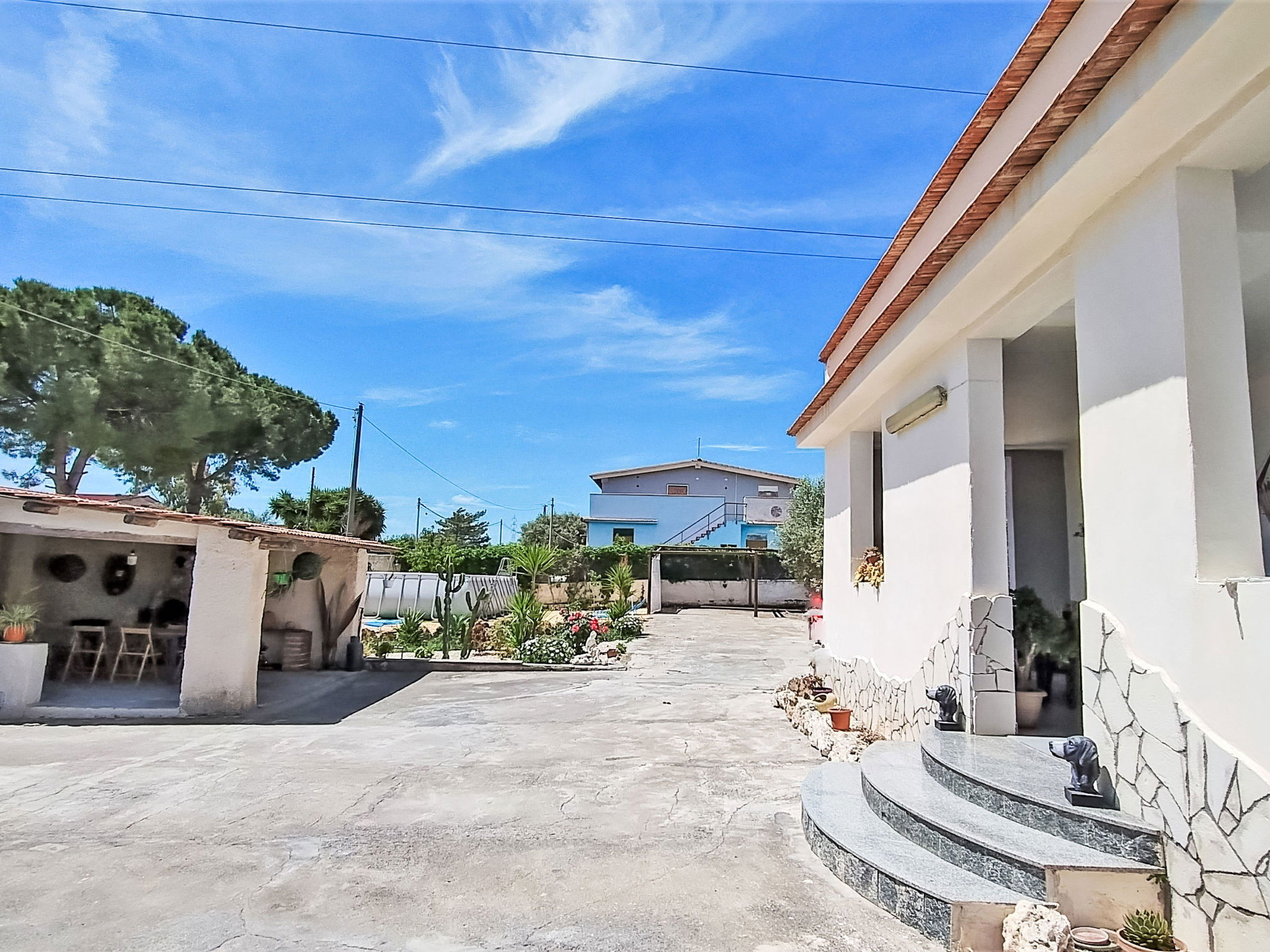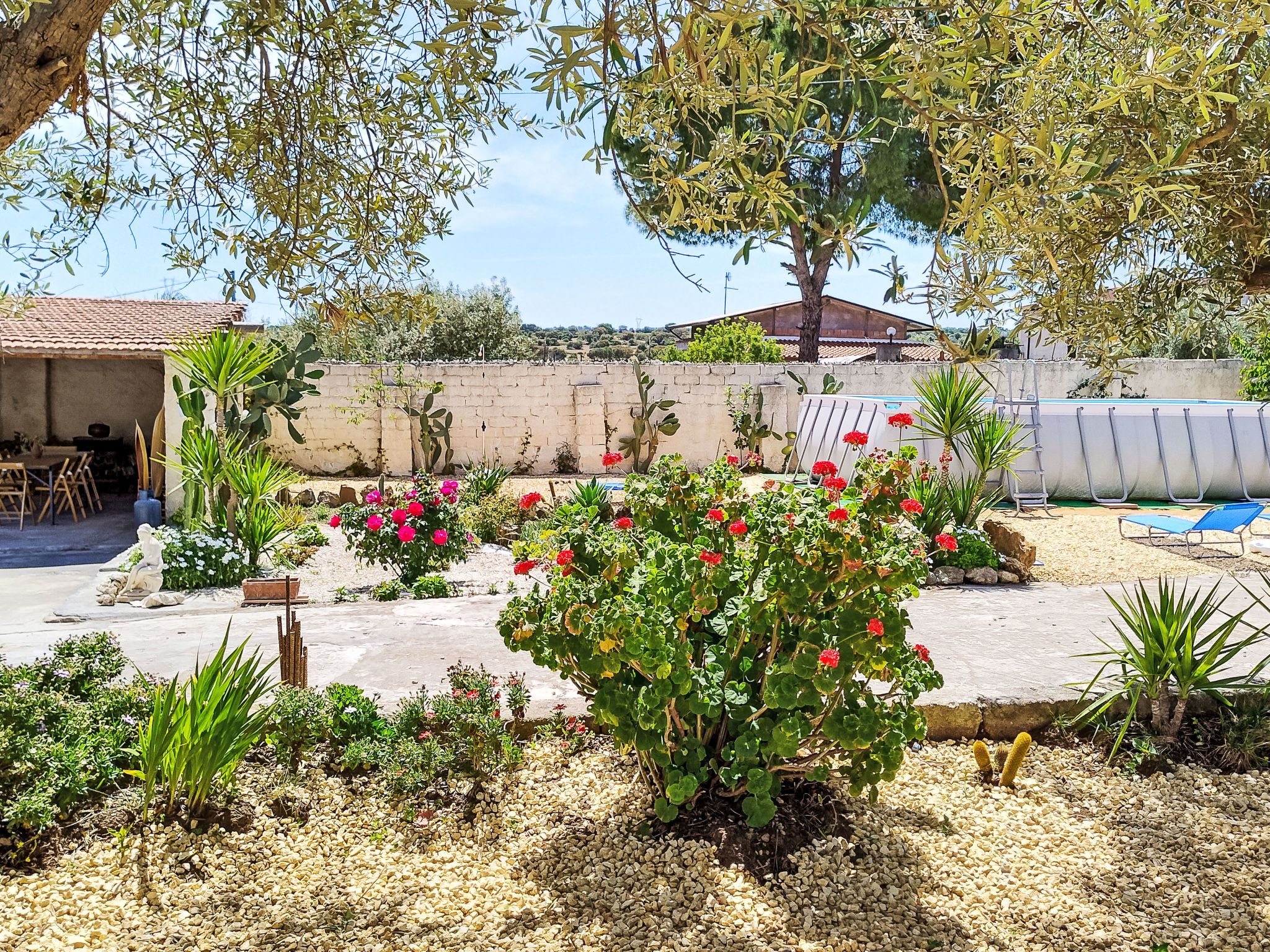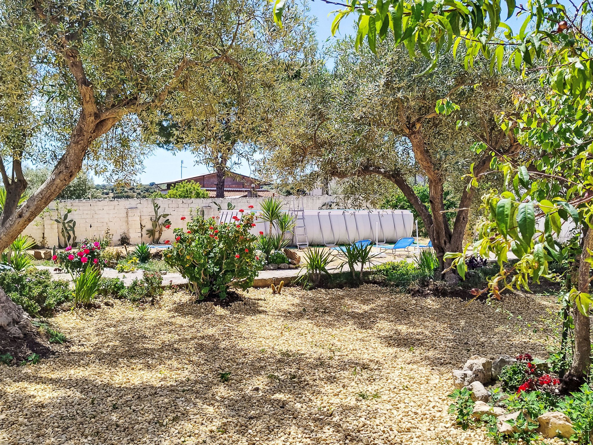 Maison individuelle "Brunella". À 17 km du centre d'Augusta, à 40 km du centre de Siracusa, à 6 km du centre de Carlentini, situation ensoleillée, à 10 km de la mer, à 12 km de la plage, orientée sud. A usage privé: terrain 1'000 m2 (clôturé), jardin 150 m2, jardin naturel 650 m2, piscine (hors sol) (4 x 8 m, profondeur 130 cm, disponibilité saisonnière: 01.Avr. - 31.Oct.). Douche extérieure, meubles de jardin, barbecue, entretien de la piscine par le propriétaire/jardinier. Place de parking sur le terrain. Supermarché 6 km, restaurant 50 m, bar 6 km, plage de sable "Castelluccio" 11 km, plage de rochers "Castelluccio" 11 km. Attractions à proximité: Brucoli 17 km, Necropoli di Pantalica 30 km, Catania 40 km, Avola 60 km, Caltagirone 64 km, Noto 70 km. Veuillez noter: voiture recommandée. Résidence avec portail électrique. Le propriétaire habite dans une partie de maison indépendante.