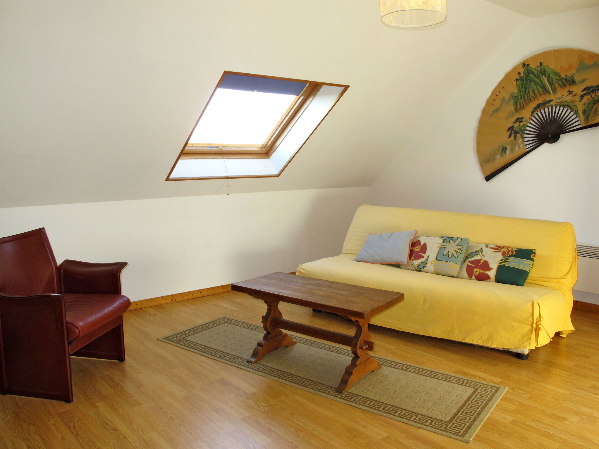 "La Jolie Vague", maison 4 pièces 110 m2 sur 2 niveaux. Clair, aménagement agréable et plaisant: séjour/salle à manger avec table pour les repas et TV (satellite). Sortie sur la terrasse. 1 chambre avec 1 grand-lit (1 x 160 cm, longueur 200 cm). Sortie sur la terrasse. Cuisine ouverte (1 plaque de cuisson, four, lave-vaisselle, 3 feux, grille-pain, bouilloire électrique, micro-ondes, cafetière électrique) avec table pour les repas. Douche, WC séparé. À l'étage supérieur: 2 chambres, mansardées, chaque chambre avec: 1 grand-lit (160 cm, longueur 200 cm). 1 chambre avec 1 lit (90 cm, longueur 200 cm), 1 grand-lit (160 cm, longueur 200 cm). Petite galerie mansardée, ouverte. Douche. Chauffage électrique. Sol en parquet. Terrasse. Meubles de terrasse, barbecue, chaises longues (4), réduit. Belle vue sur la mer et les alentours. A disposition: lave-linge, fer à repasser, chaise haute pour enfant, lit bébé. Internet (Connexion WIFI, gratuit). Veuillez noter: maison non-fumeur. Maximum 1 animal/ chien autorisé. Détecteur de fumée. Si le nombre d’occupants n’atteint pas le maximum, toutes les chambres ne seront pas disponibles. Au lieu d'une chambre fermée, des espaces de couchage sont situés dans une zone ouverte (galerie, alcôve...).